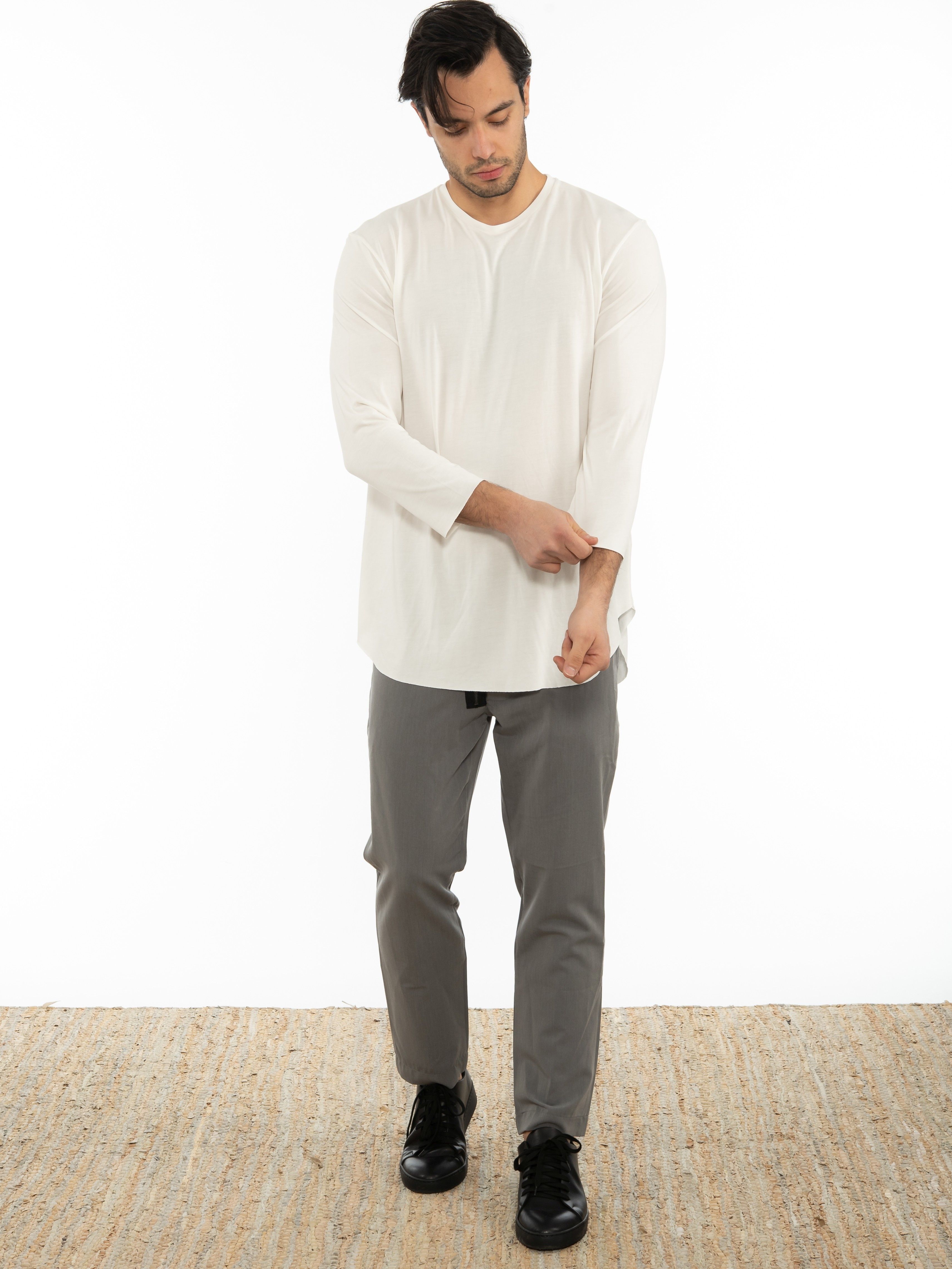 Χαρακτηριστικά: Μπλούζα σε regular fit γραμμή κομμένη με λέιζερ στα μανίκια και στο τελείωμα, με οβάλ κόψιμο στο τελείωμα και στις δυο πλευρές και μανίκι troikar. 67% modal 33% PES