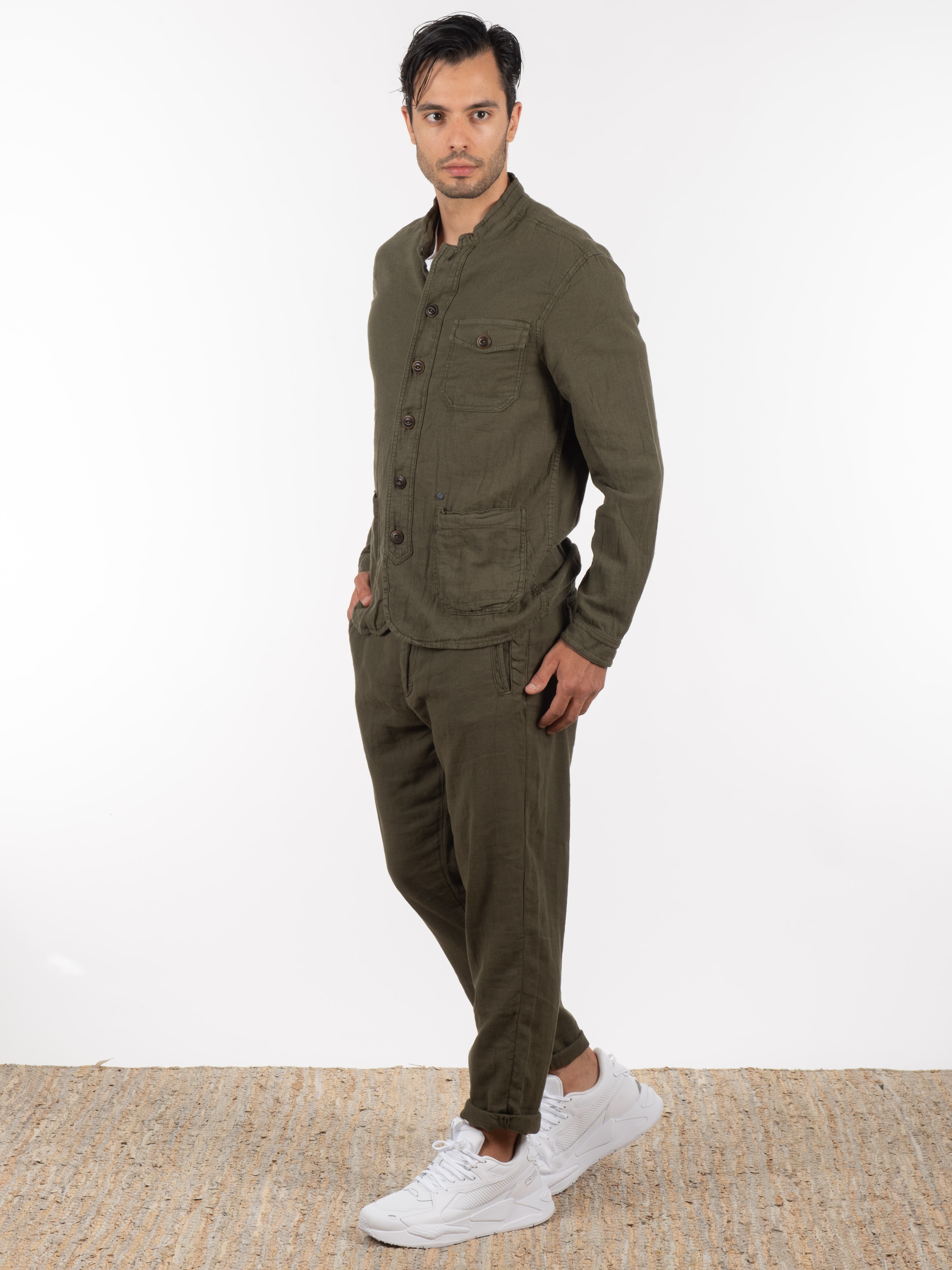 GABBA Πουκάμισο - Jacket mao Goa Crinkle P6074 Χακί