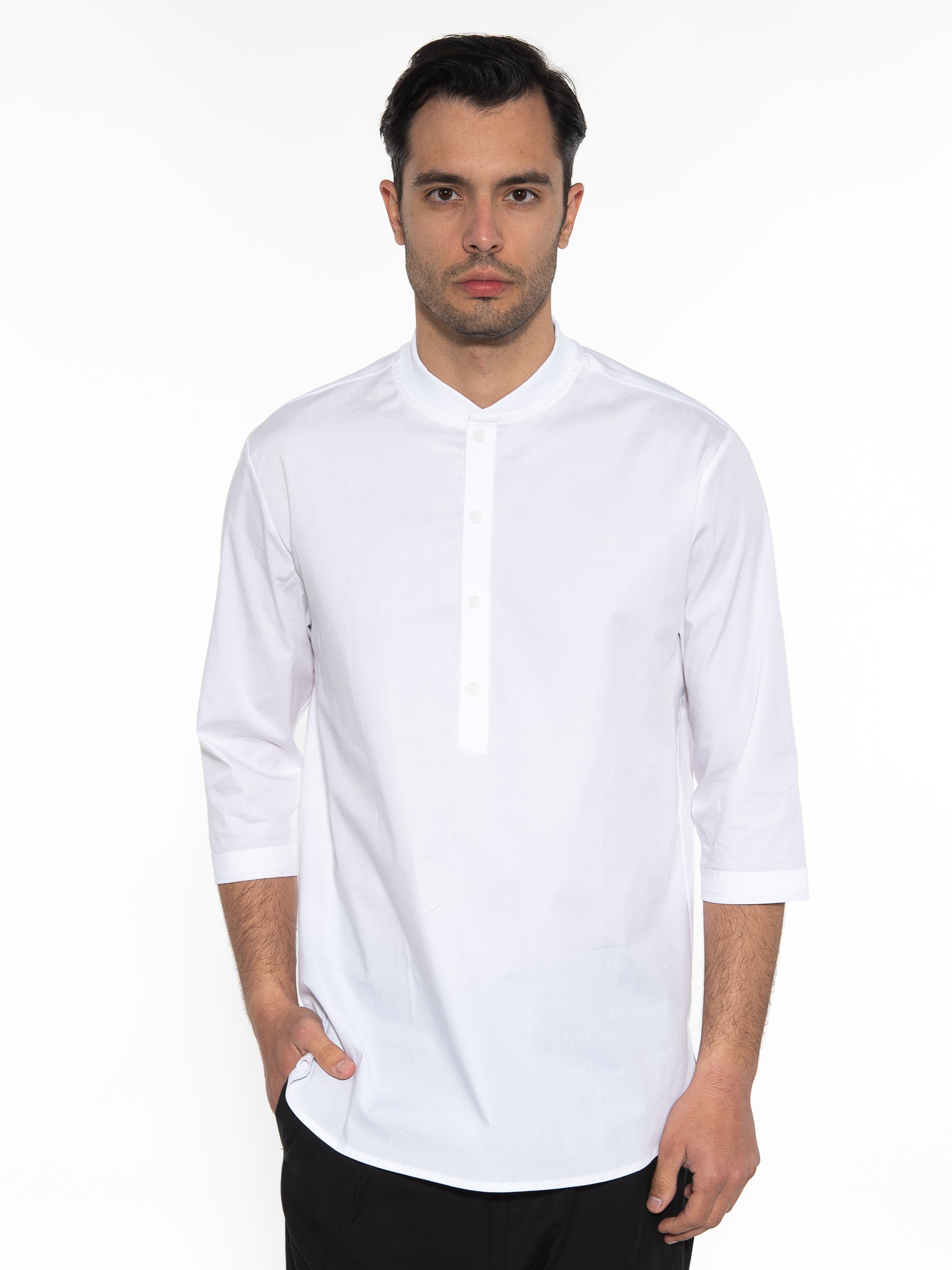 Χαρακτηριστικά: Πουκαμίσα mao πουπλίνα σε regular fit γραμμή με ριπ λάστιχο στην πάνω πλευρά του γιακά και γύρισμα στο τελείωμα του μανικιού. 97% cotton 3% elastane