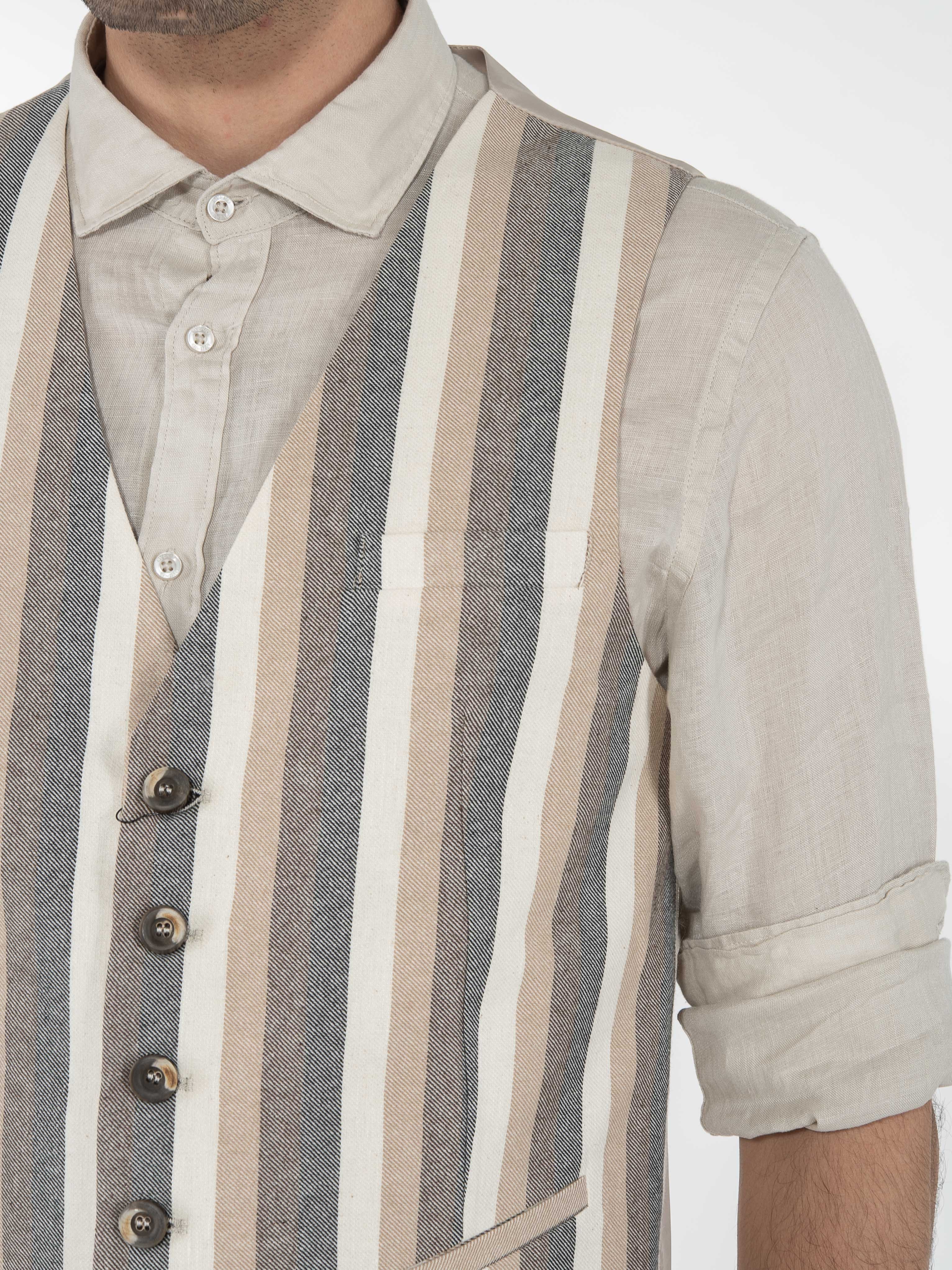 OVER-D Γιλέκο ριγέ OE1S2S3I04 Μπεζ - Εκρού
