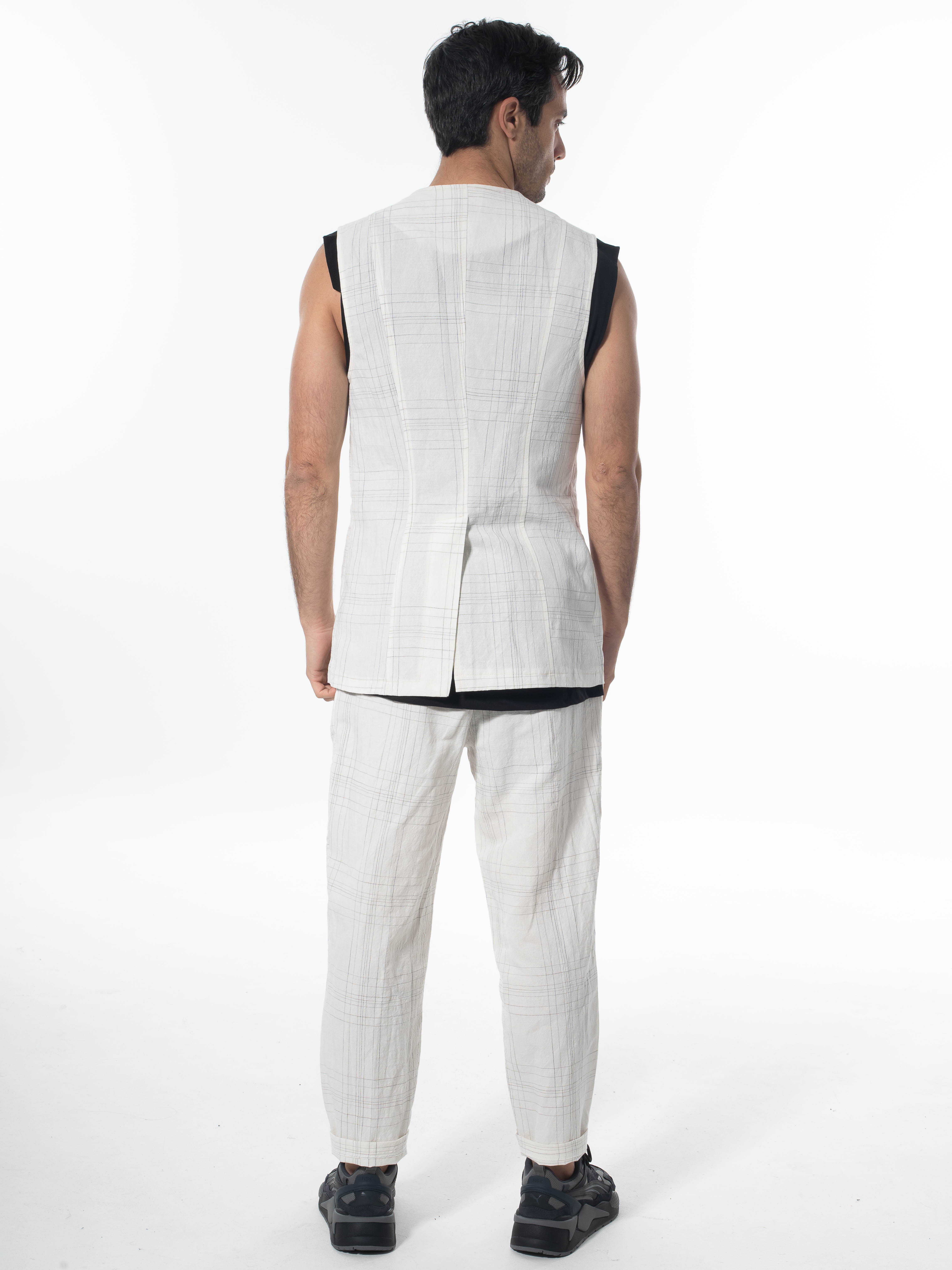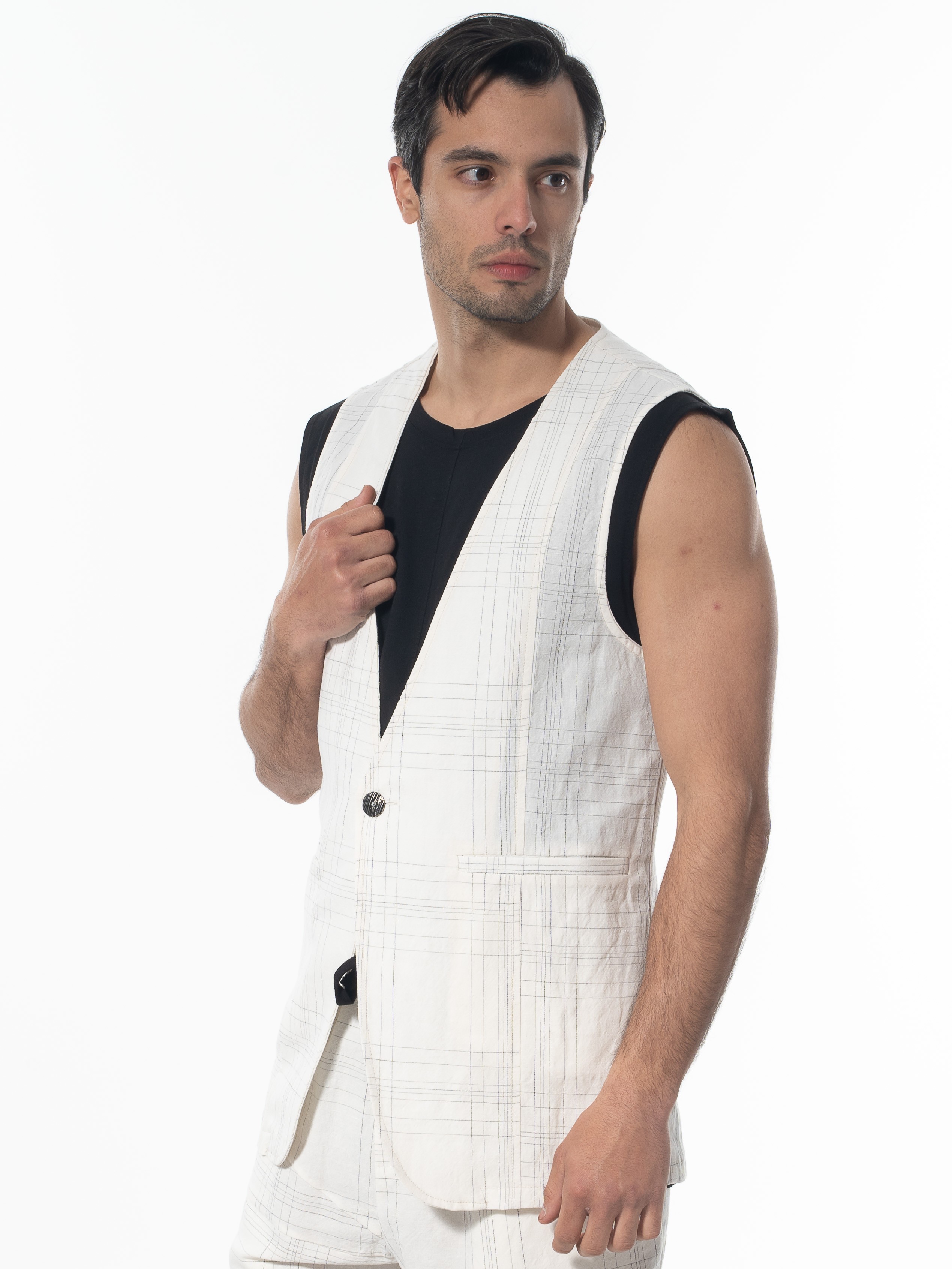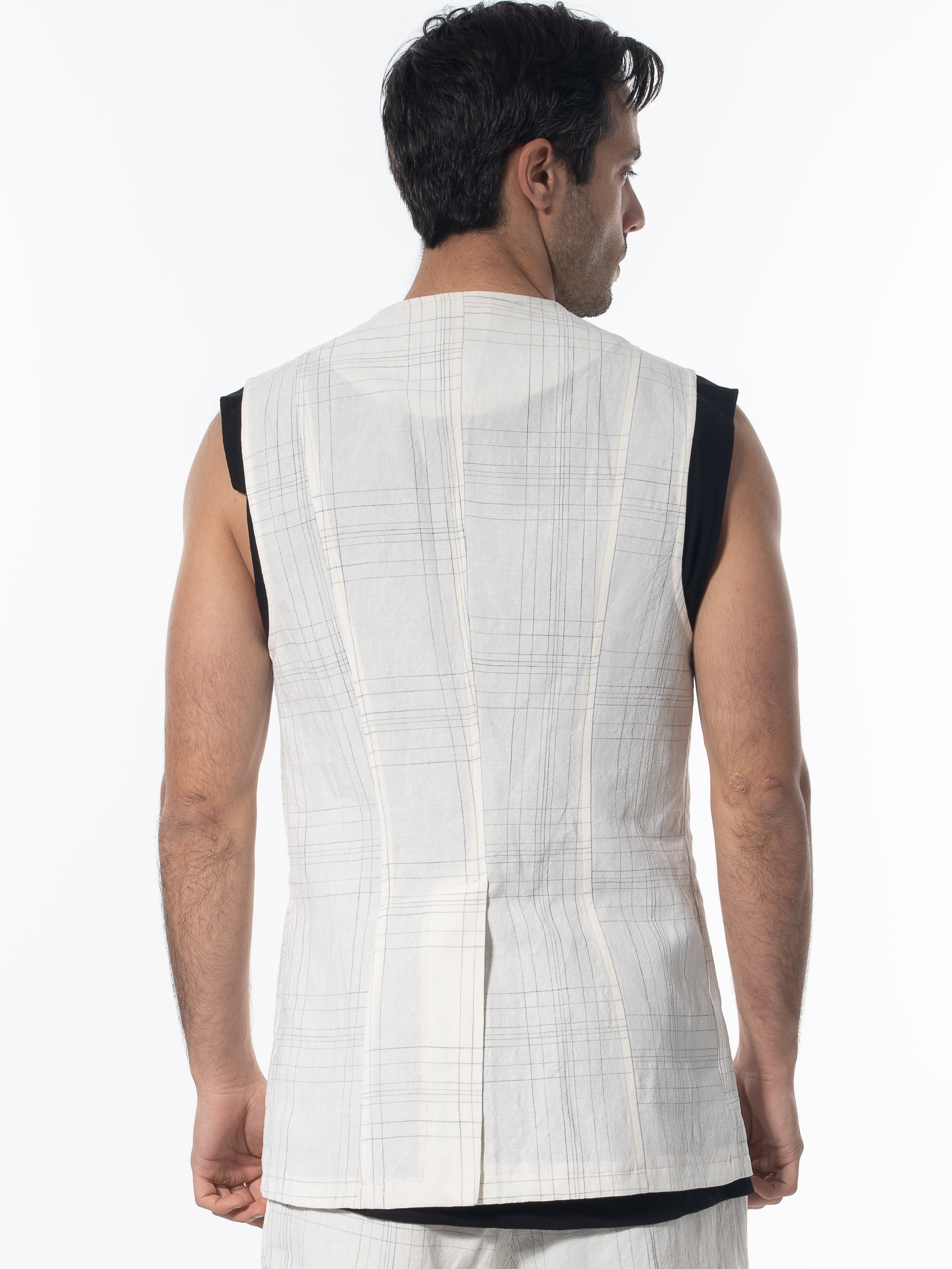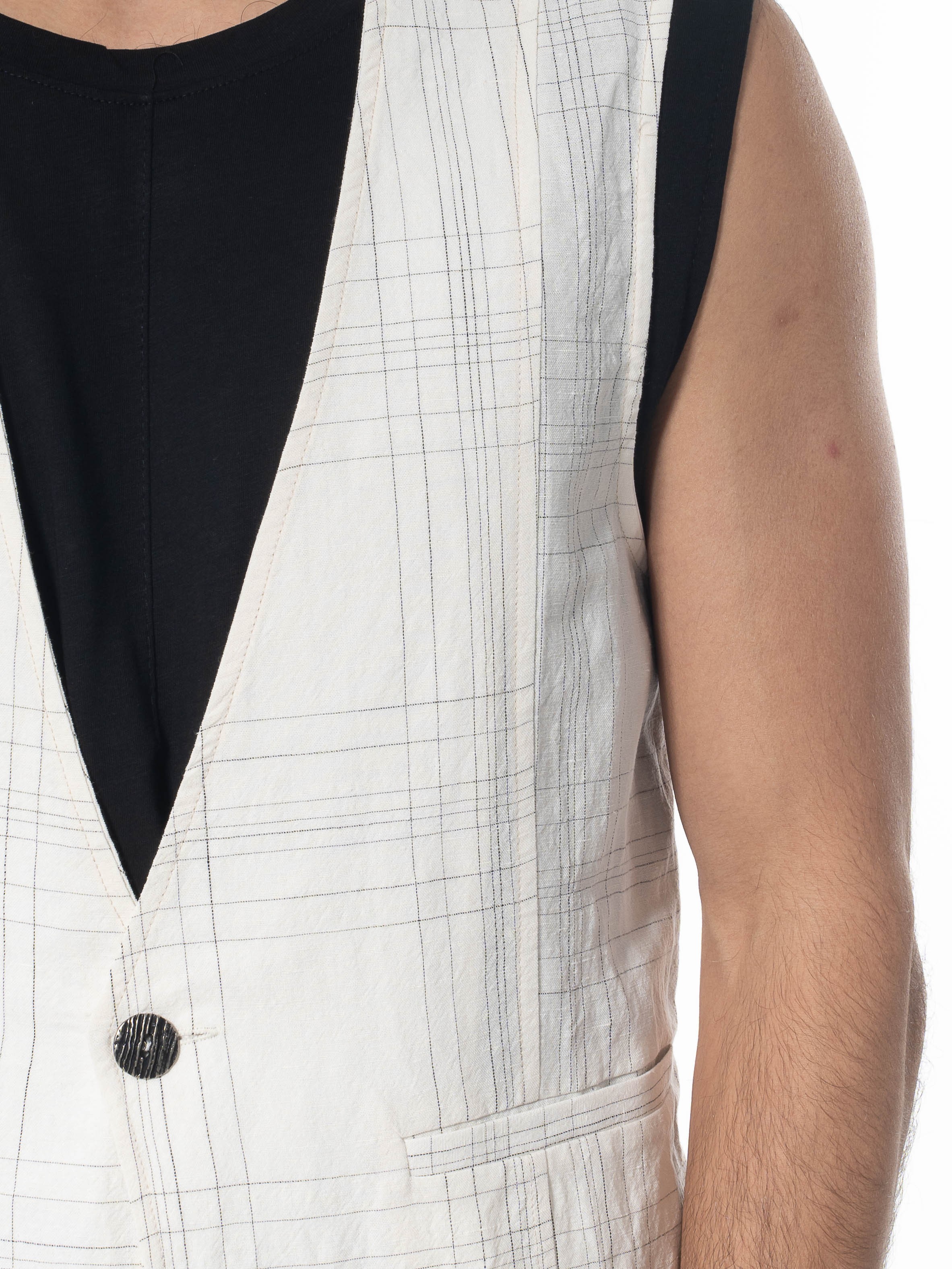 LA HAINE Γιλέκο καρό λινό 3B LM144 Off-white - Μαυρό