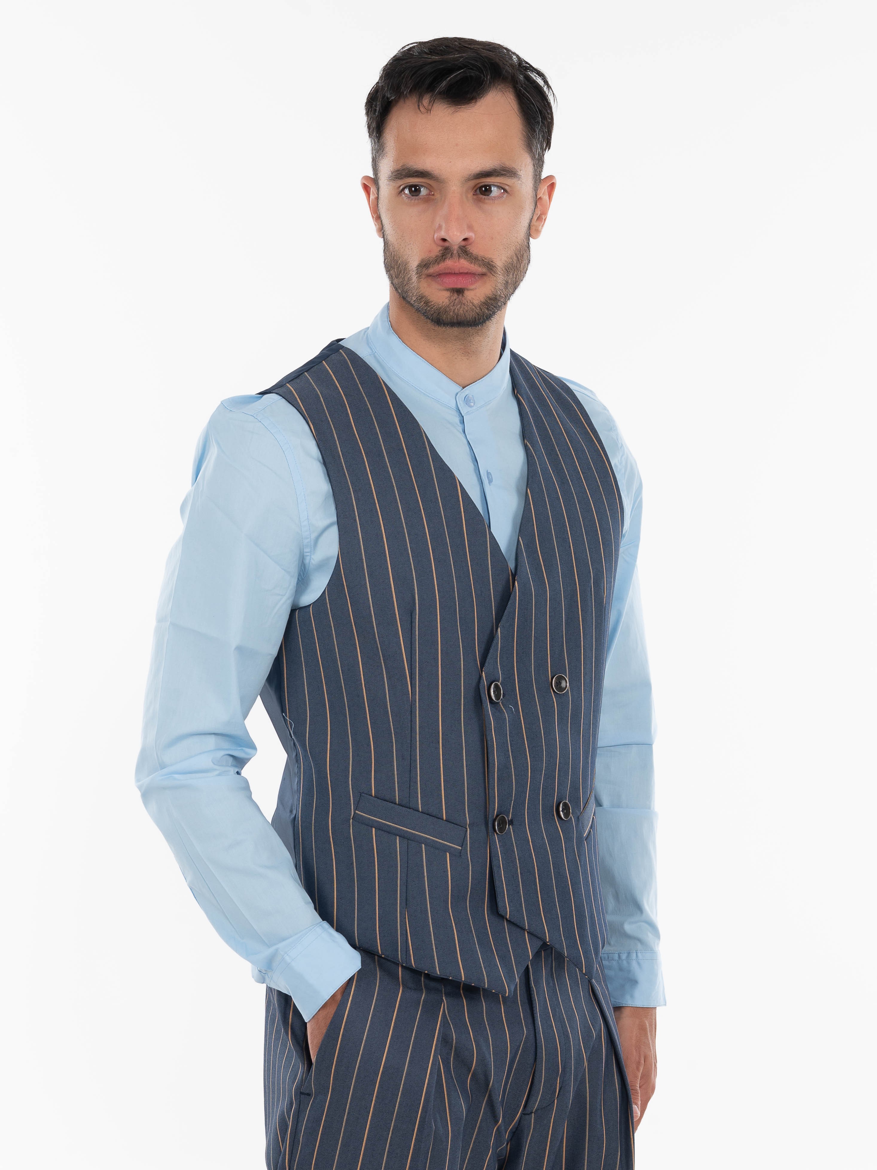 Χαρακτηριστικά: >: Γιλέκο σε slim fit γραμμή σταυροκουμπωτό. 72% polyester 24% viscose 4% elastane