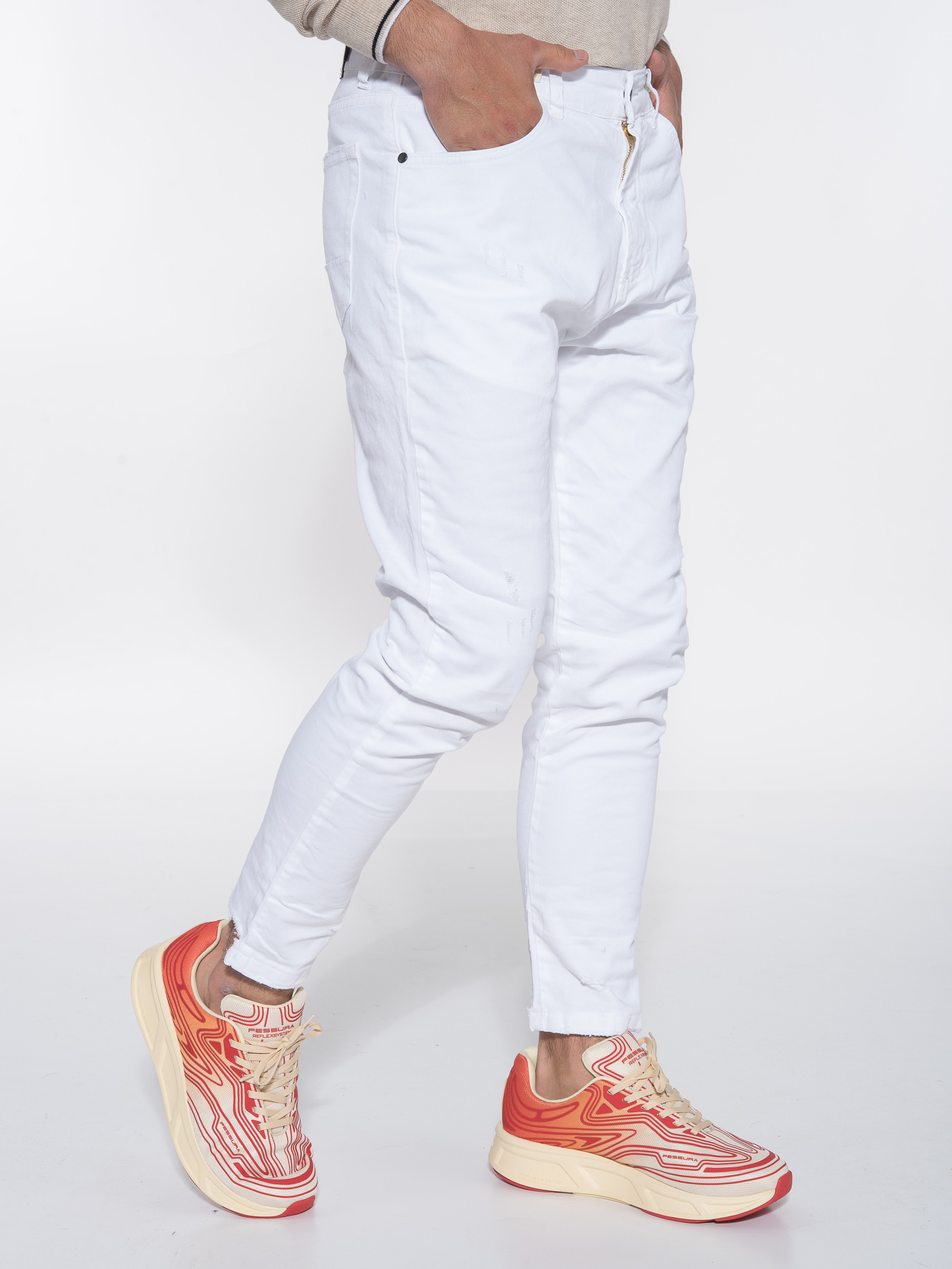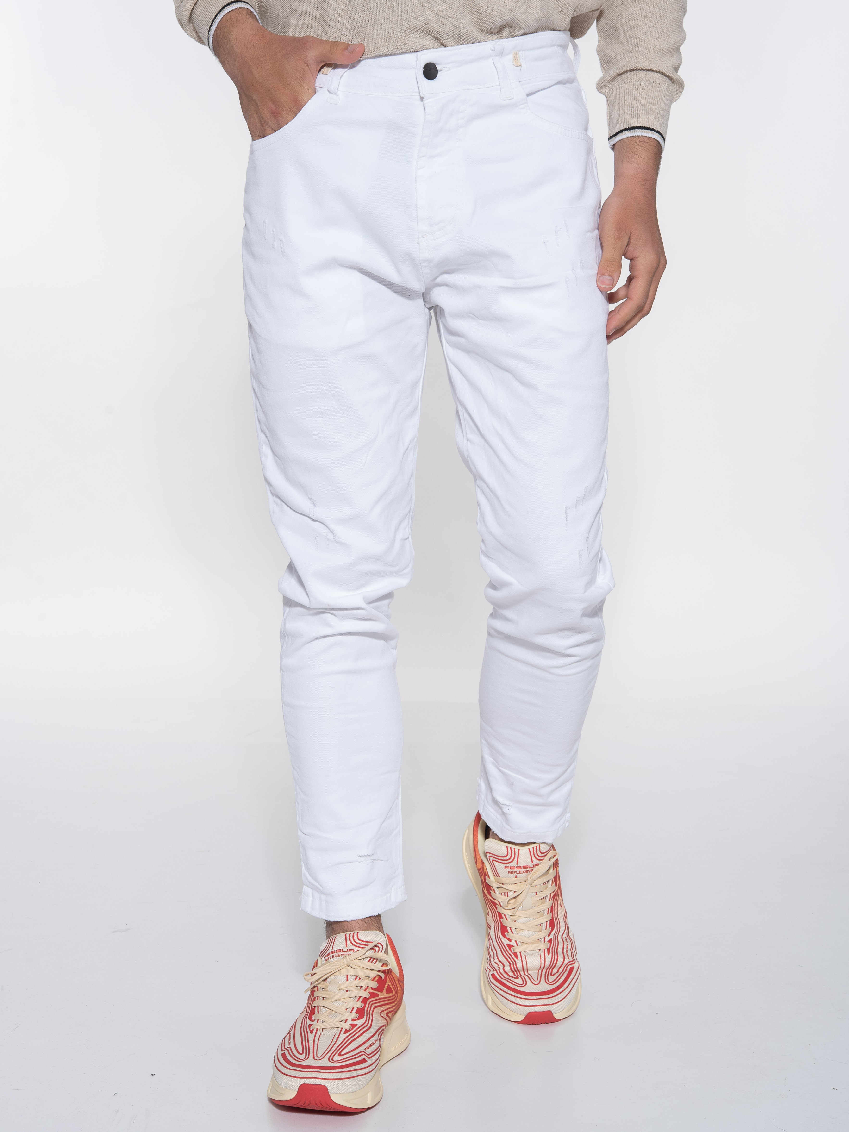Το OVER-D Jean Παντελόνι σε χρώμα Λευκό είναι το ιδανικό κομμάτι για τους άνδρες που θέλουν να νιώθουν άνετα και να διατηρούν το στυλ τους καθημερινά. Η regular fit γραμμή του παντελονιού εξασφαλίζει μια άνετη εφαρμογή και επιτρέπει την ελεύθερη κίνηση.