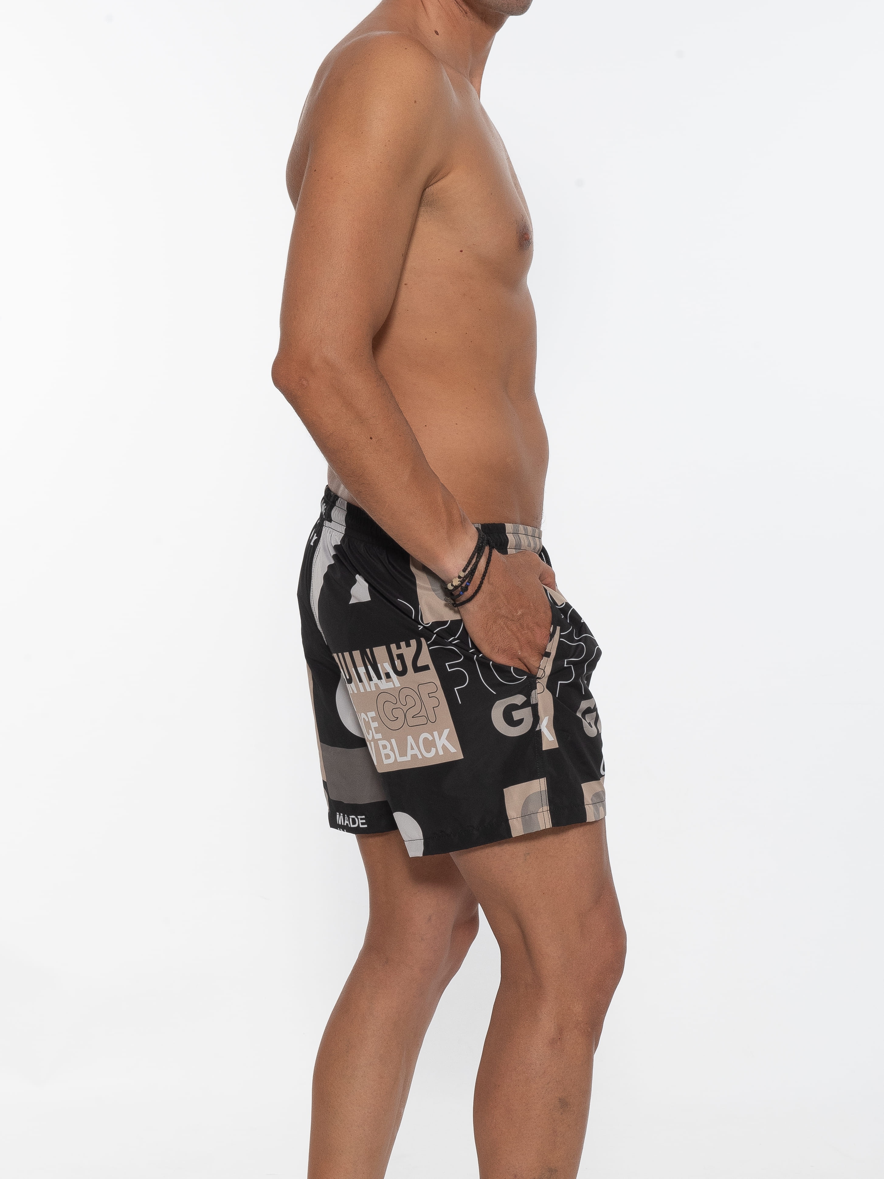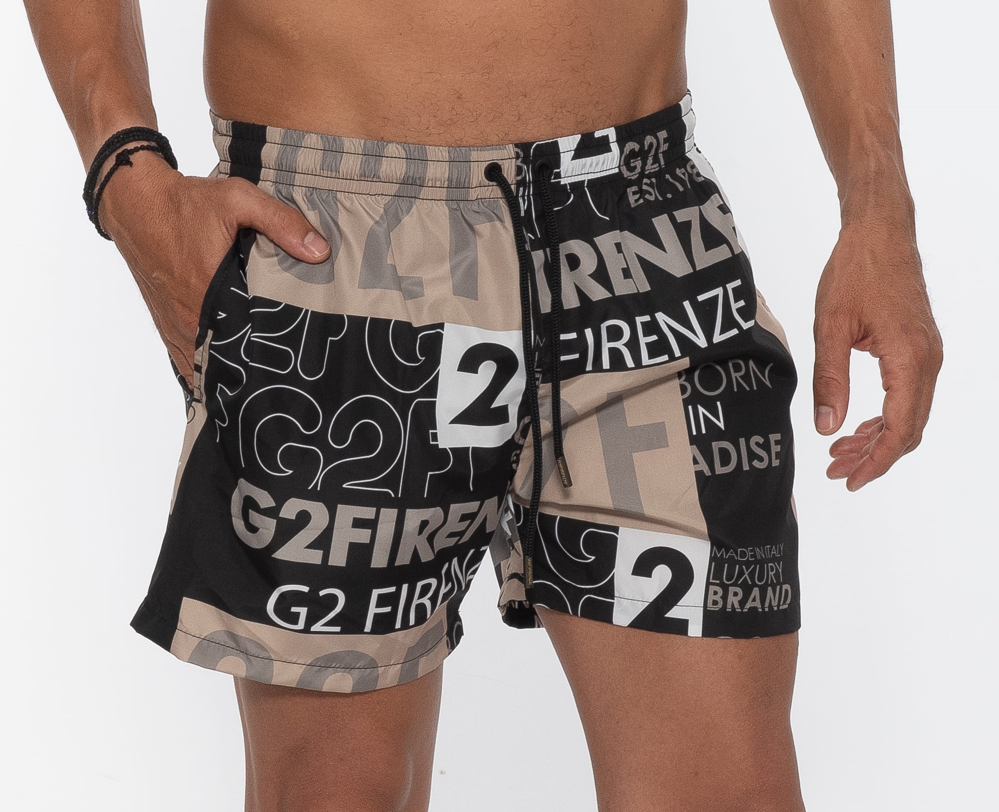 G2FIRENZE Μαγιό BROTHERHOOD Μαύρο - Μπεζ
