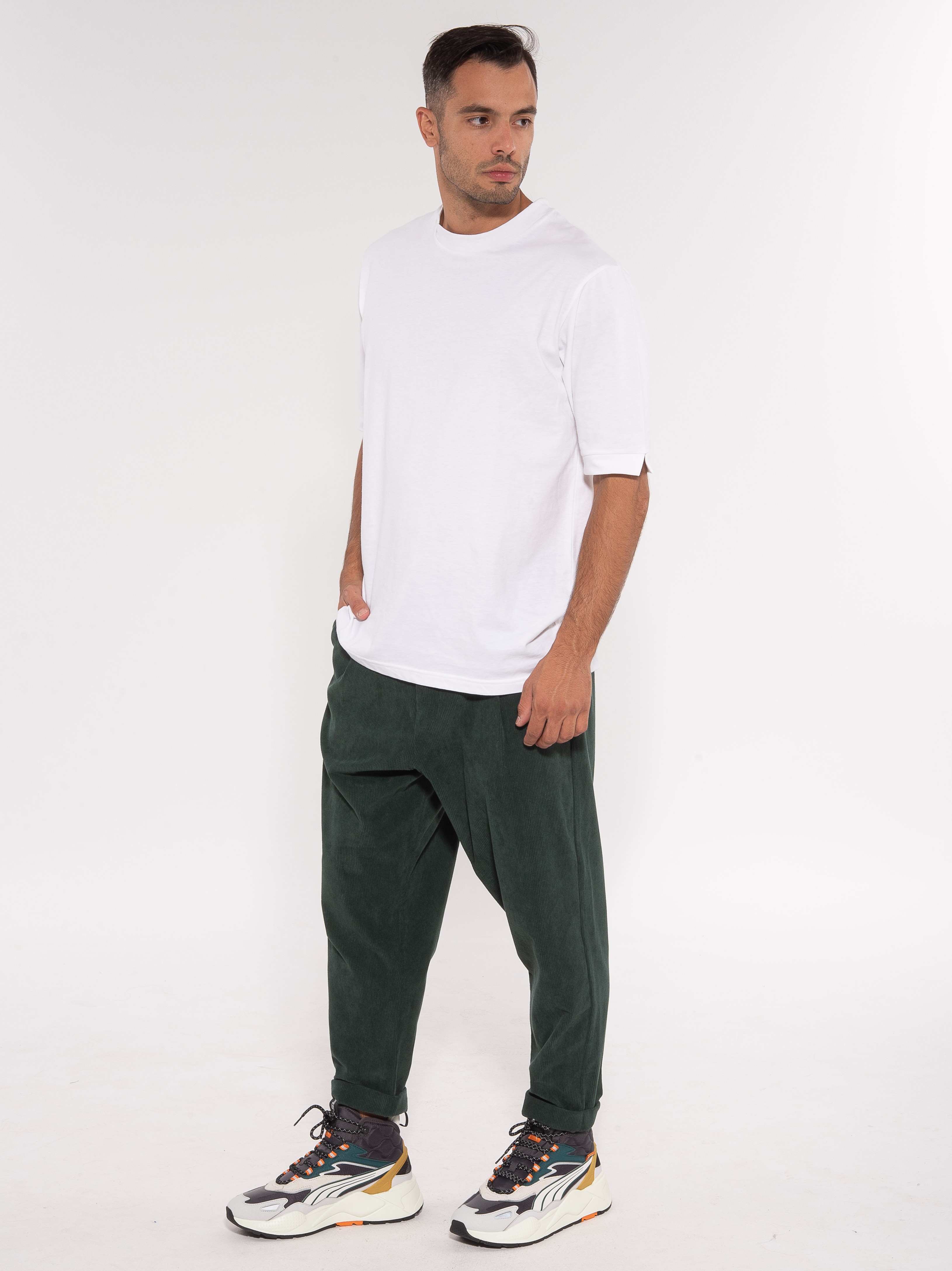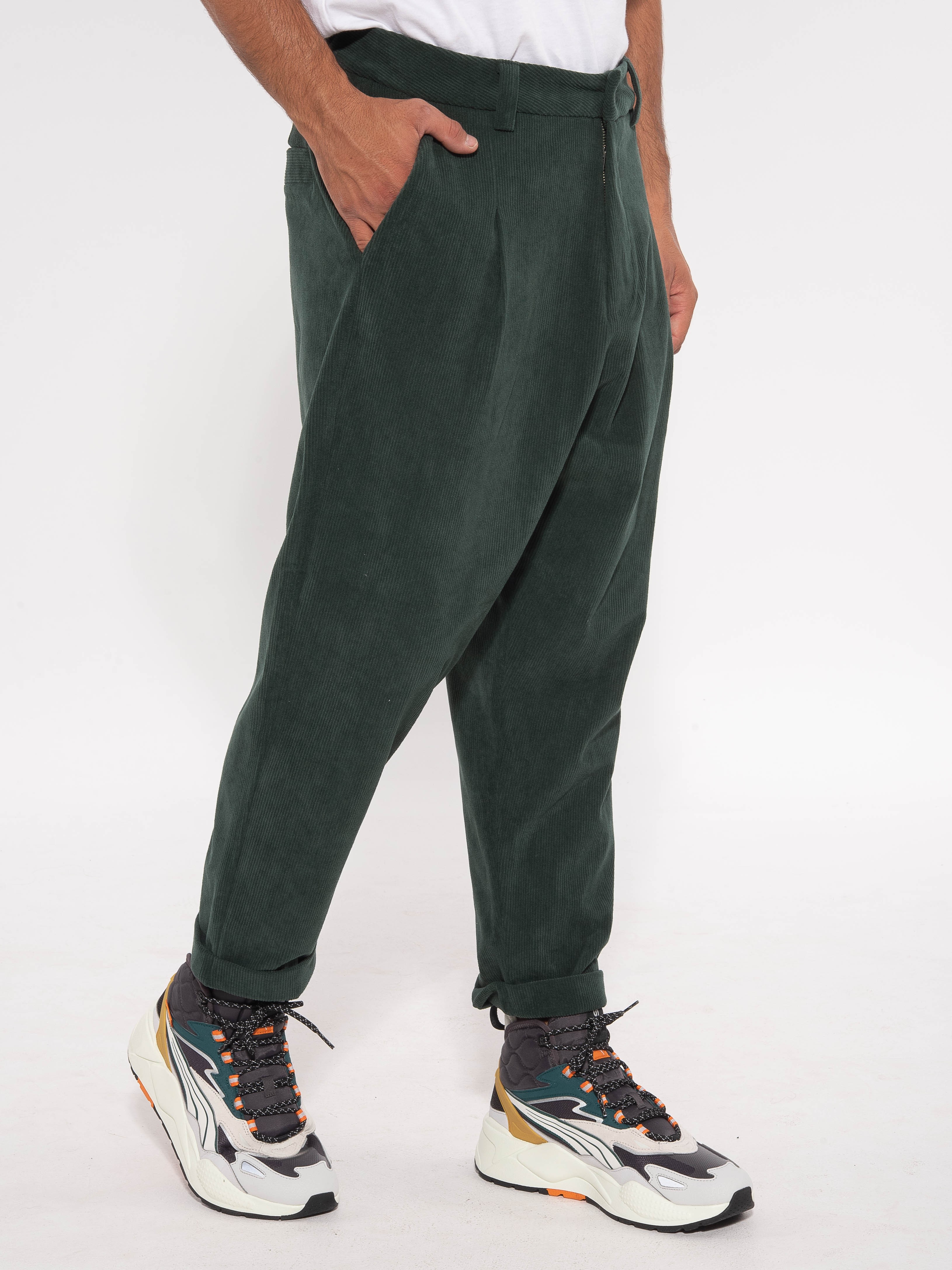 Χαρακτηριστικά: Chino Παντελόνι κοτλέ σε regular fit γραμμή με πιέτες και με ρεβέ στο τελείωμα. 100% polyester