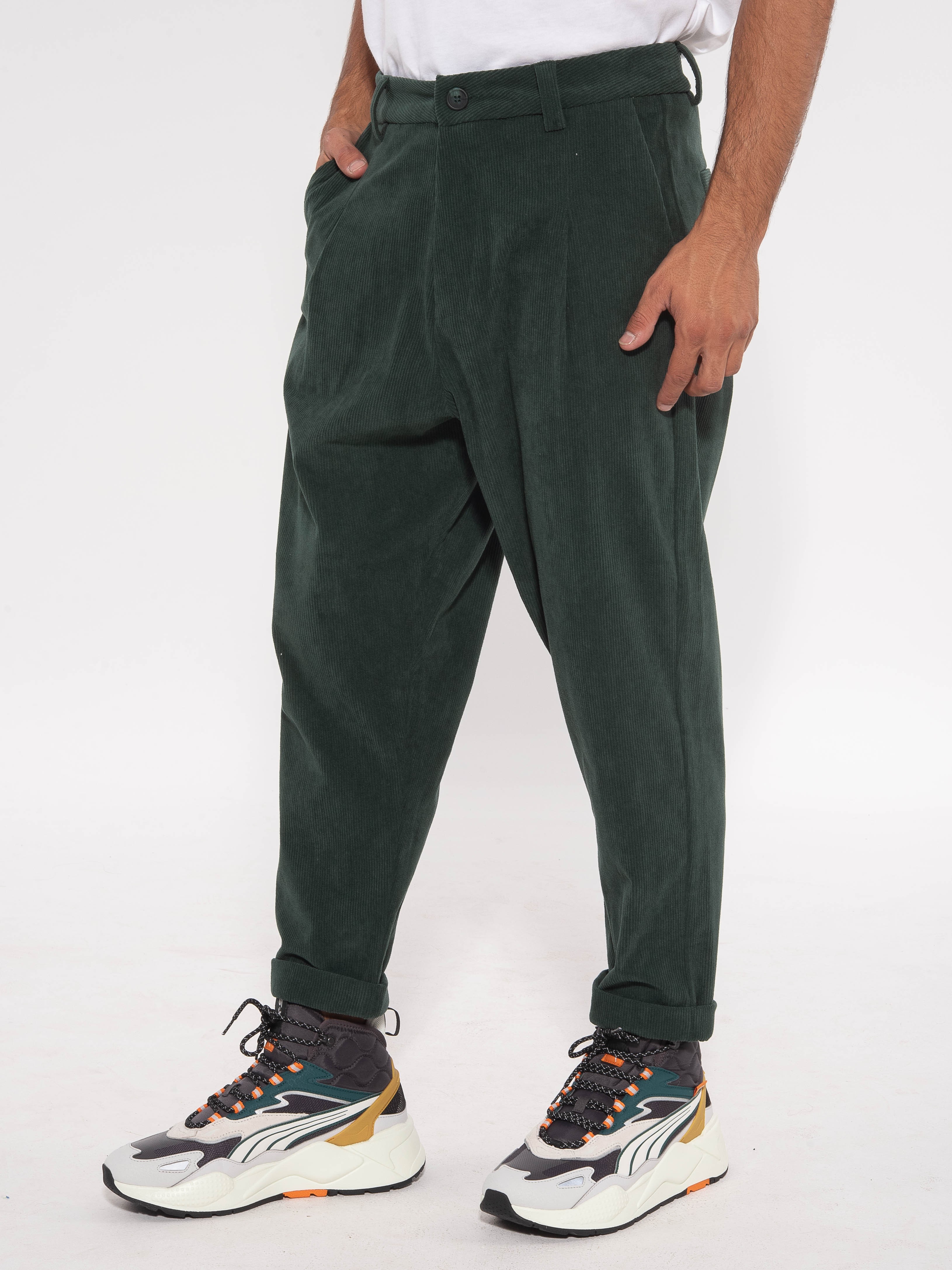 NINETEEN Chino Παντελόνι κοτλέ X23-1018 Κυπαρισσί