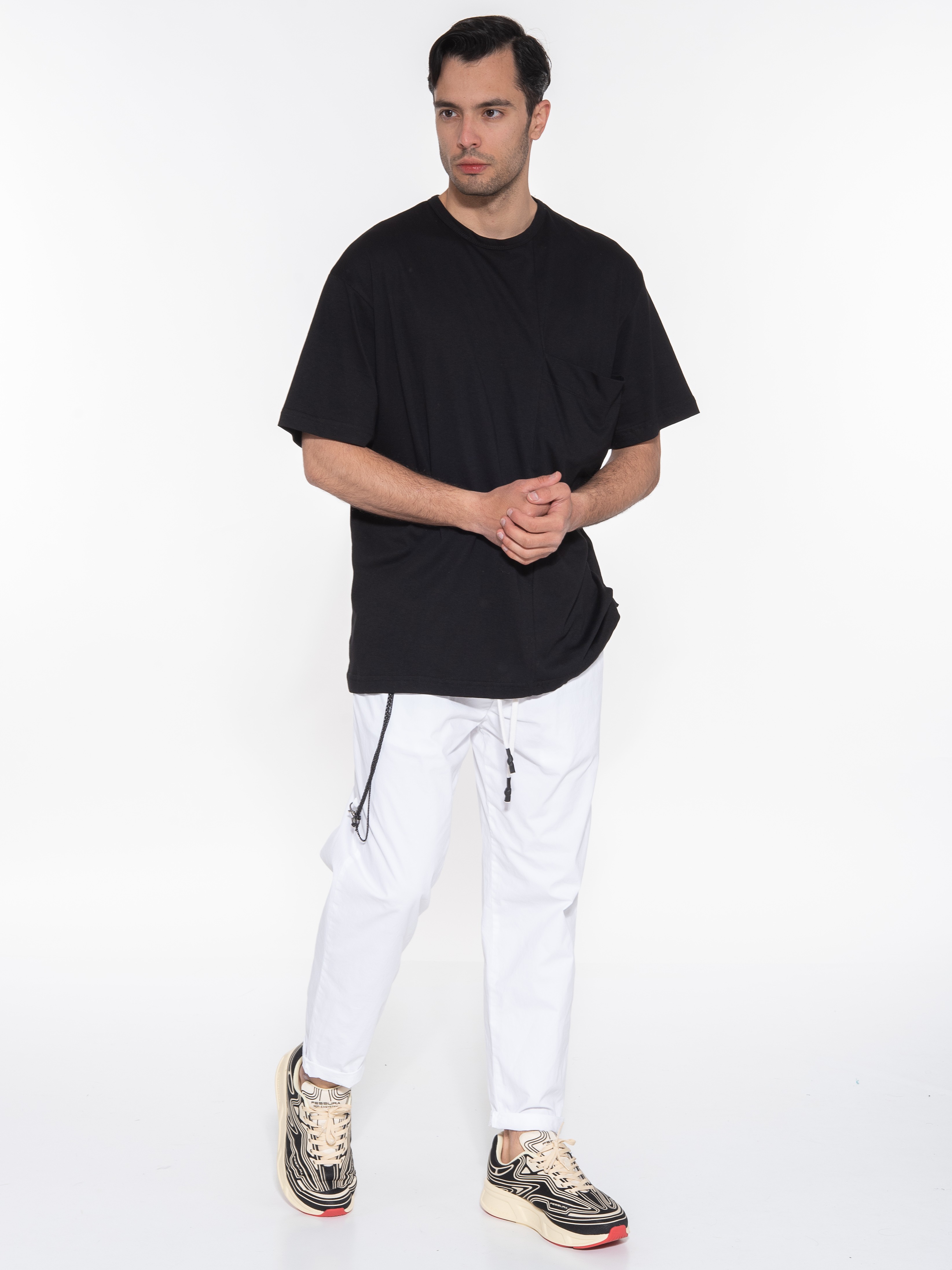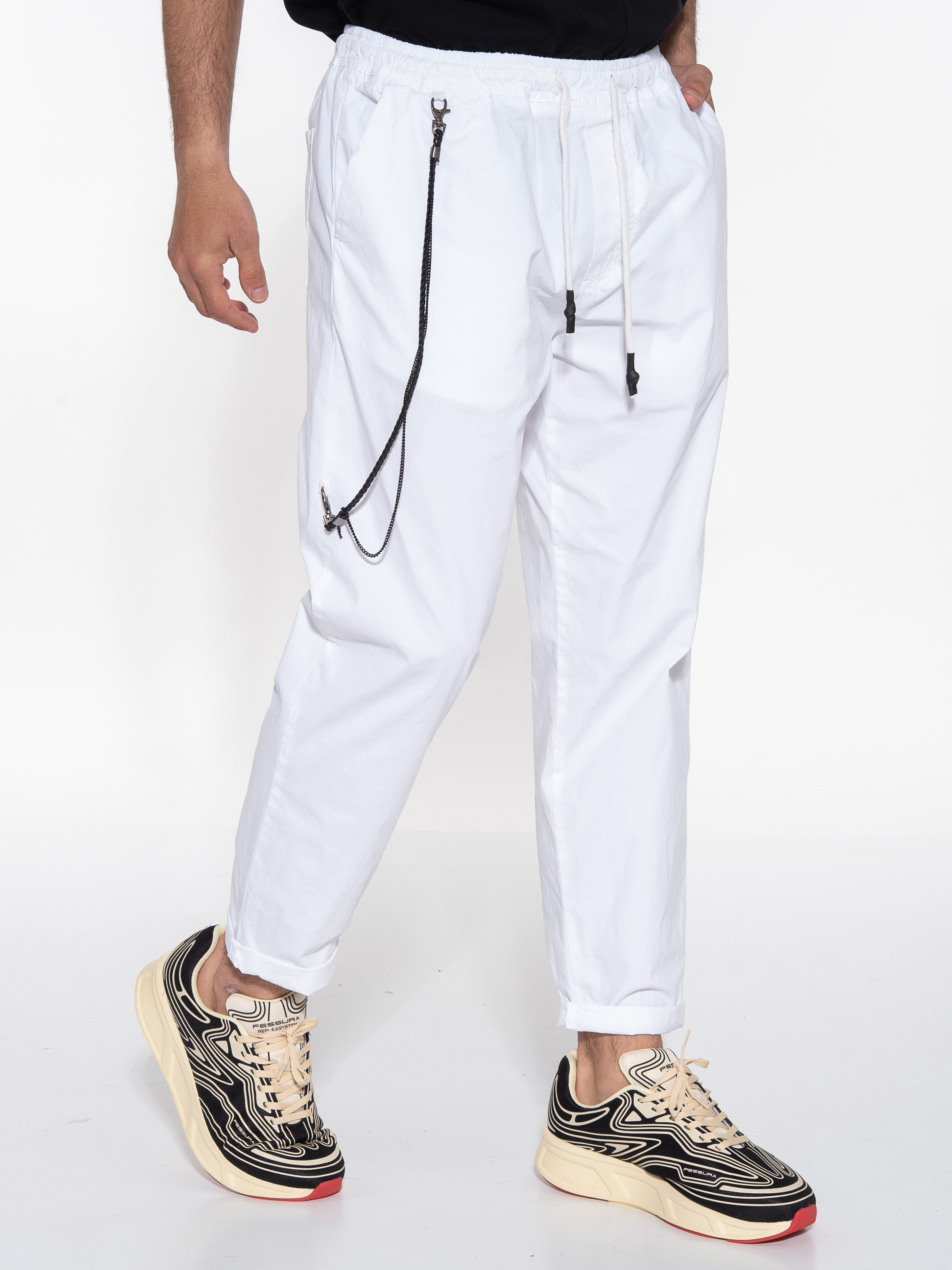 Χαρακτηριστικά: Παντελόνι σε regular fit γραμμή με λάστιχο στη μέση και με αλυσίδα για αξεσουάρ. 97% cotton 3% elastane