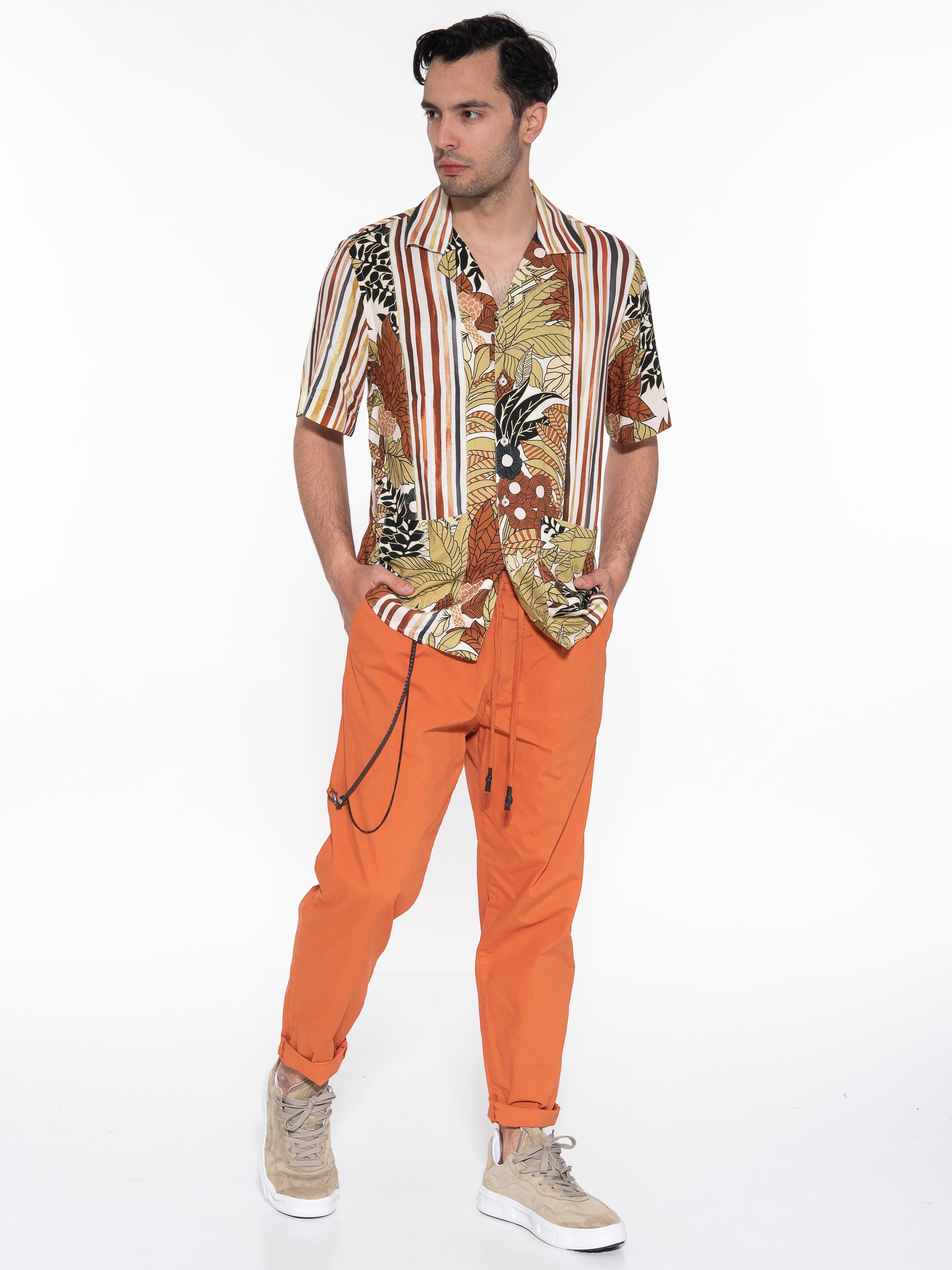 Χαρακτηριστικά: Παντελόνι σε regular fit γραμμή με λάστιχο στη μέση και με αλυσίδα για αξεσουάρ. 97% cotton 3% elastane