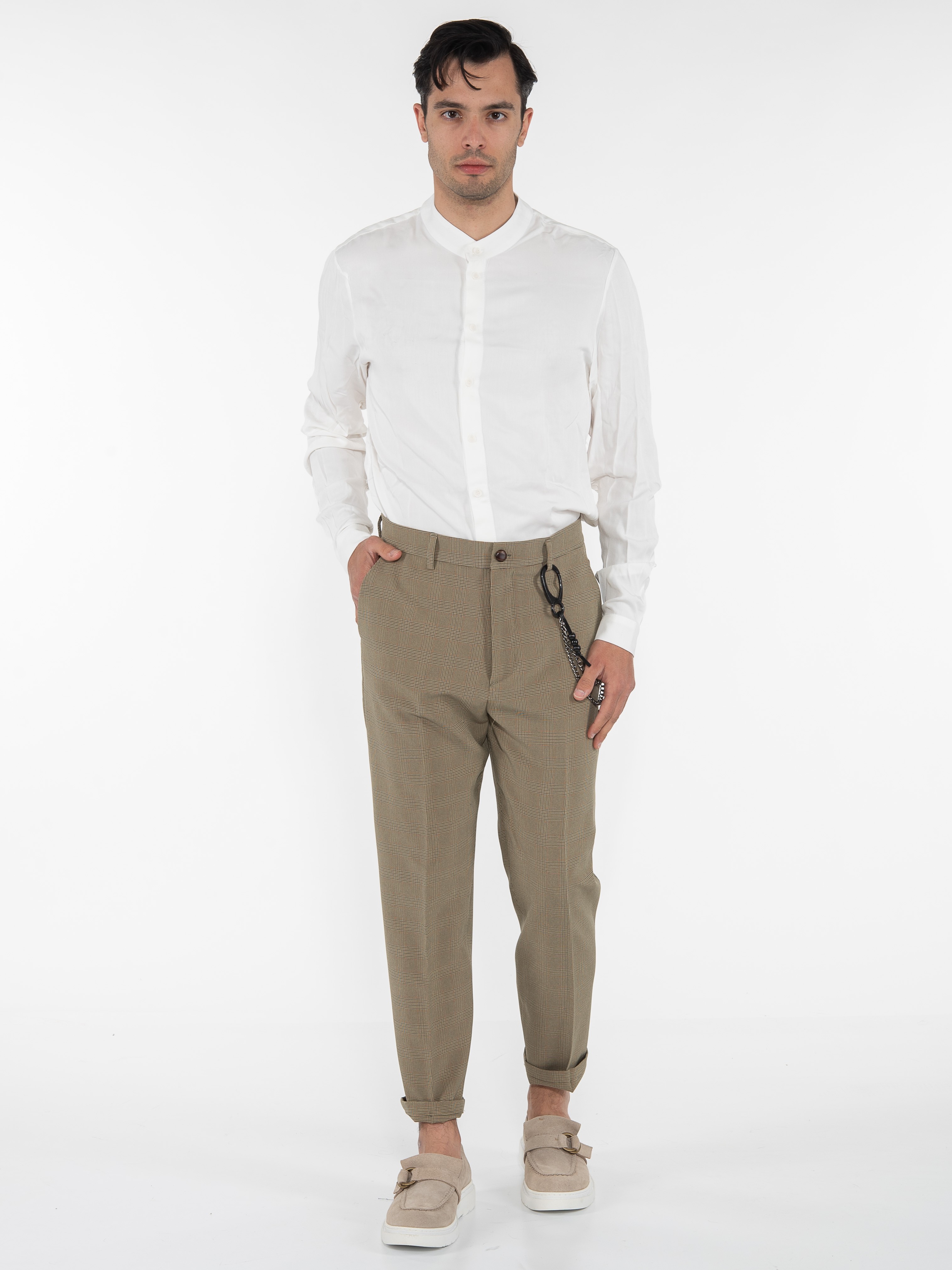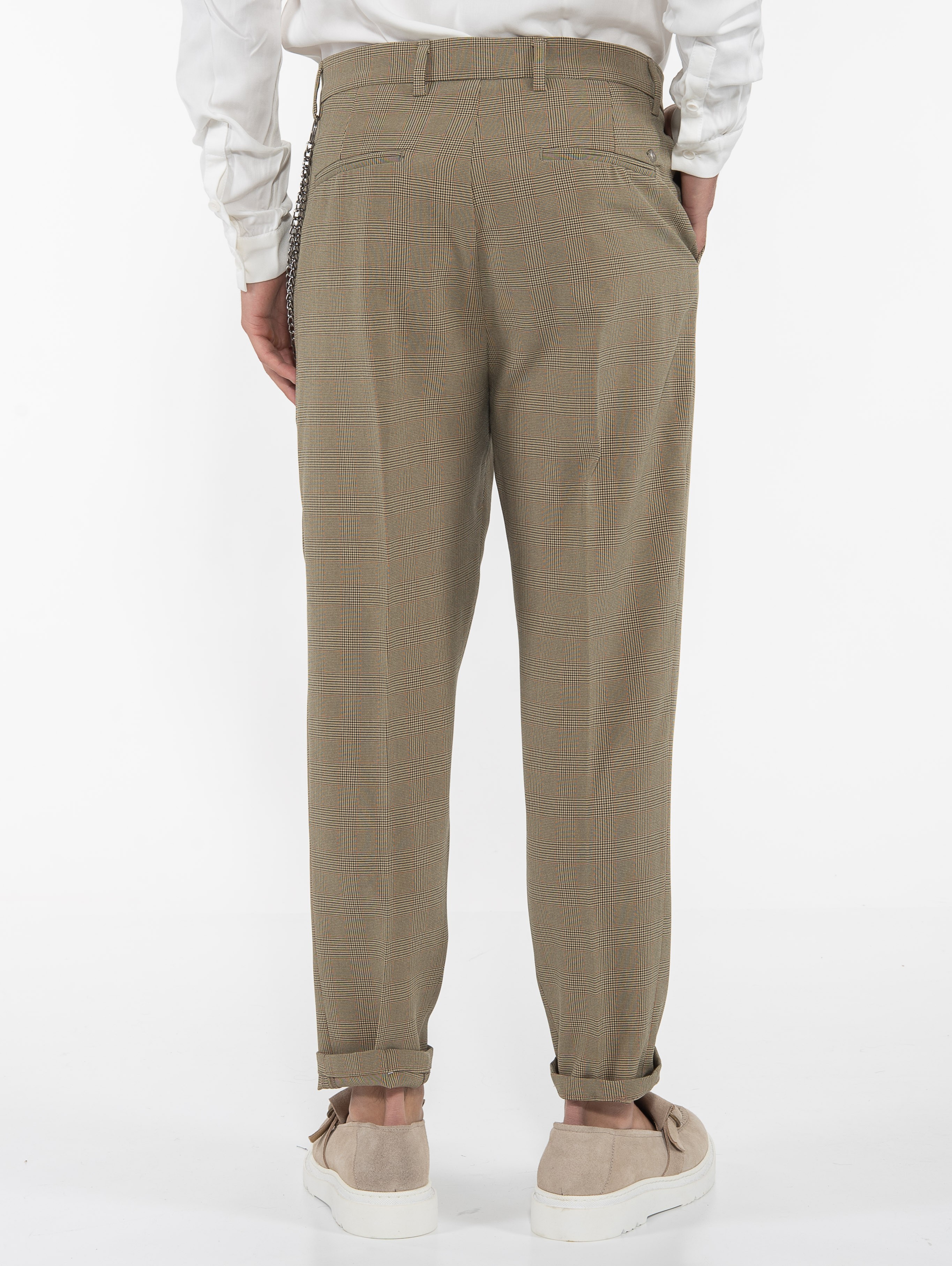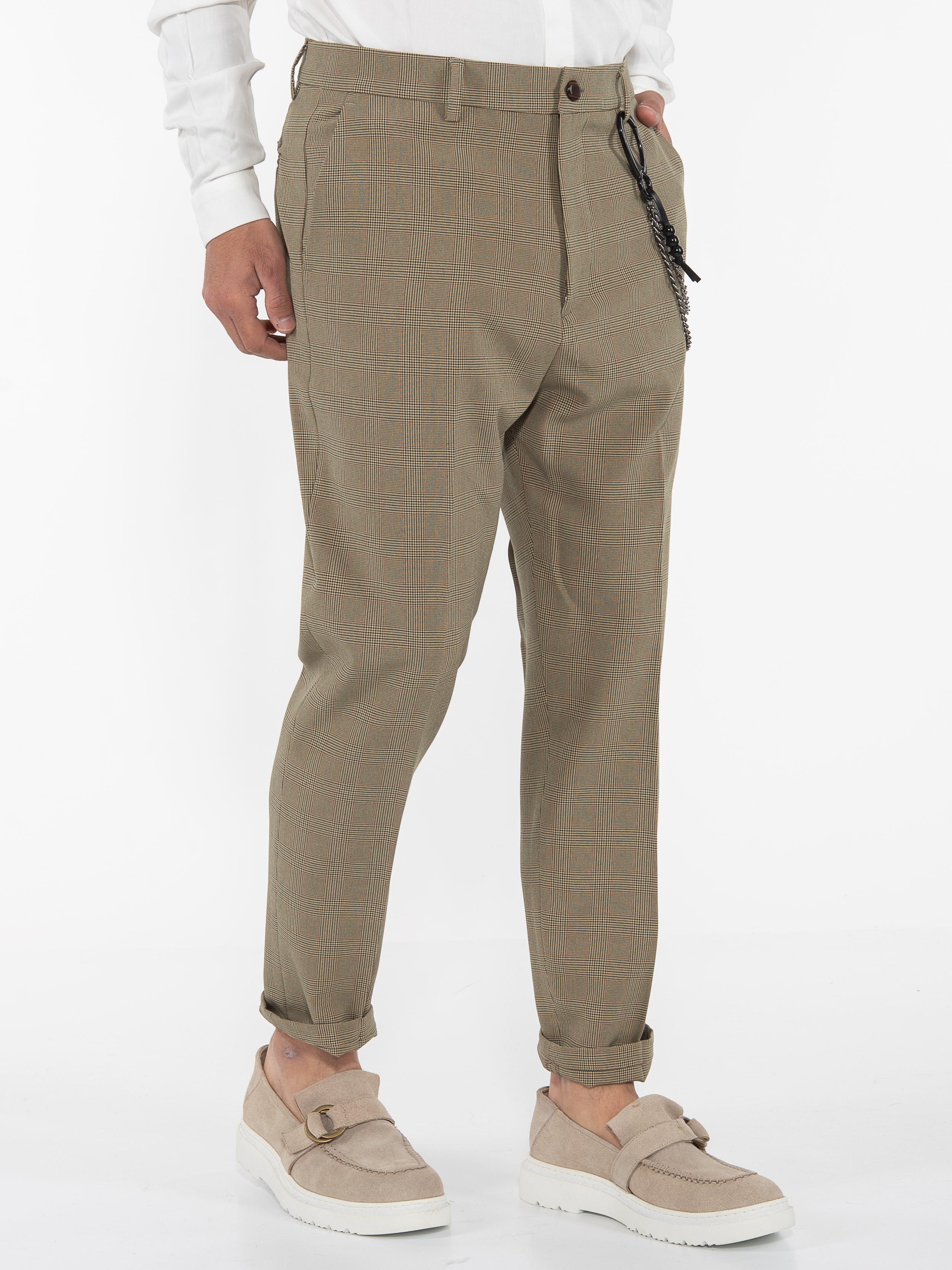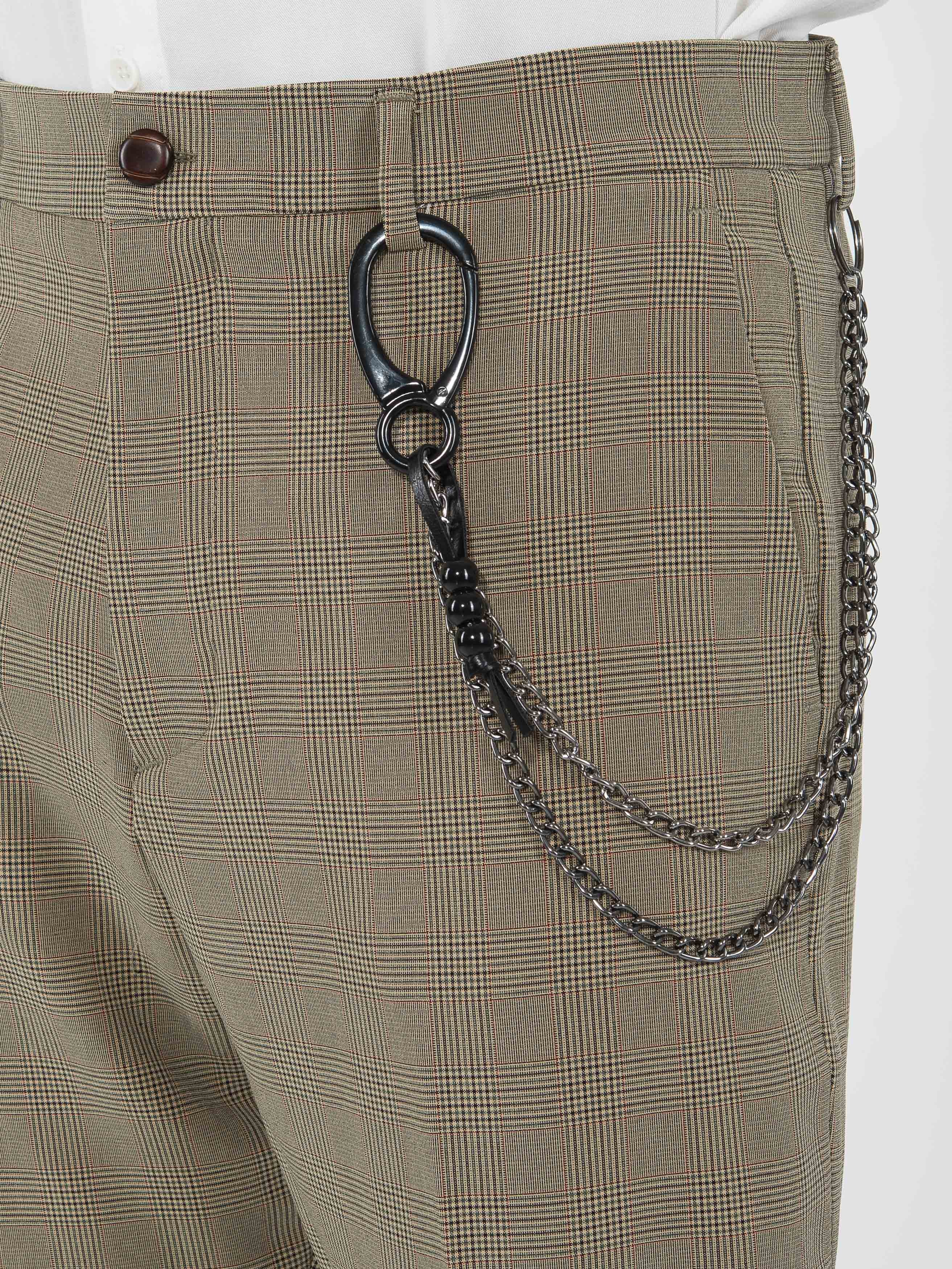Χαρακτηριστικά: Chino Παντελόνι καρό σε slim fit γραμμή με τσέπη φιλέτο στην πίσω πλευρά και με αλυσίδα για αξεσουάρ. 95% cotton 5% elastane