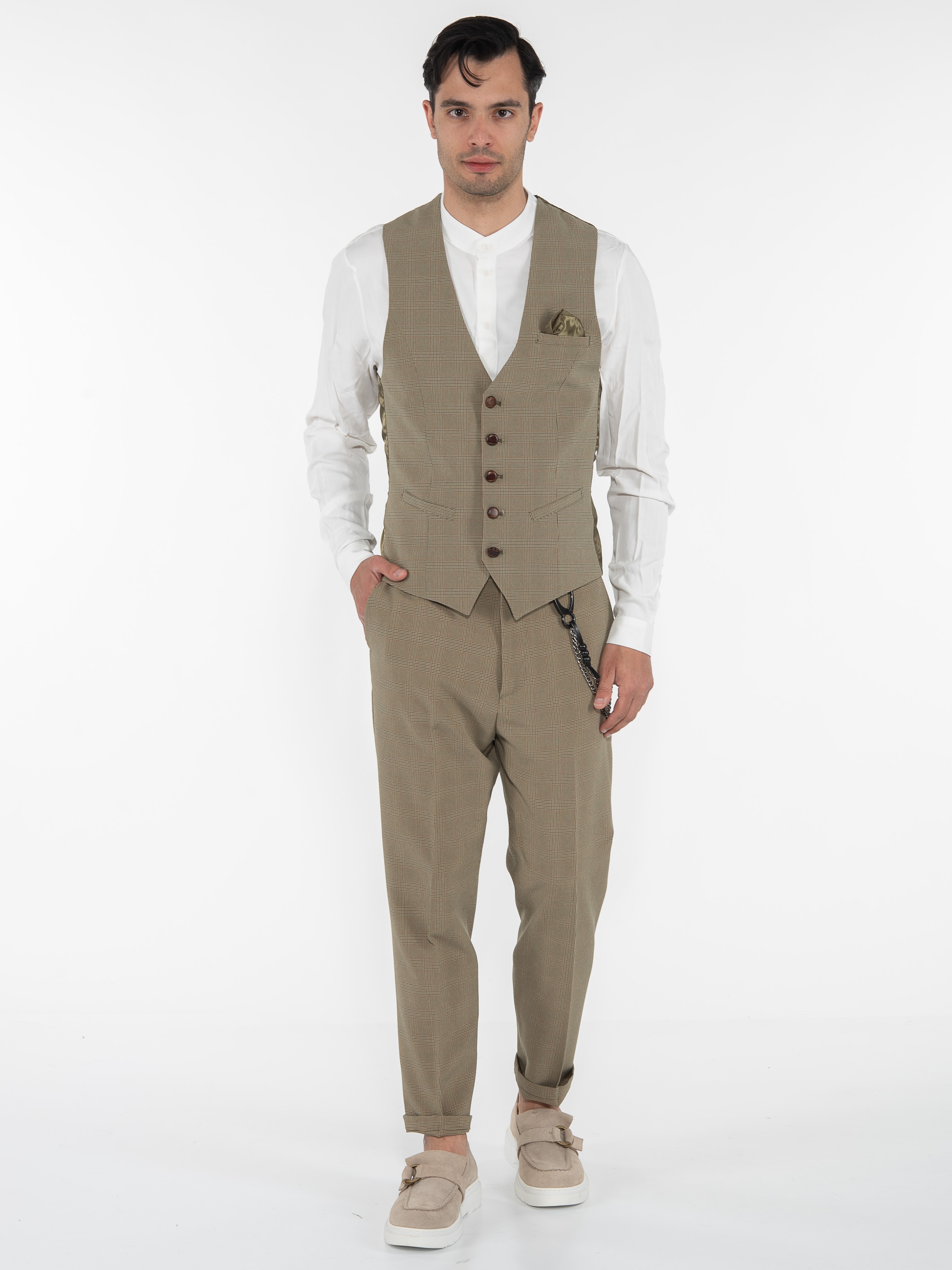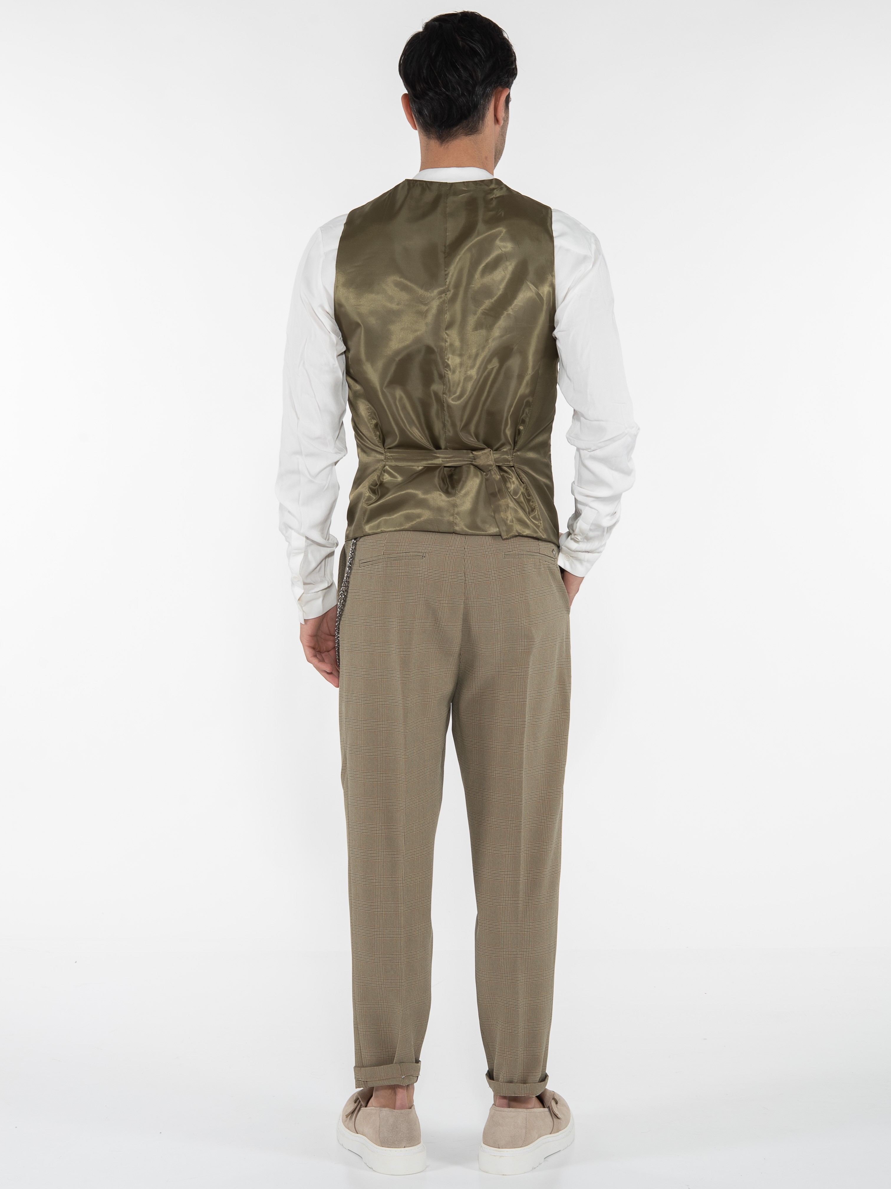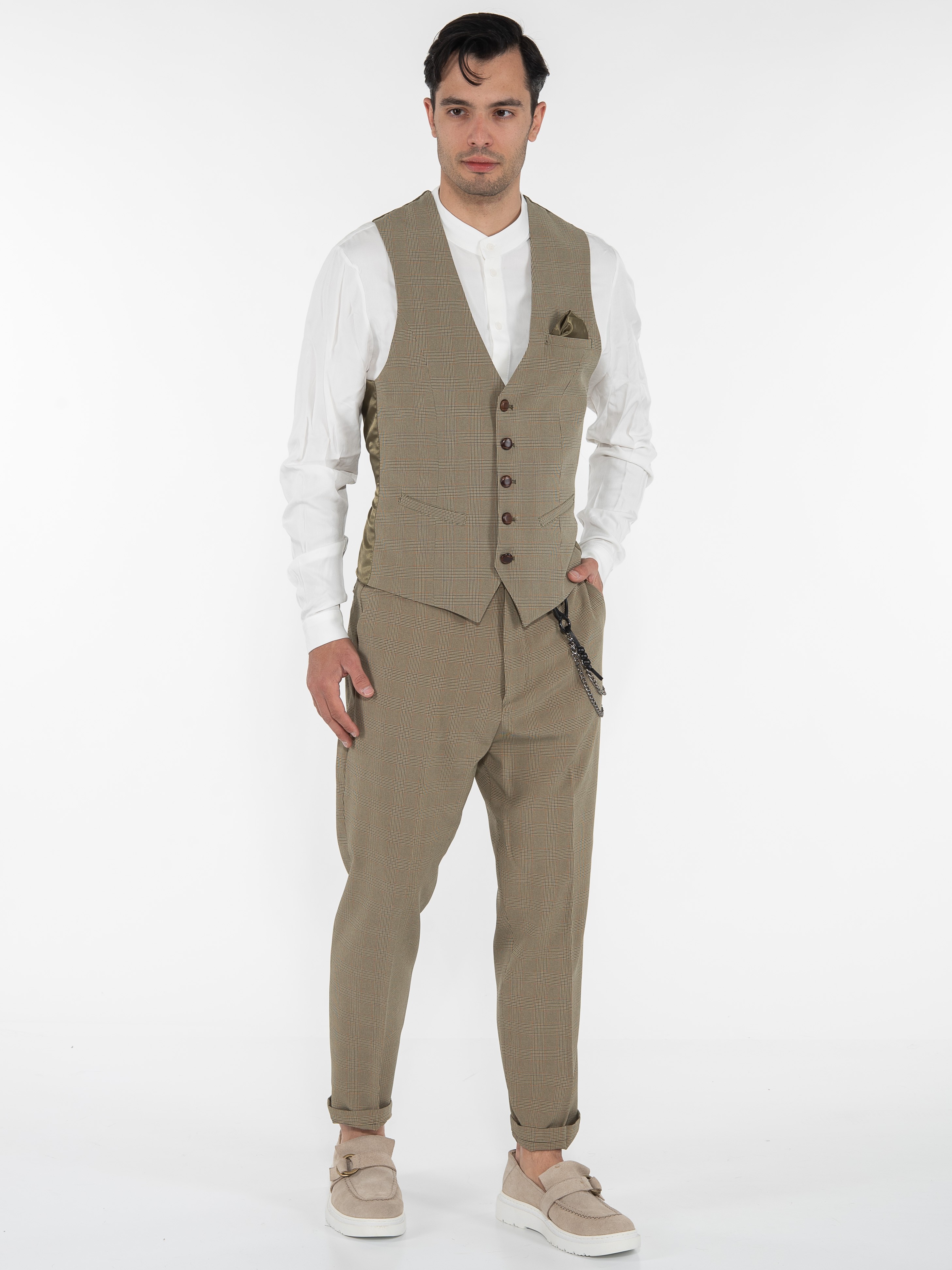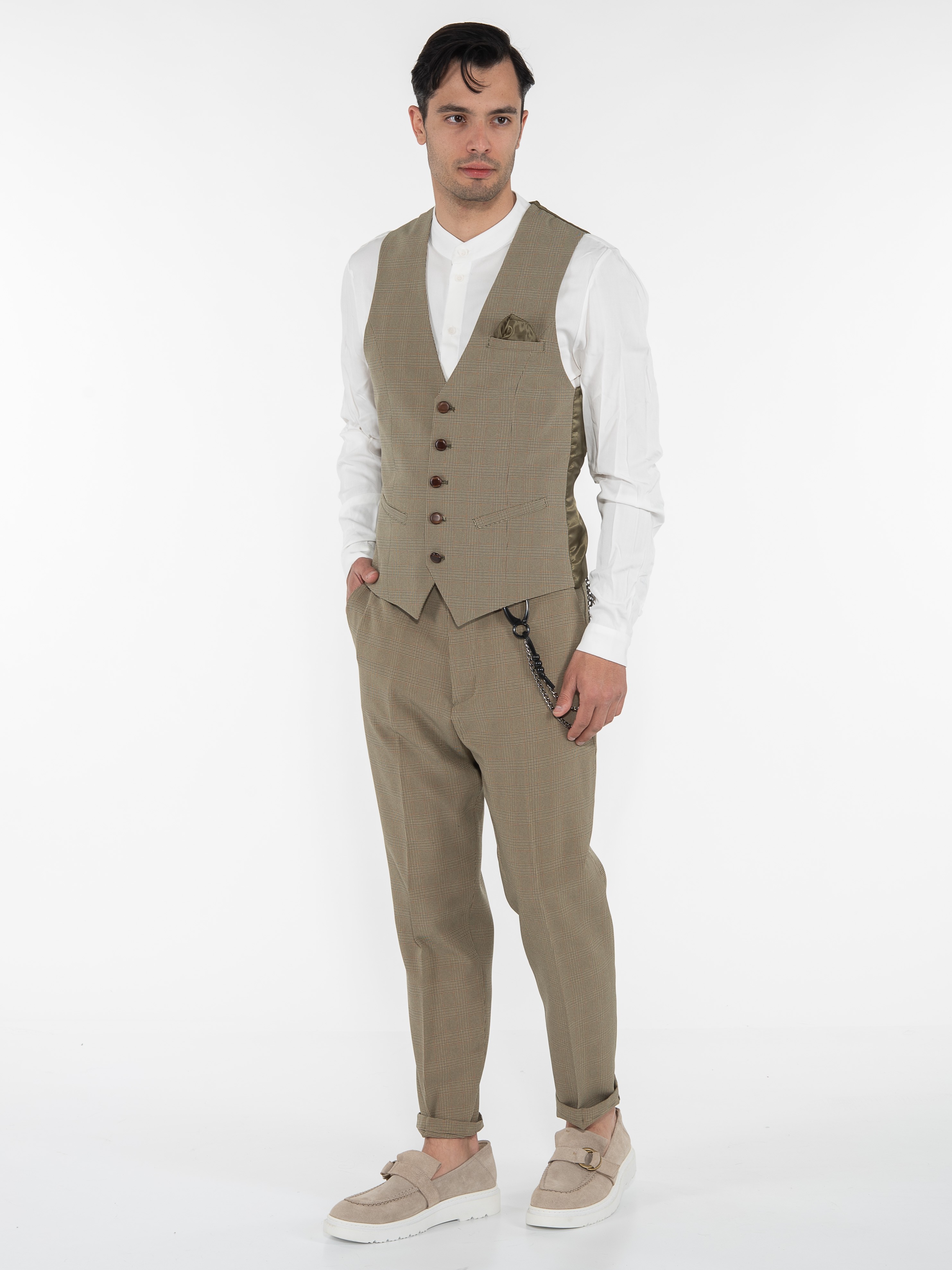 Χαρακτηριστικά: Chino Παντελόνι καρό σε slim fit γραμμή με τσέπη φιλέτο στην πίσω πλευρά και με αλυσίδα για αξεσουάρ. 95% cotton 5% elastane