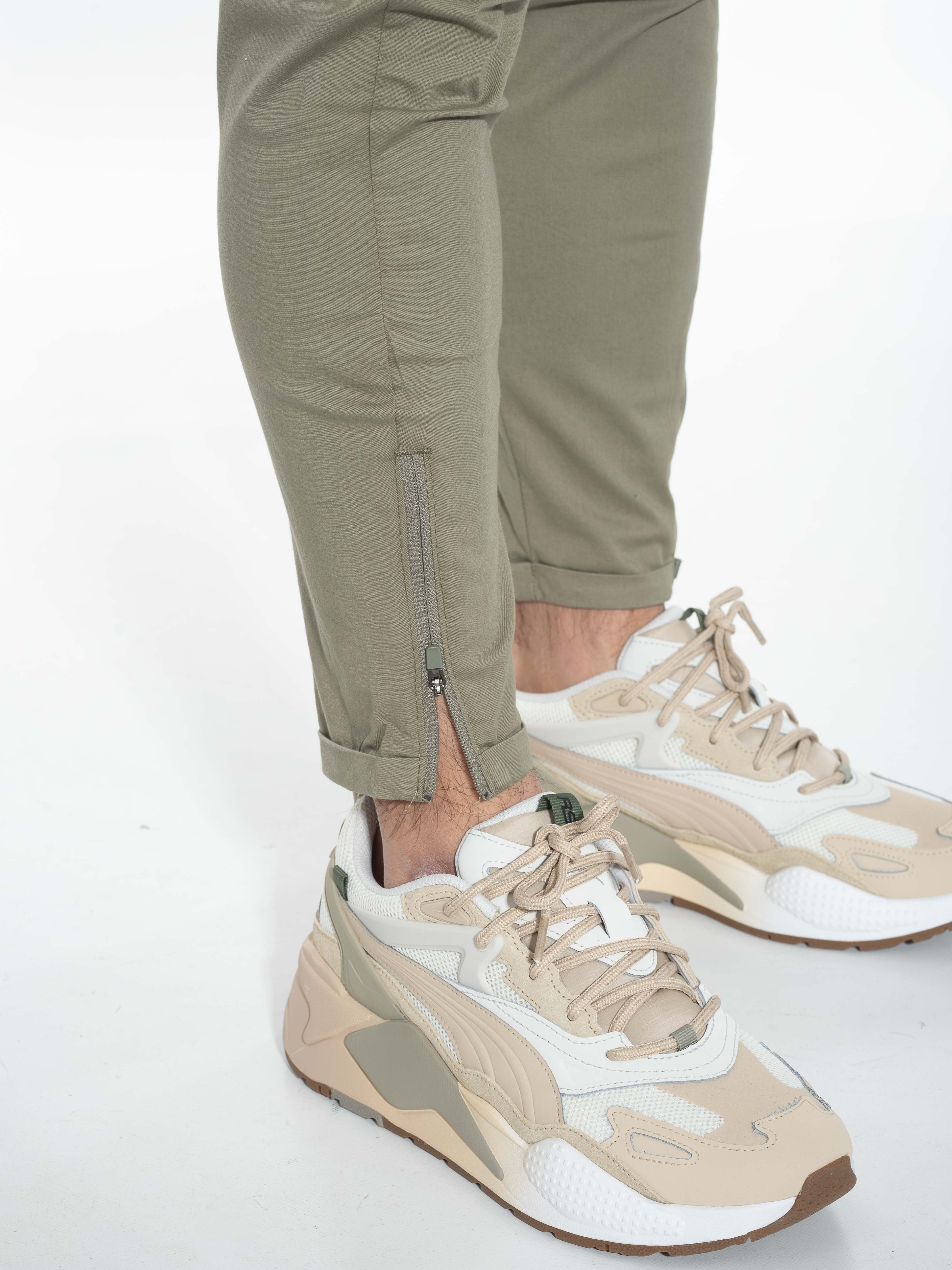 Χαρακτηριστικά: Chino Παντελόνι σε slim fit γραμμή με zipper στο τελείωμα στο ίδιο χρώμα με το παντελόνι. 97% cotton 3% elastane