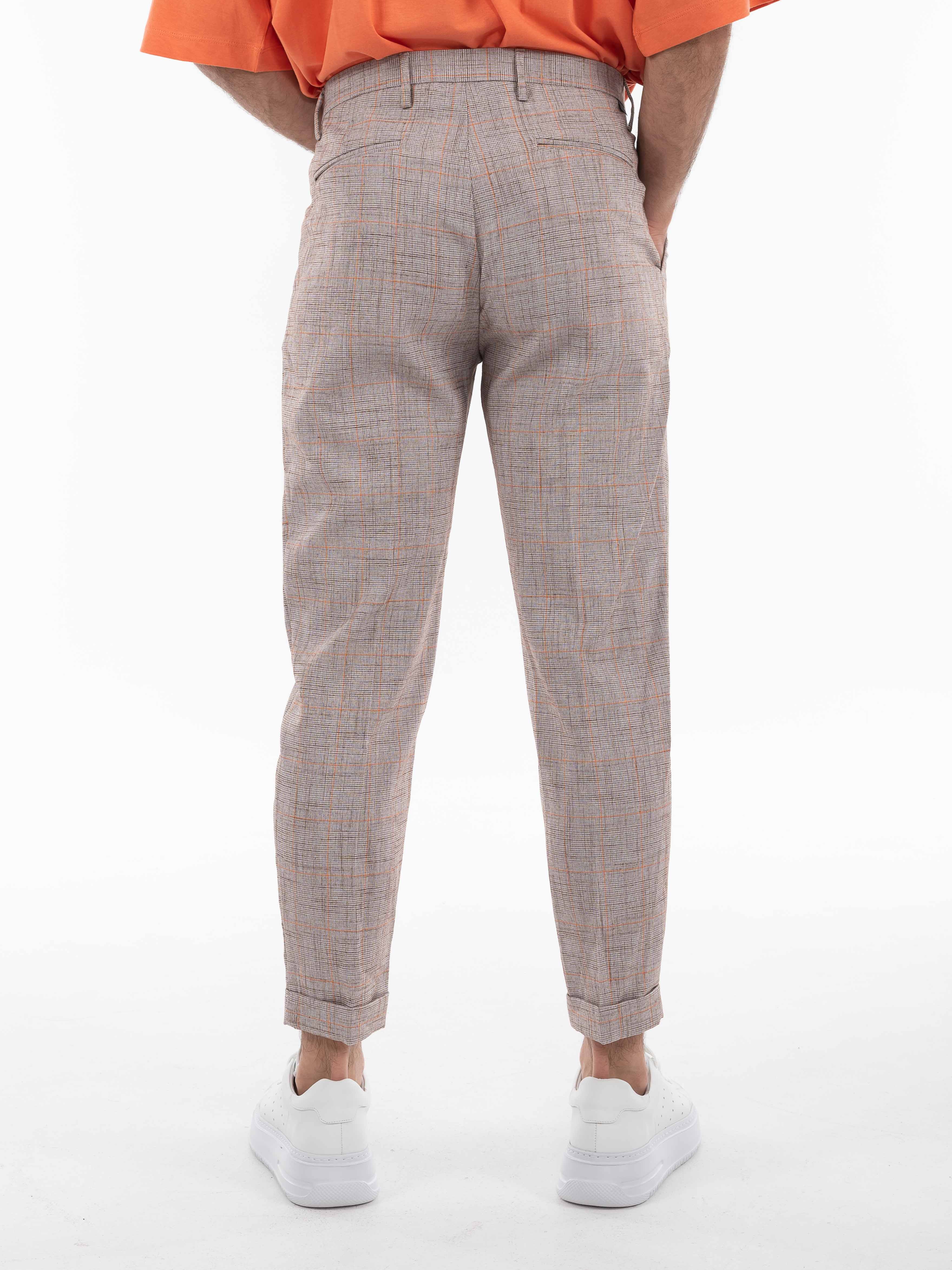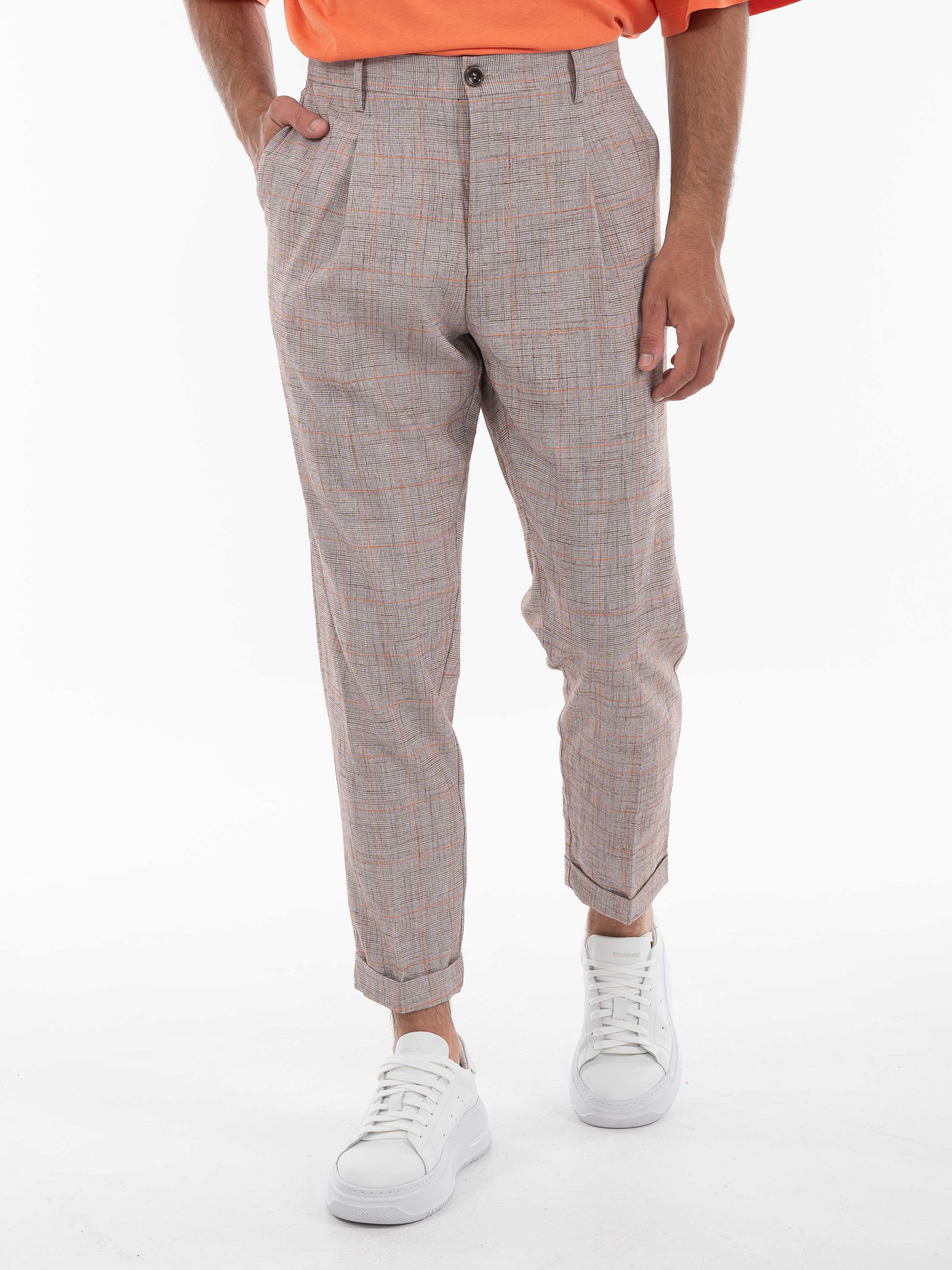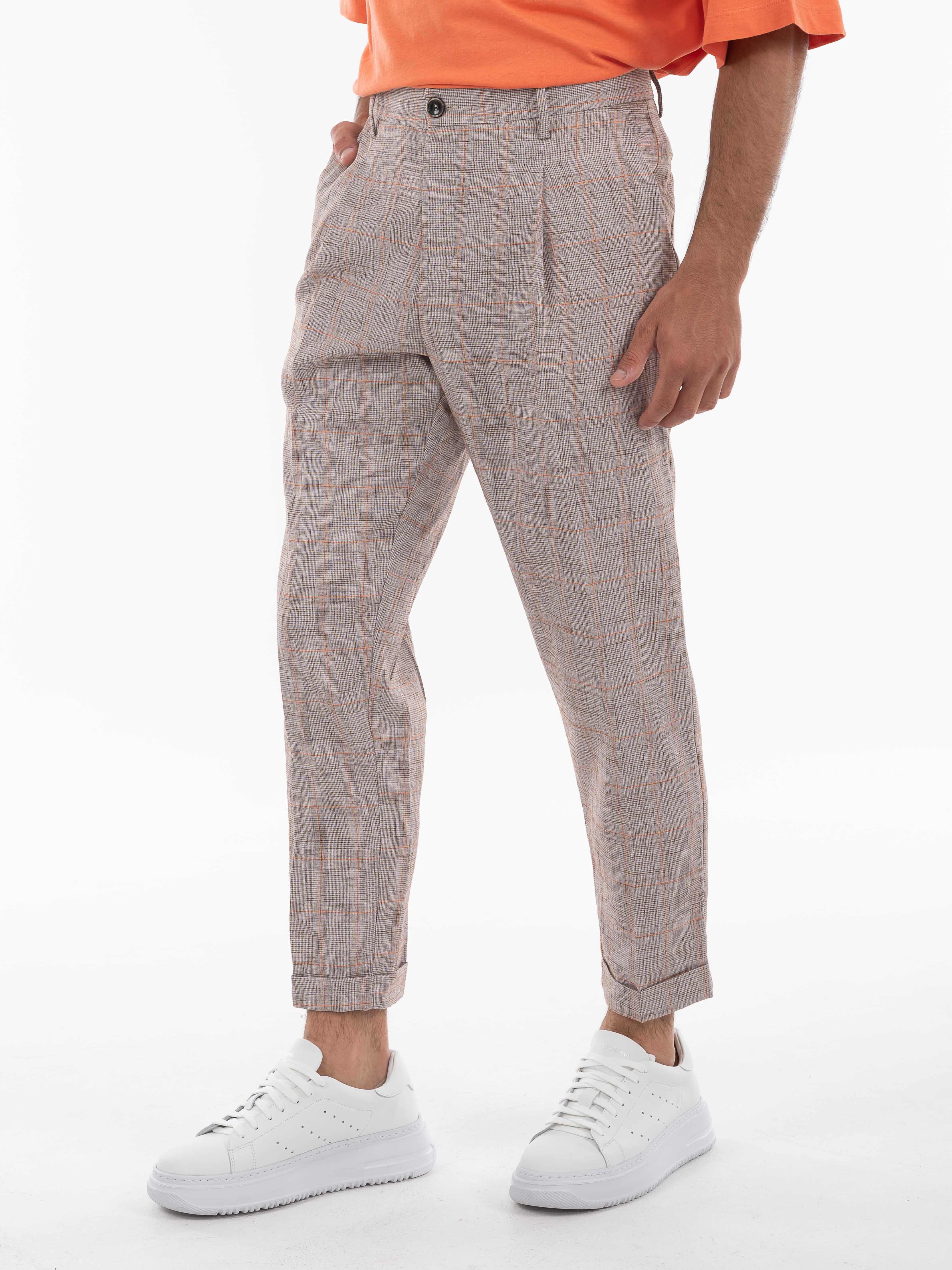 Χαρακτηριστικά: >: Παντελόνι καρό σε regular fit γραμμή με πιέτα. 70% polyester 25% viscosw 5% elastane
