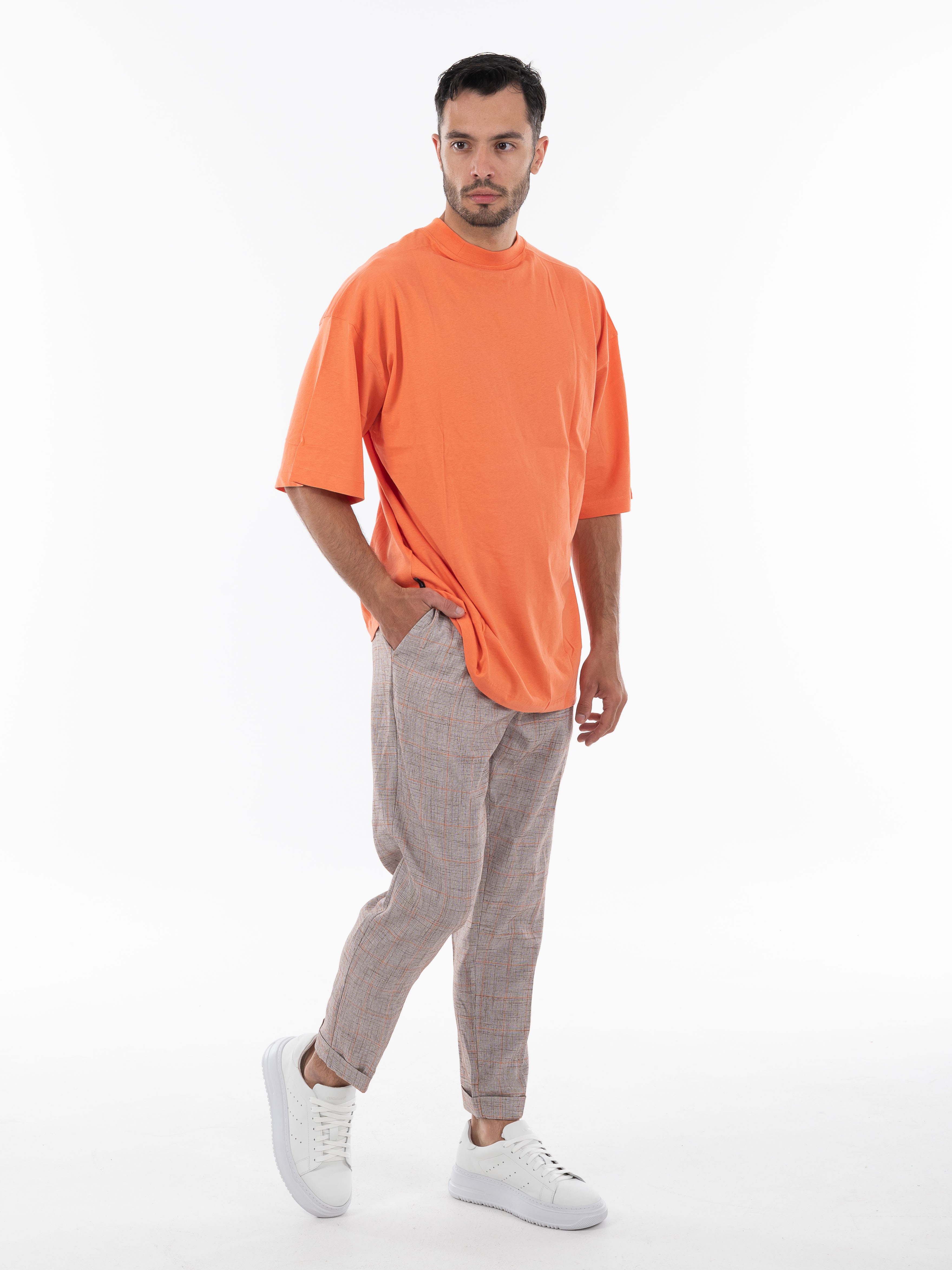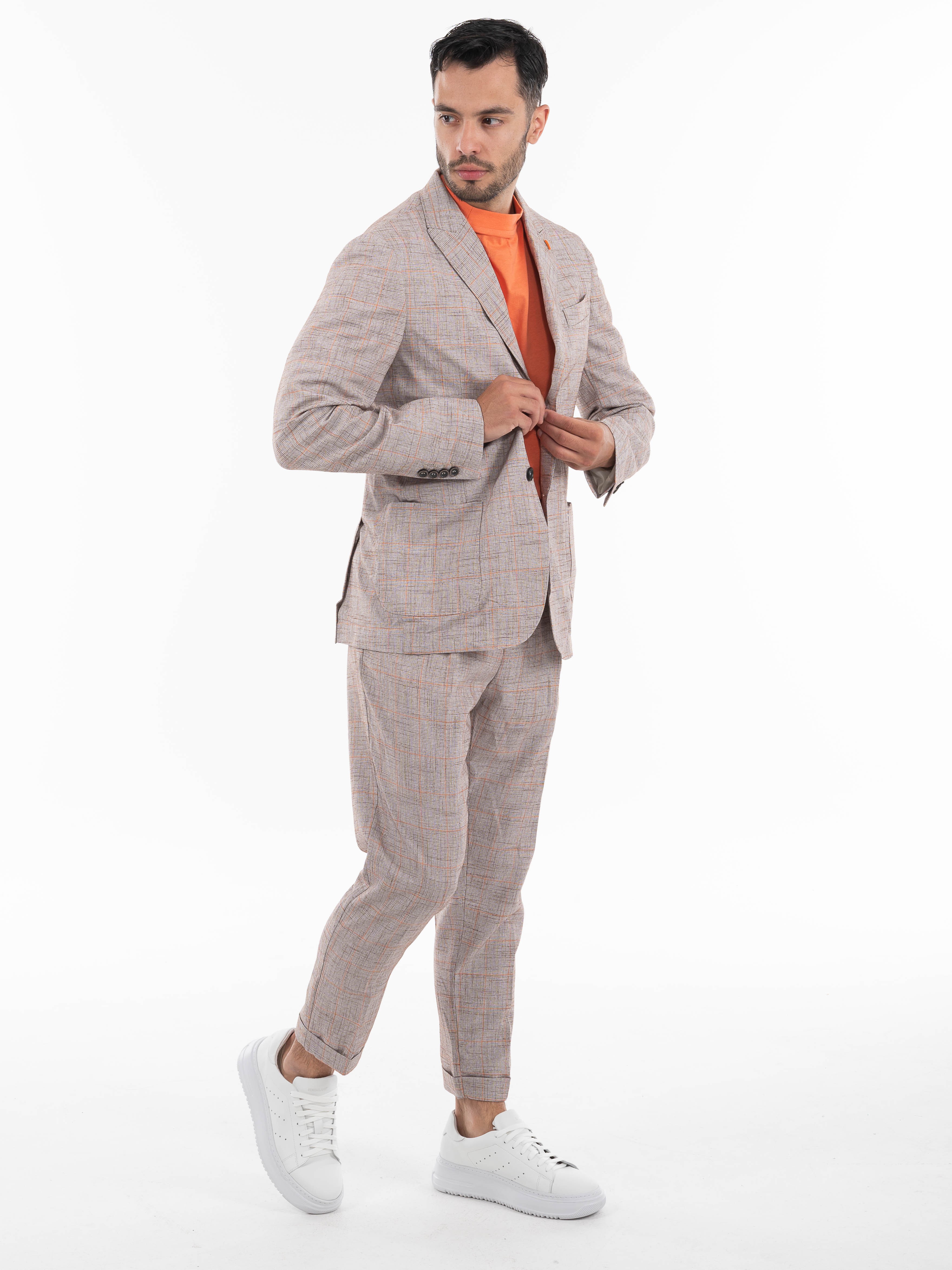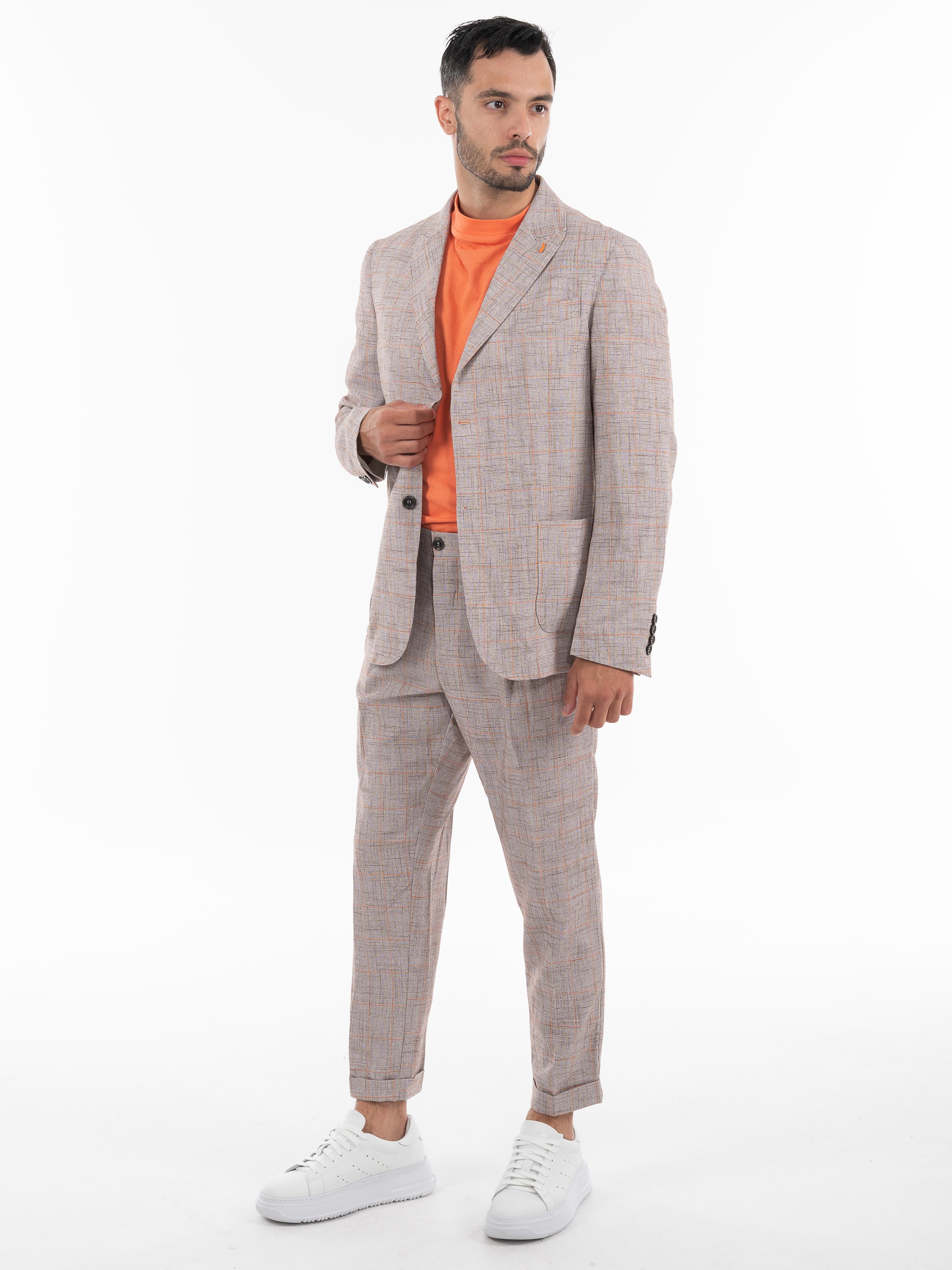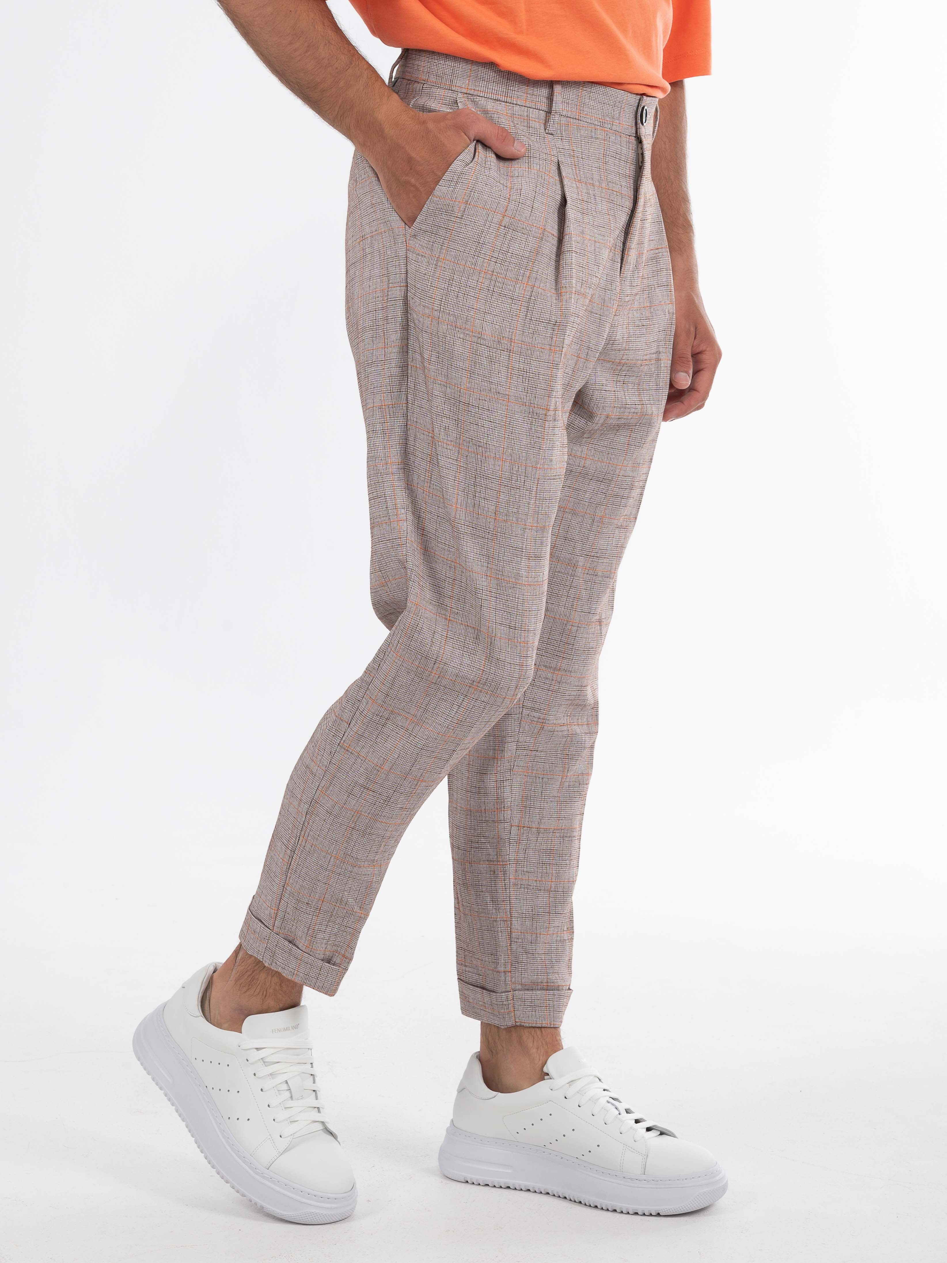 Χαρακτηριστικά: >: Παντελόνι καρό σε regular fit γραμμή με πιέτα. 70% polyester 25% viscosw 5% elastane