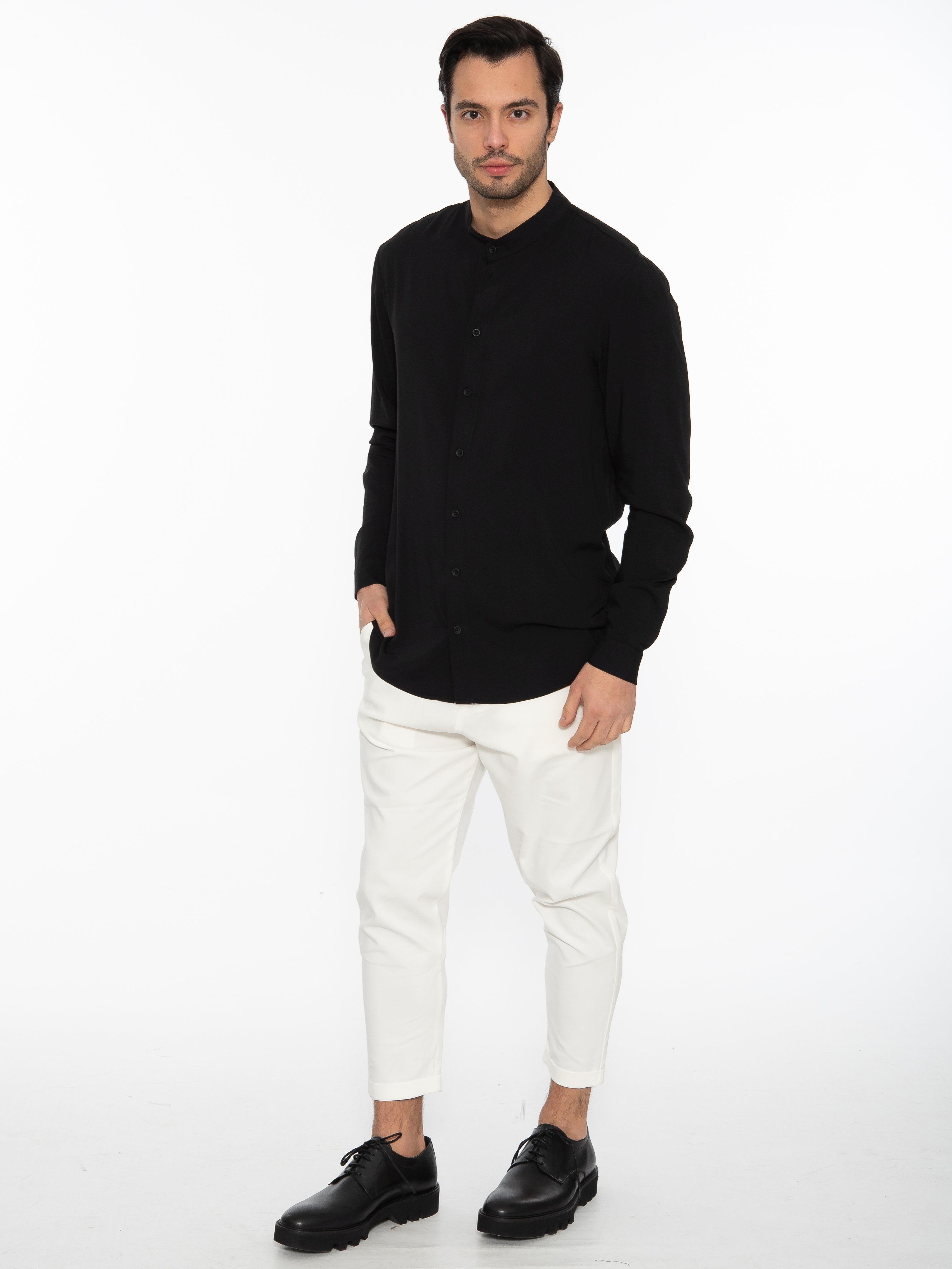 19 ATHENS Πουκάμισο mao K22-1004 Μαύρο