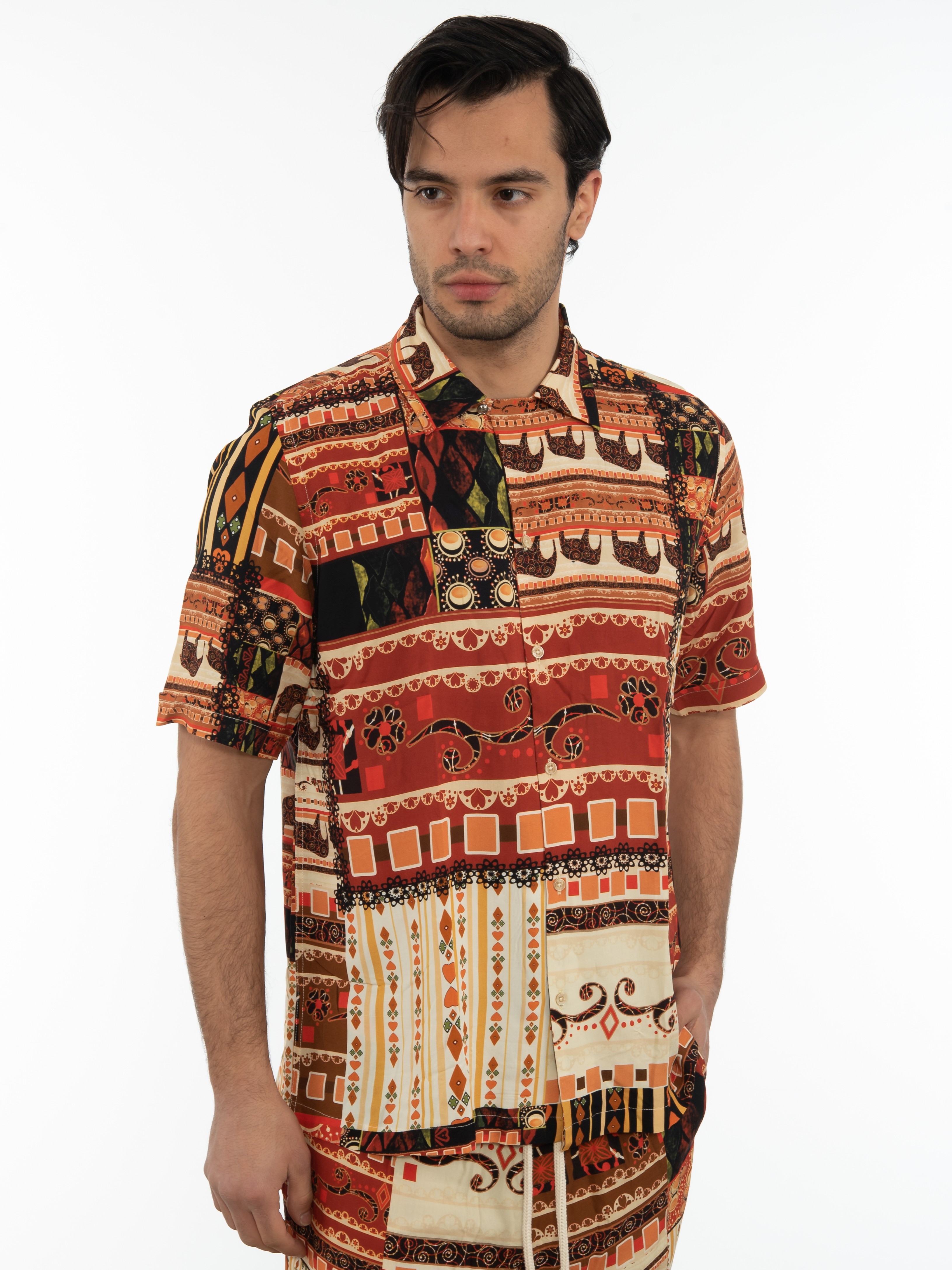 Χαρακτηριστικά: Εμπριμέ Κοντομάνικο Πουκάμισο σε regular fit γραμμή. 100% viscose