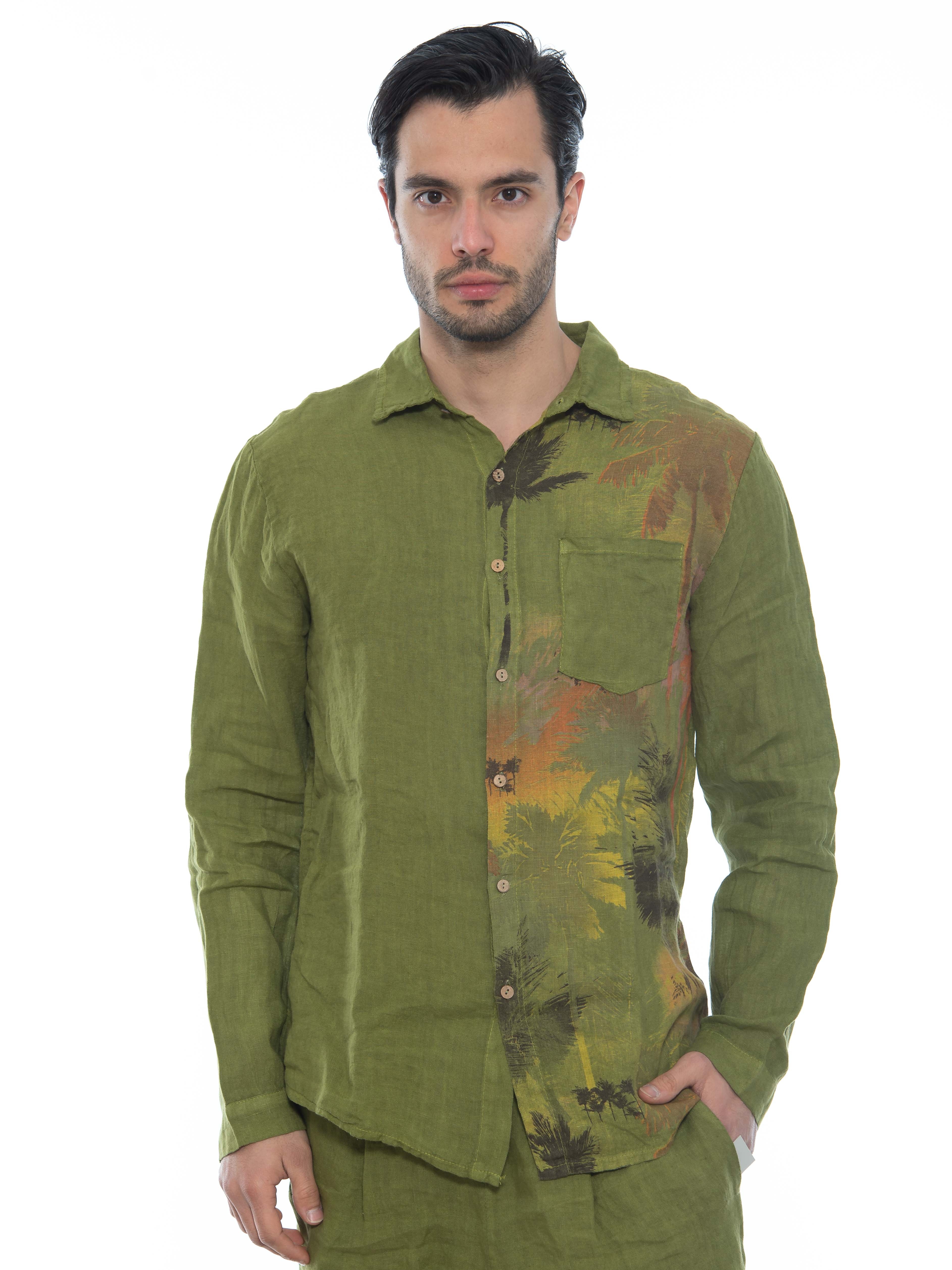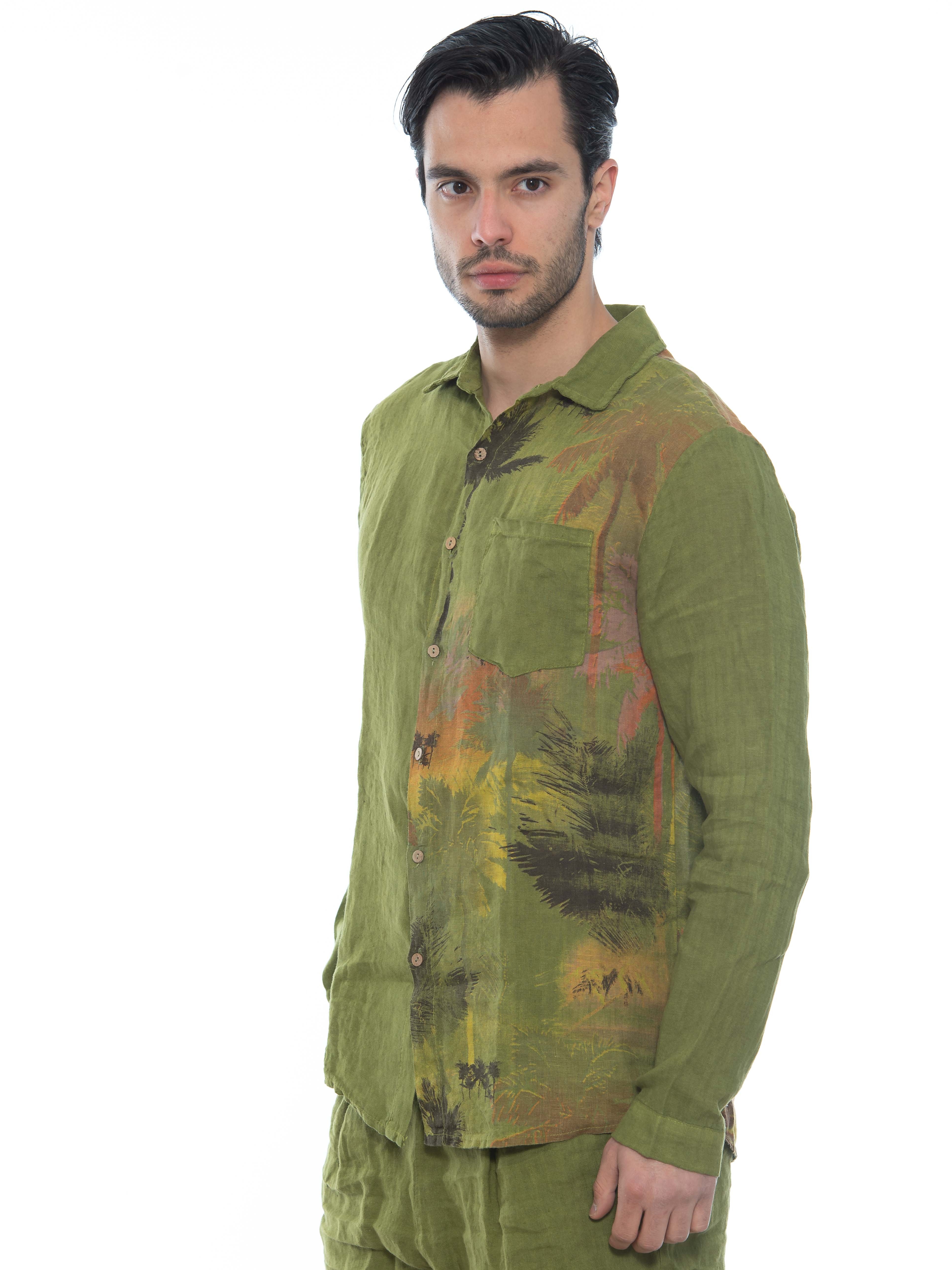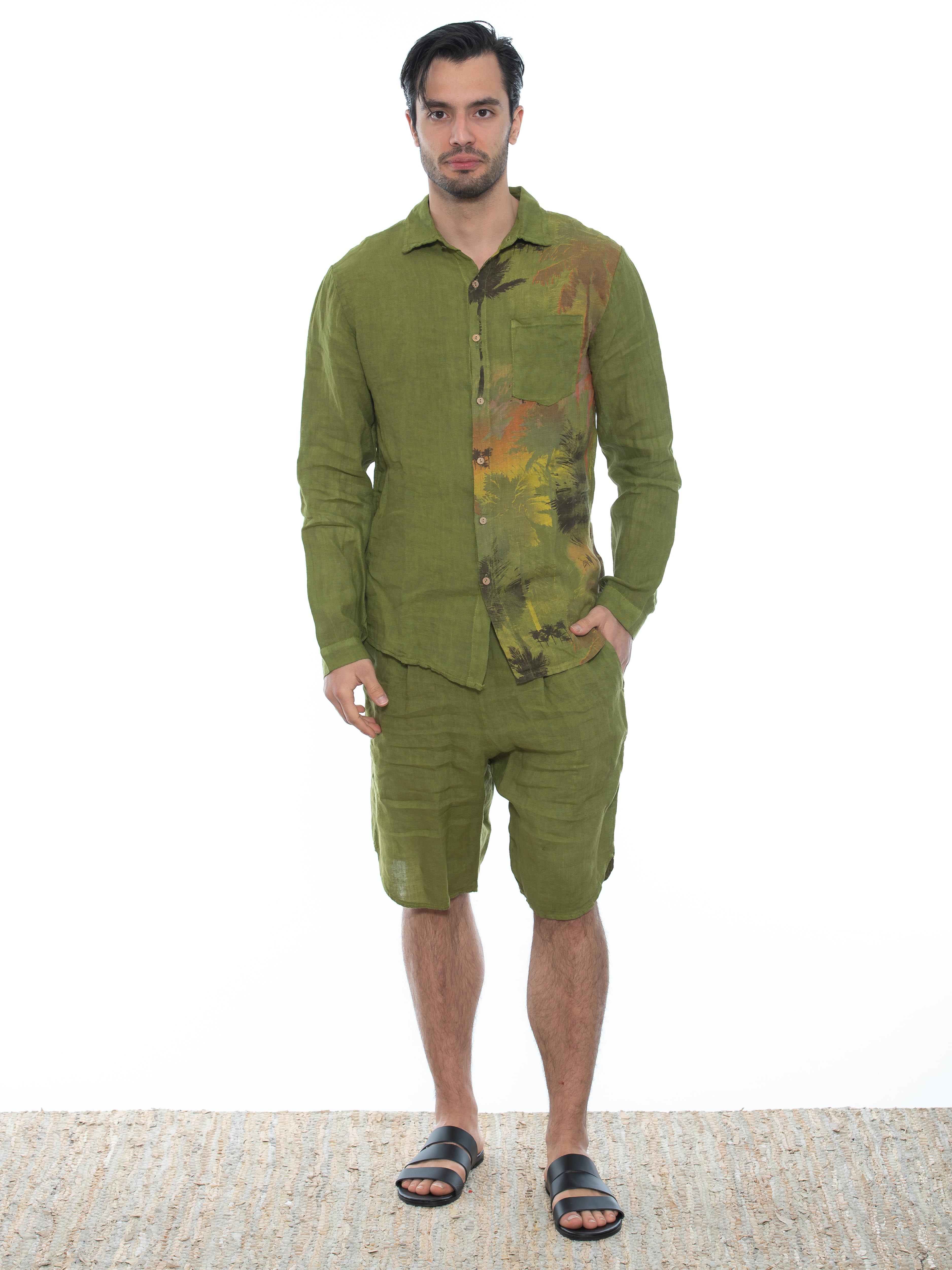 Χαρακτηριστικά: Πουκάμισο λινό σε regular fit γραμμή με τσεπάκι στο στήθος και μς στάμπα μεταξοτυπίας στην αριστερή πλευρά μπροστά και πίσω. 100% linen