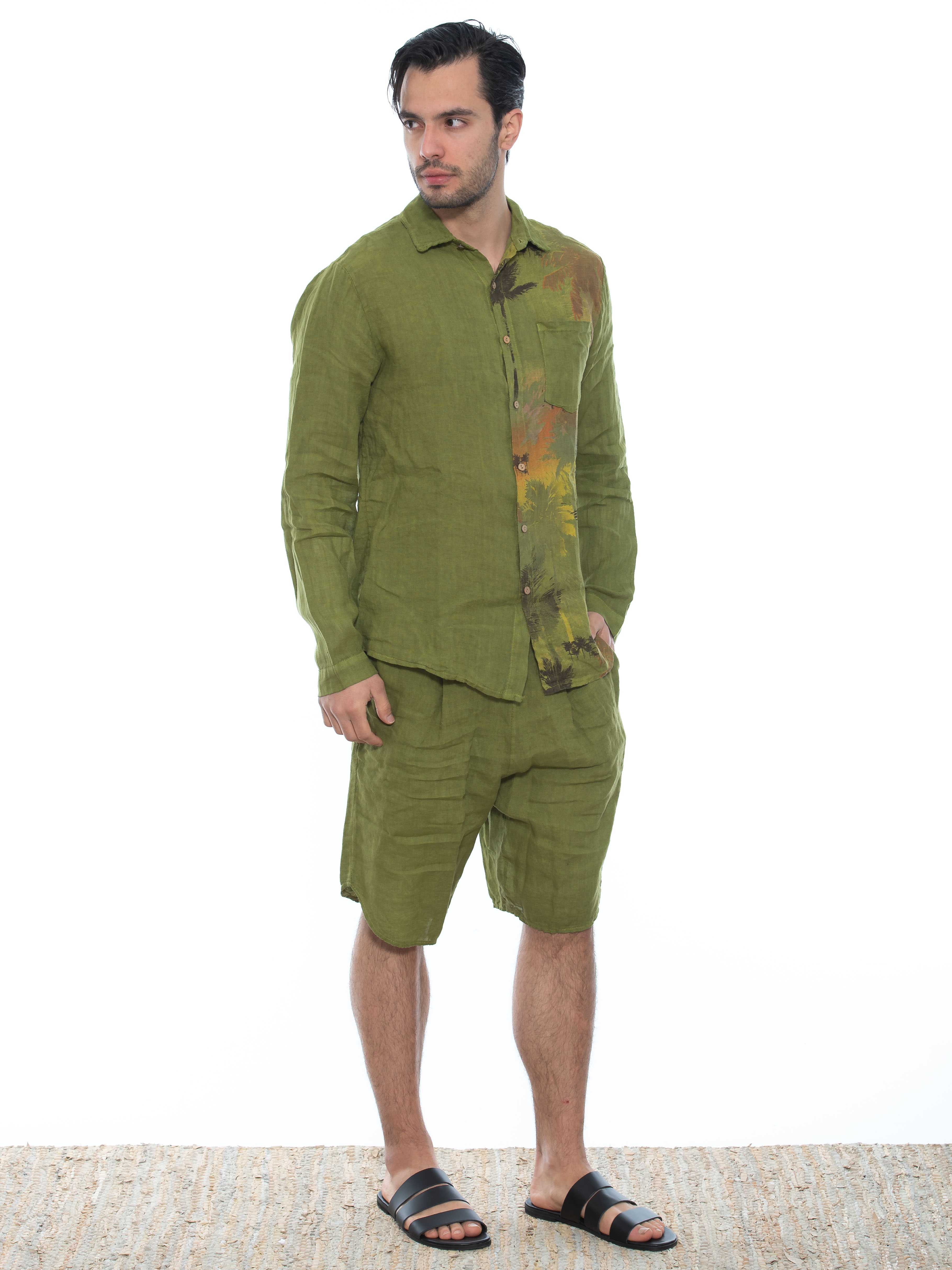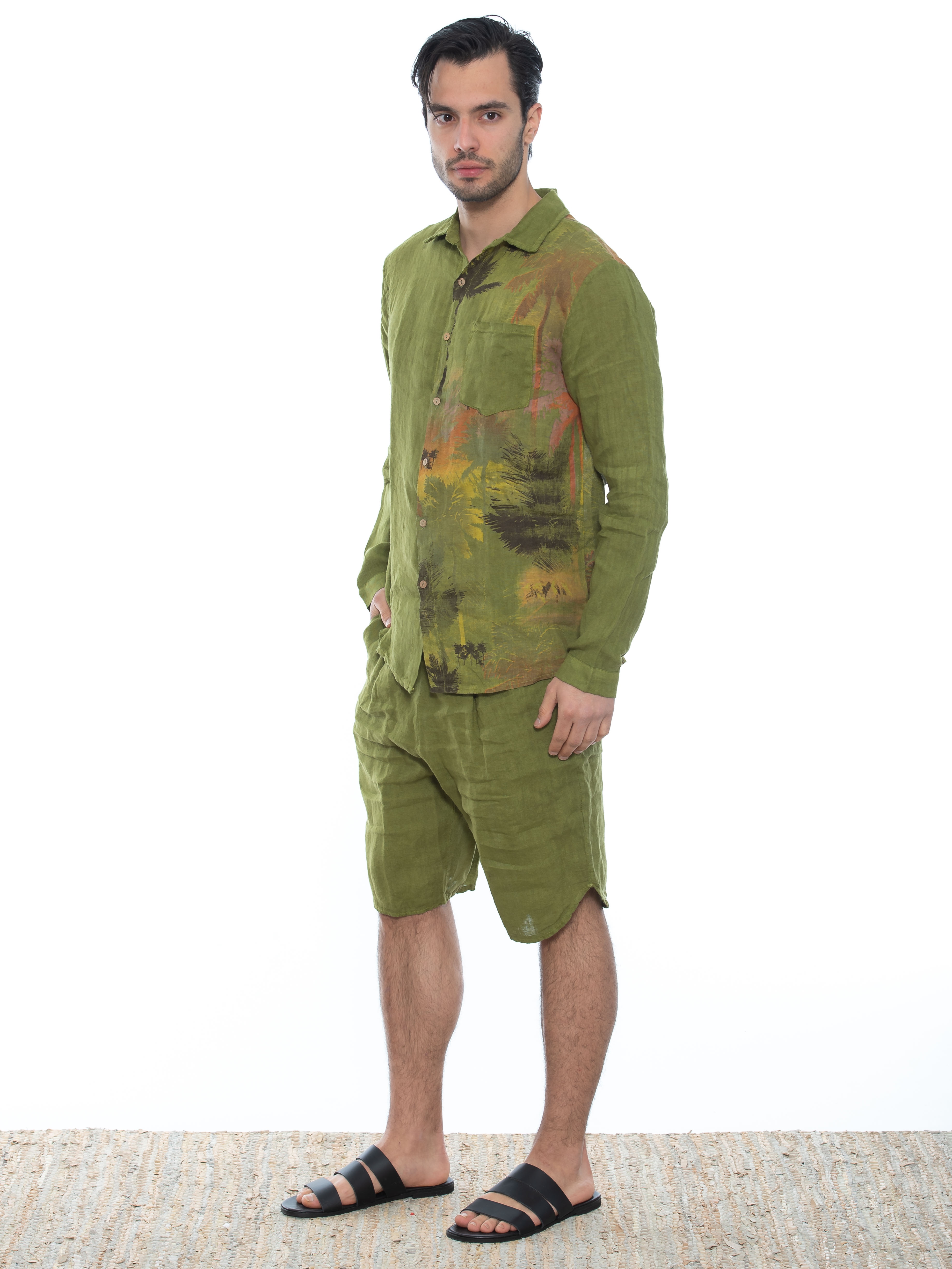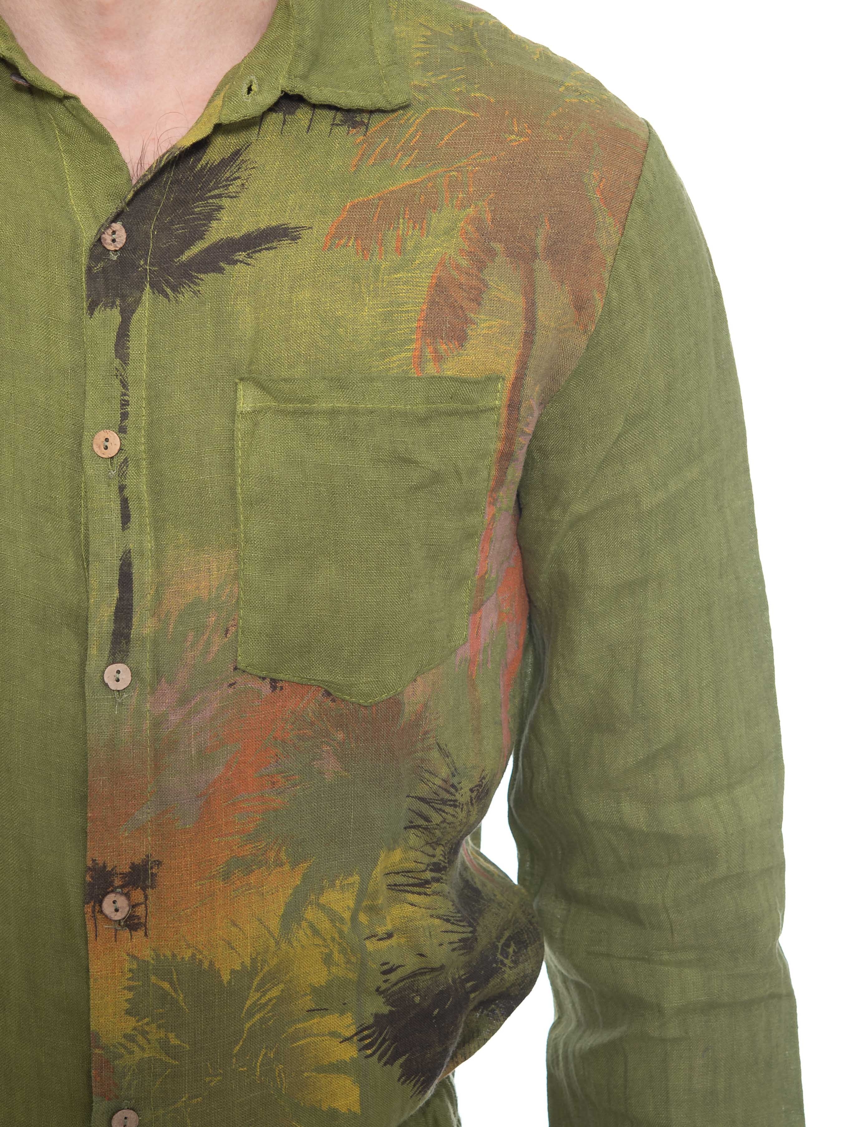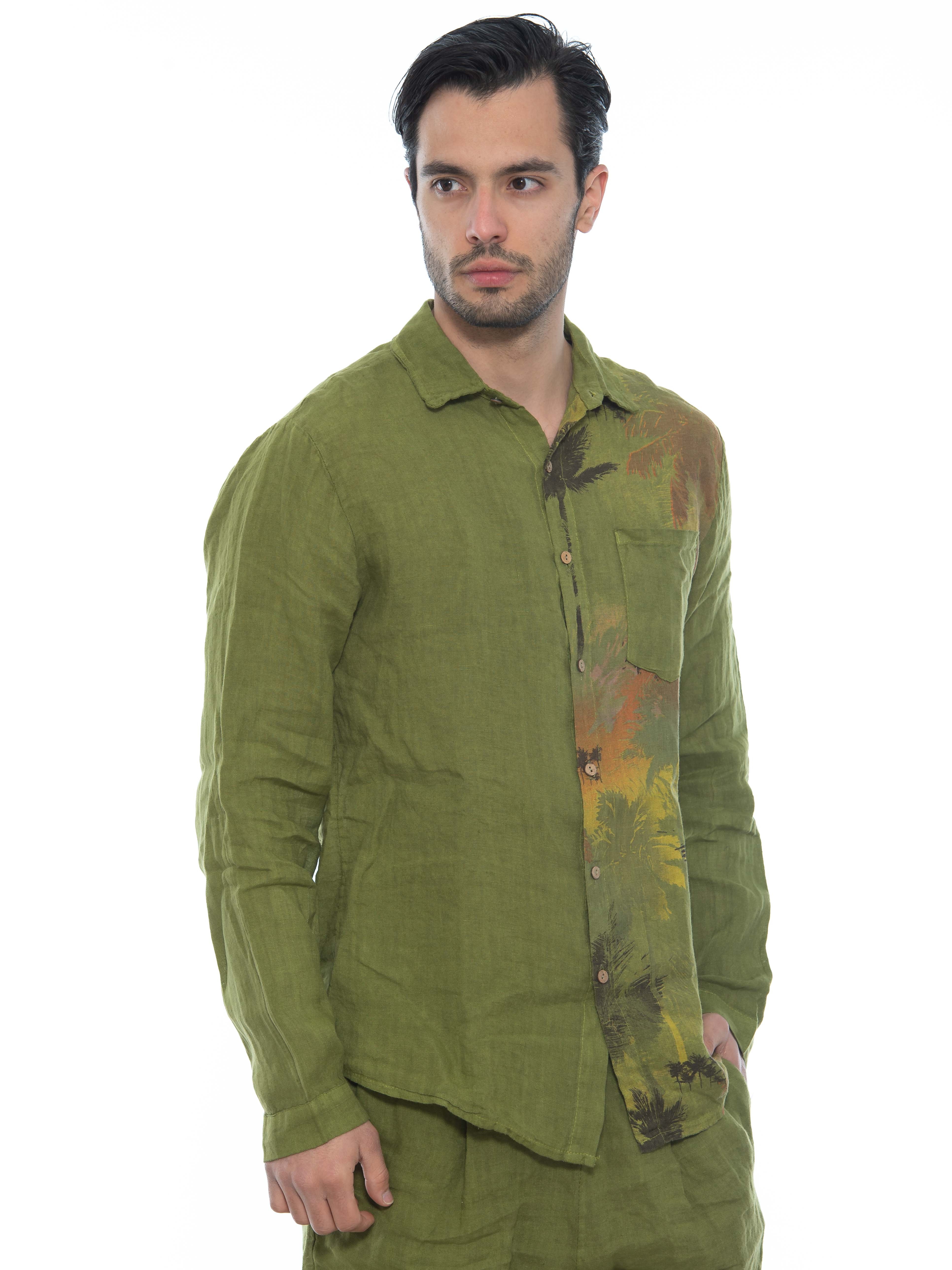 Χαρακτηριστικά: Πουκάμισο λινό σε regular fit γραμμή με τσεπάκι στο στήθος και μς στάμπα μεταξοτυπίας στην αριστερή πλευρά μπροστά και πίσω. 100% linen