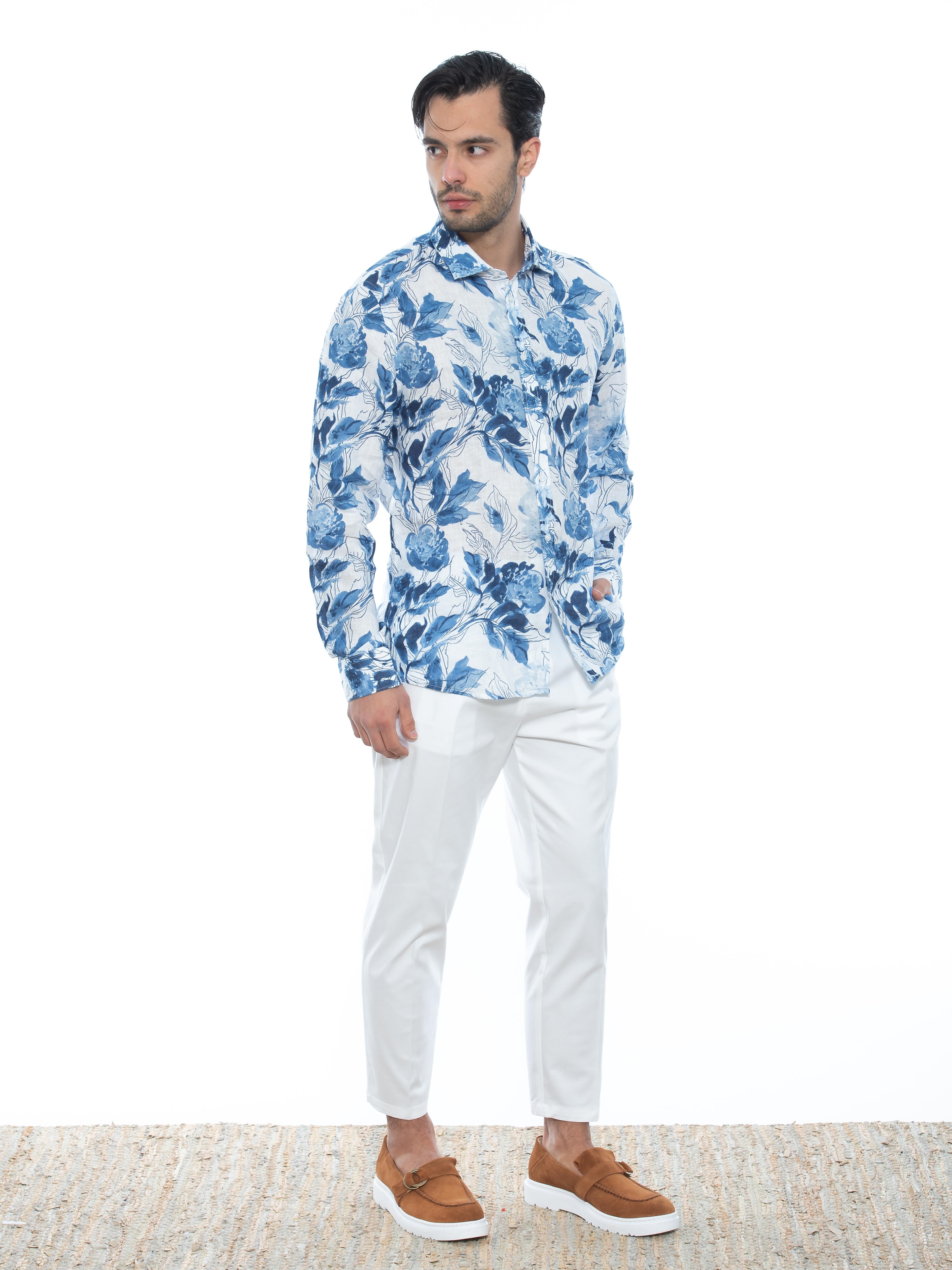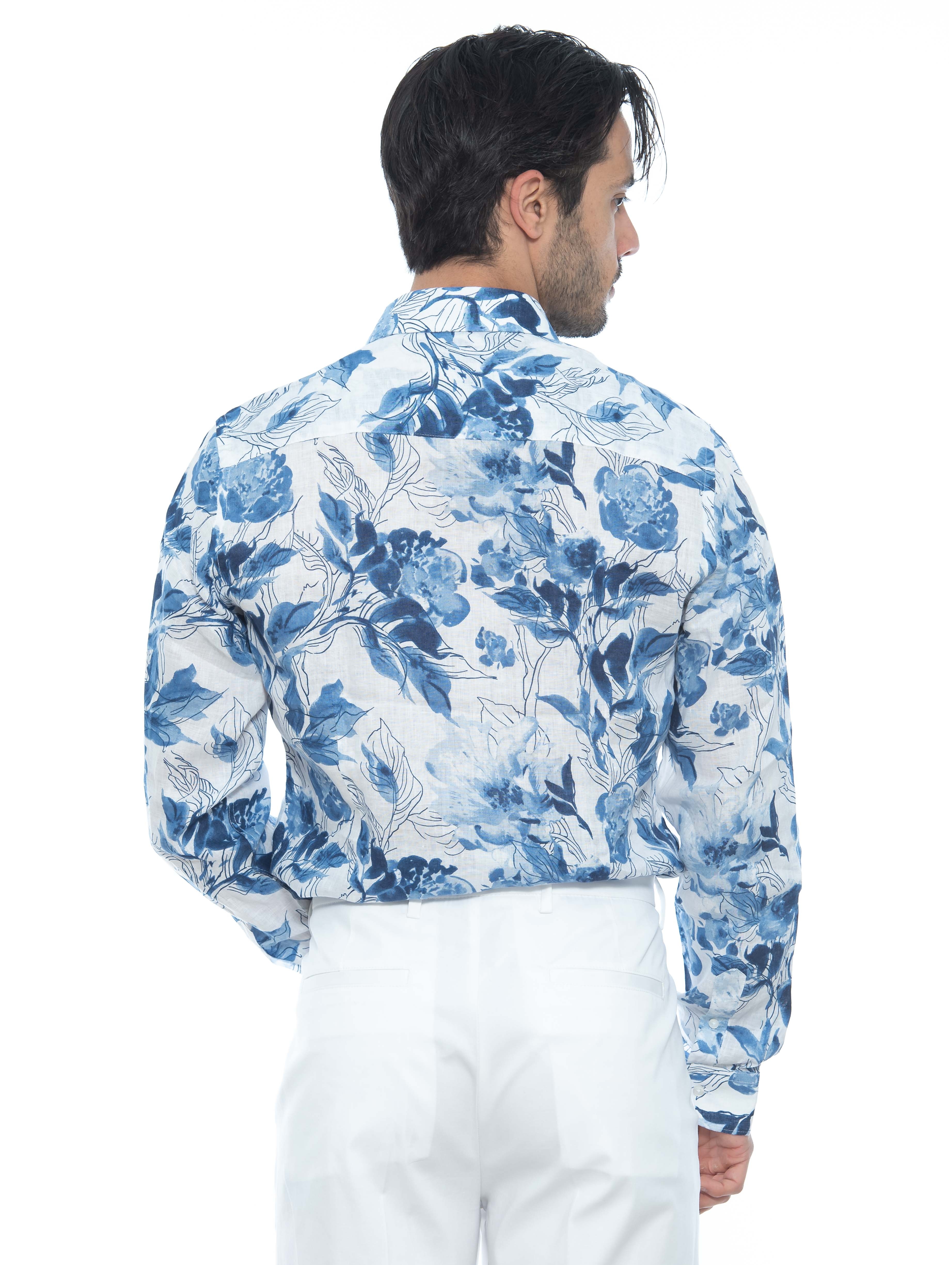 Χαρακτηριστικά: Εμπριμέ - Floral Πουκάμισο λινό σε slim fit γραμμή. 100% linen