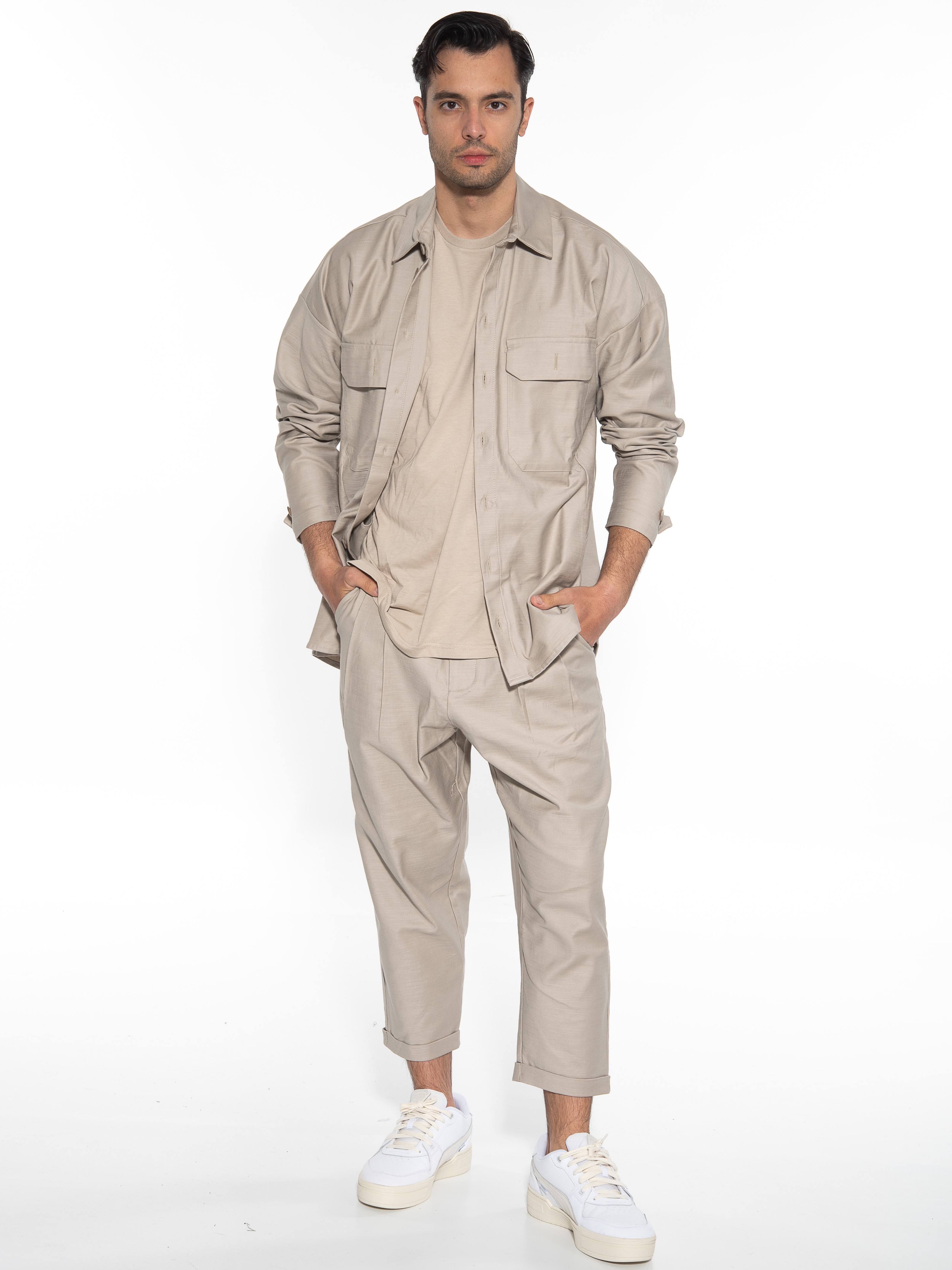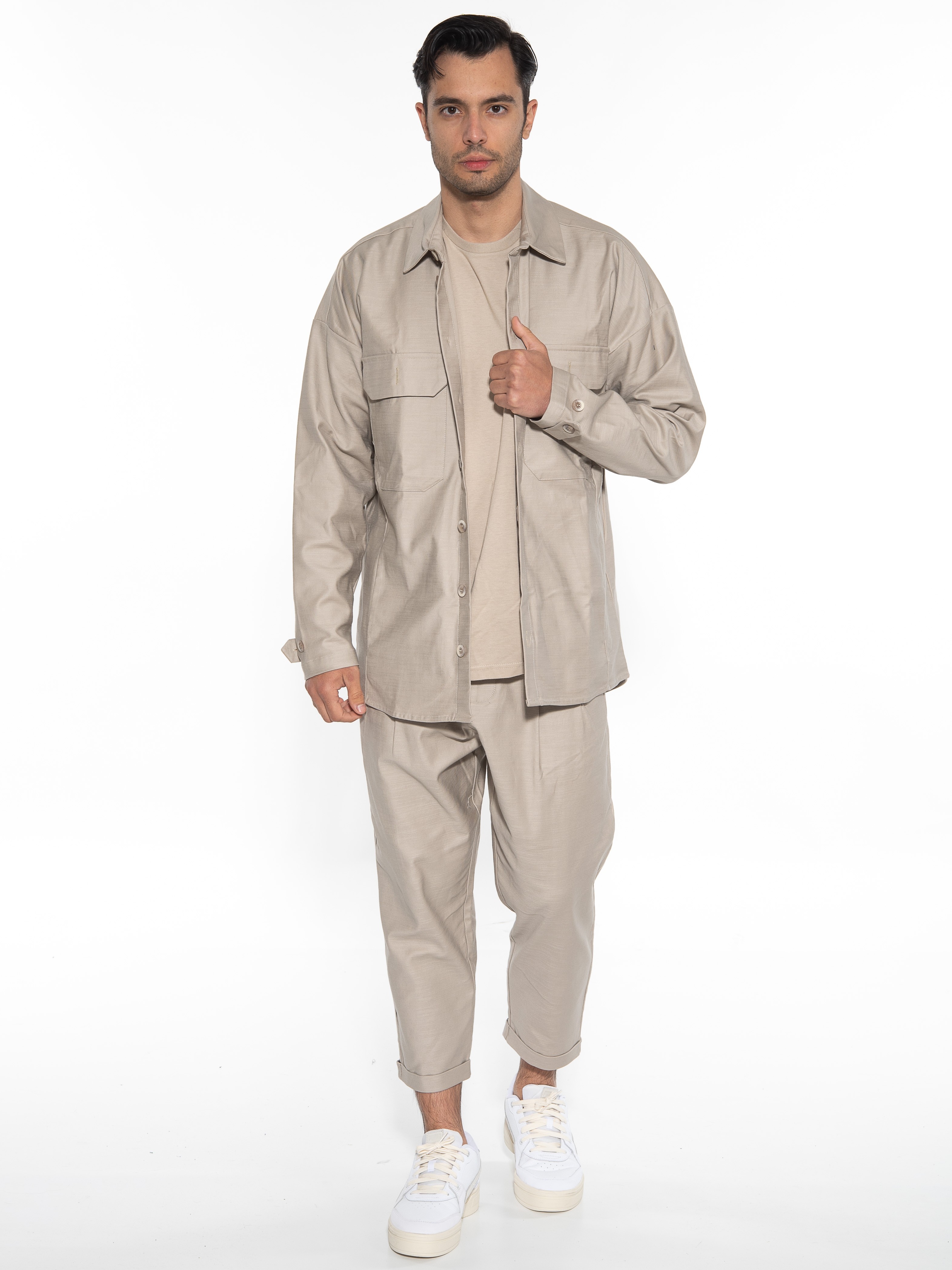 NINETEEN Πουκάμισο - Jacket K23-1014 Μπεζ - Καφέ