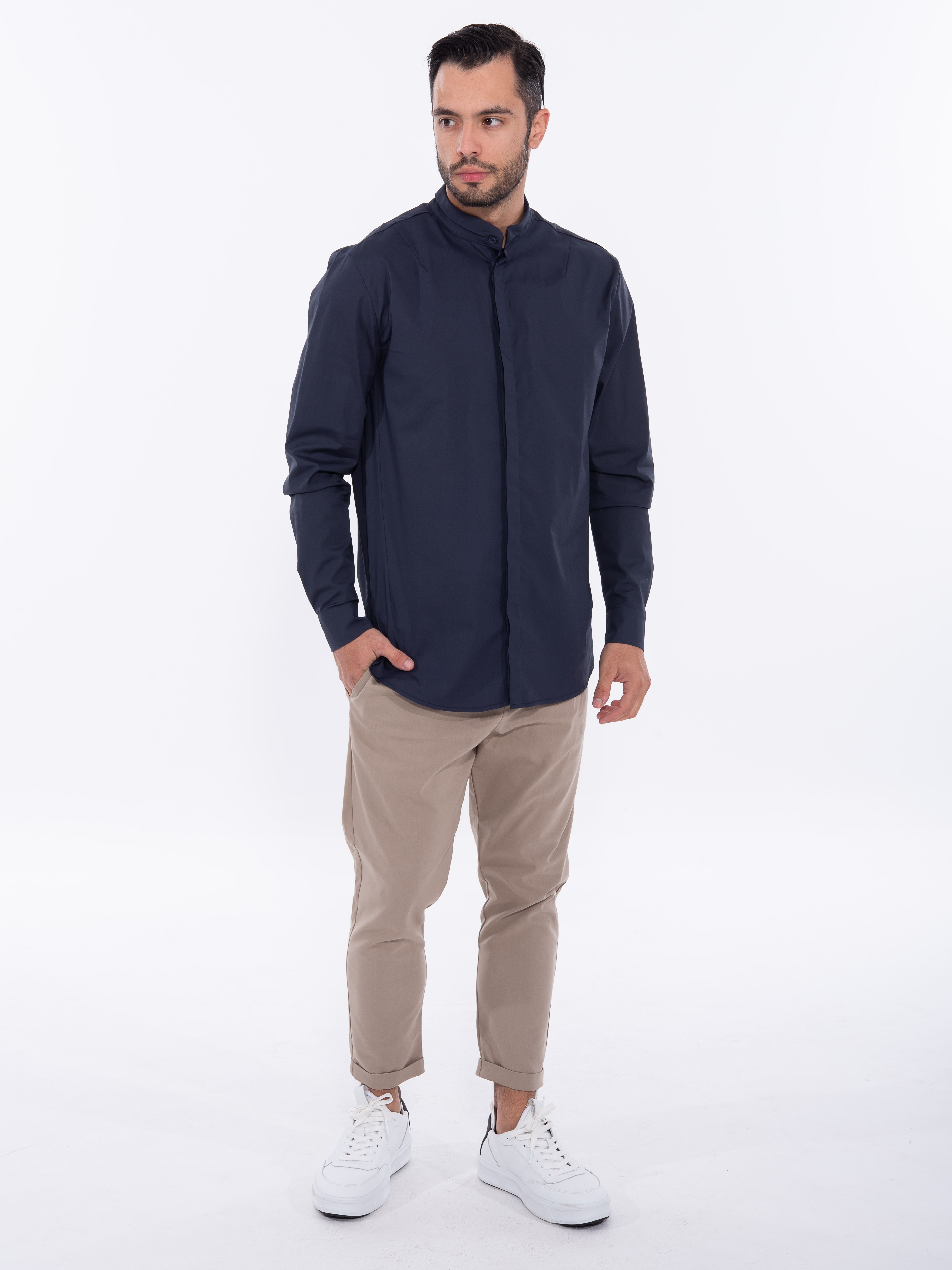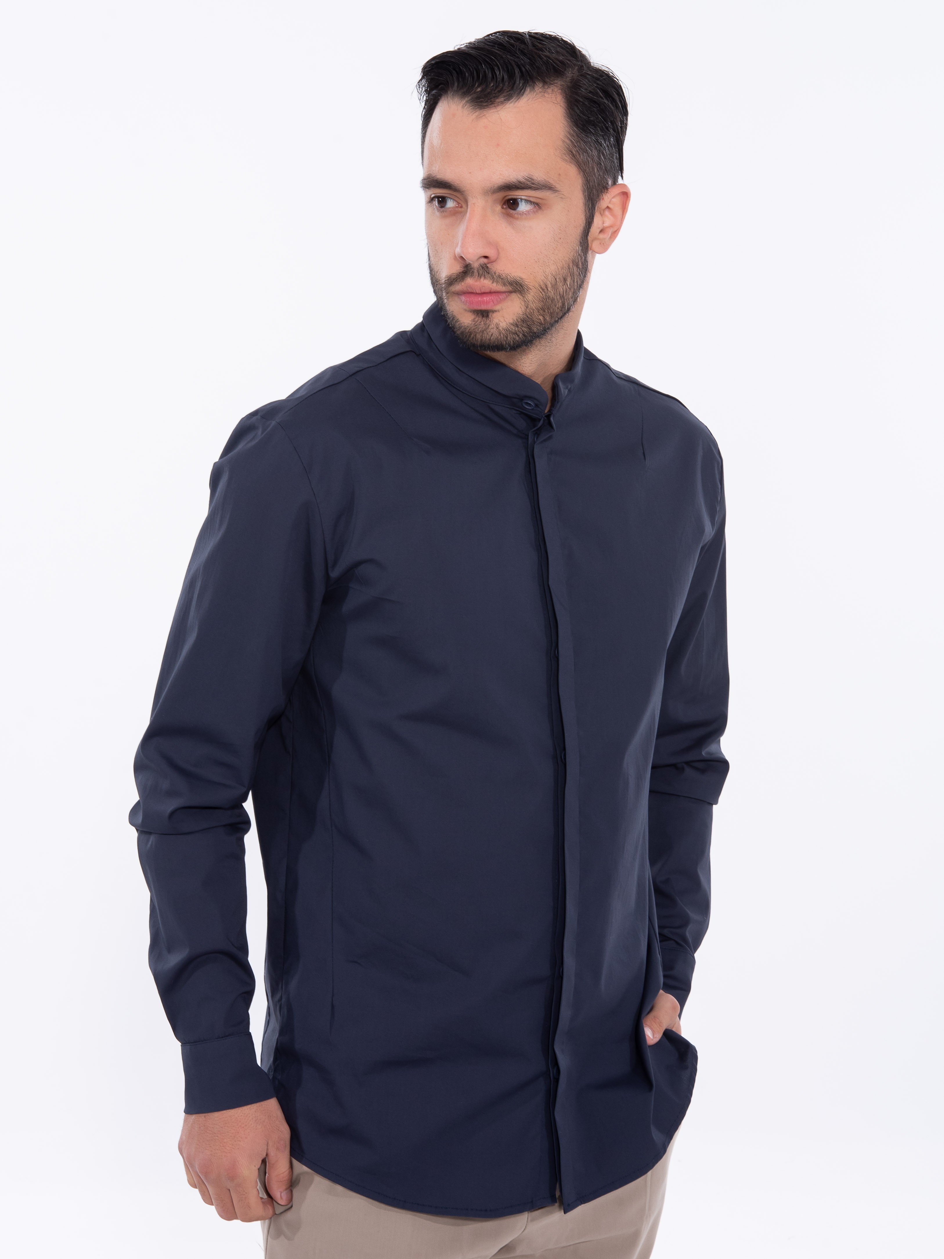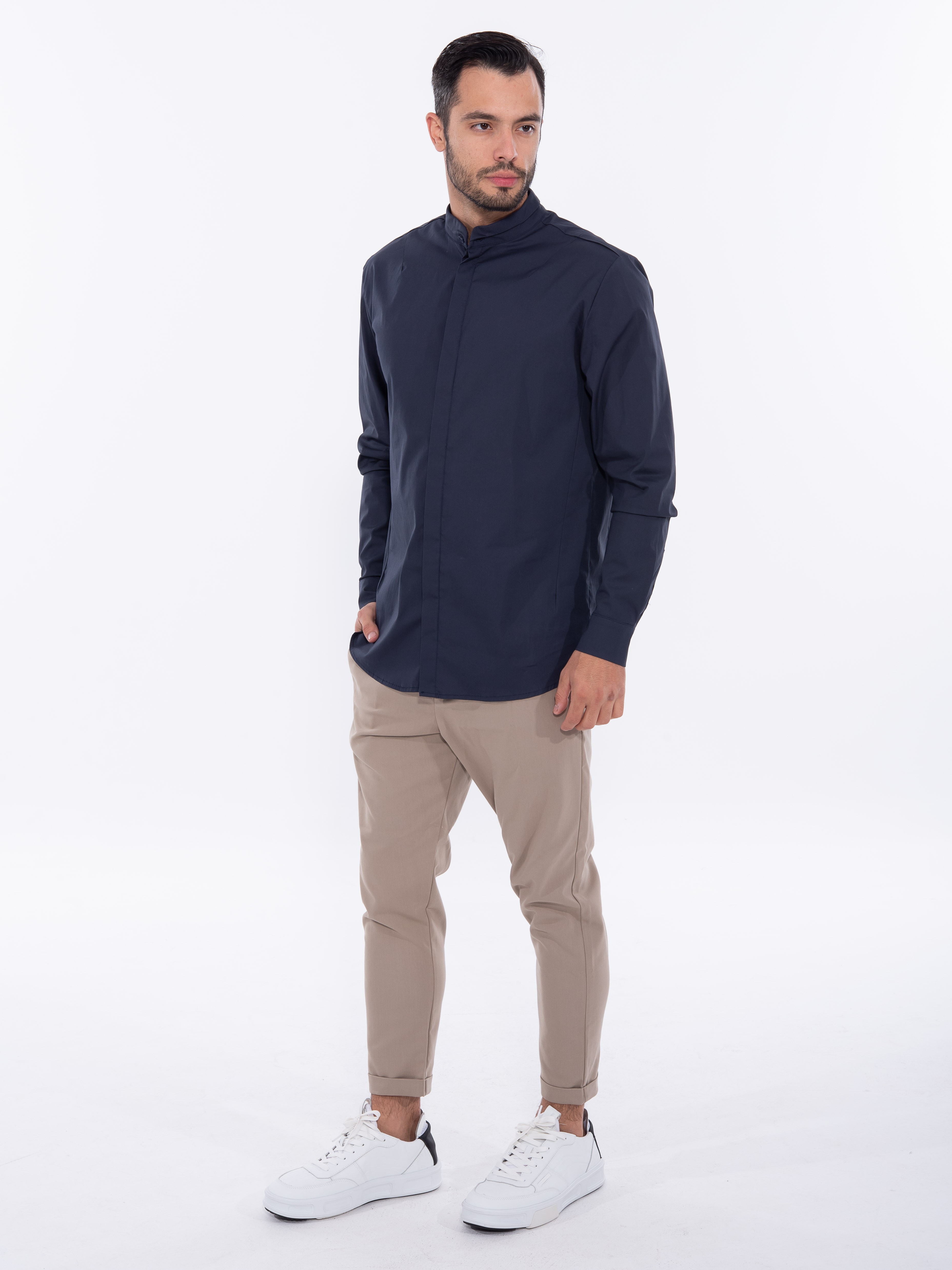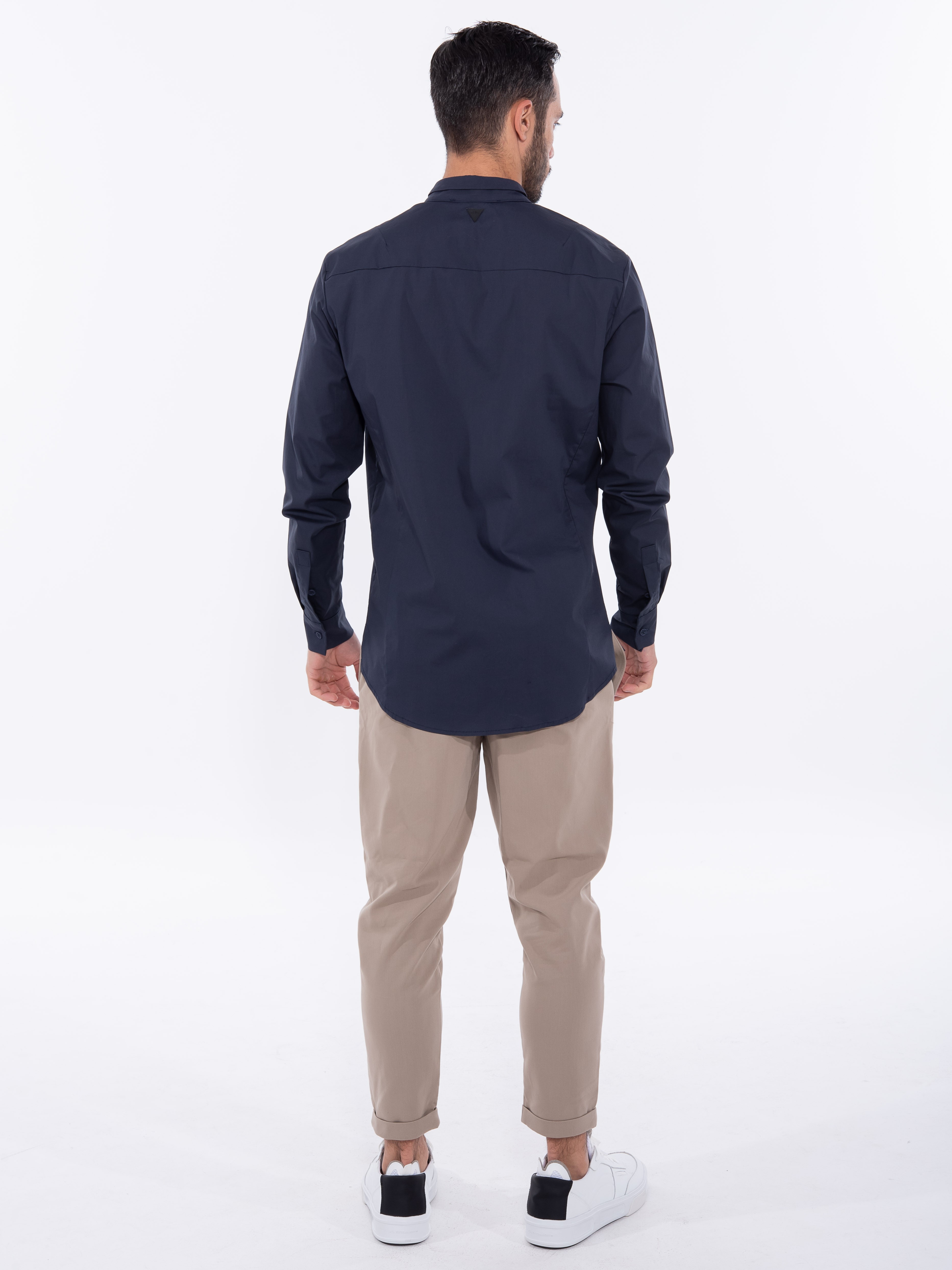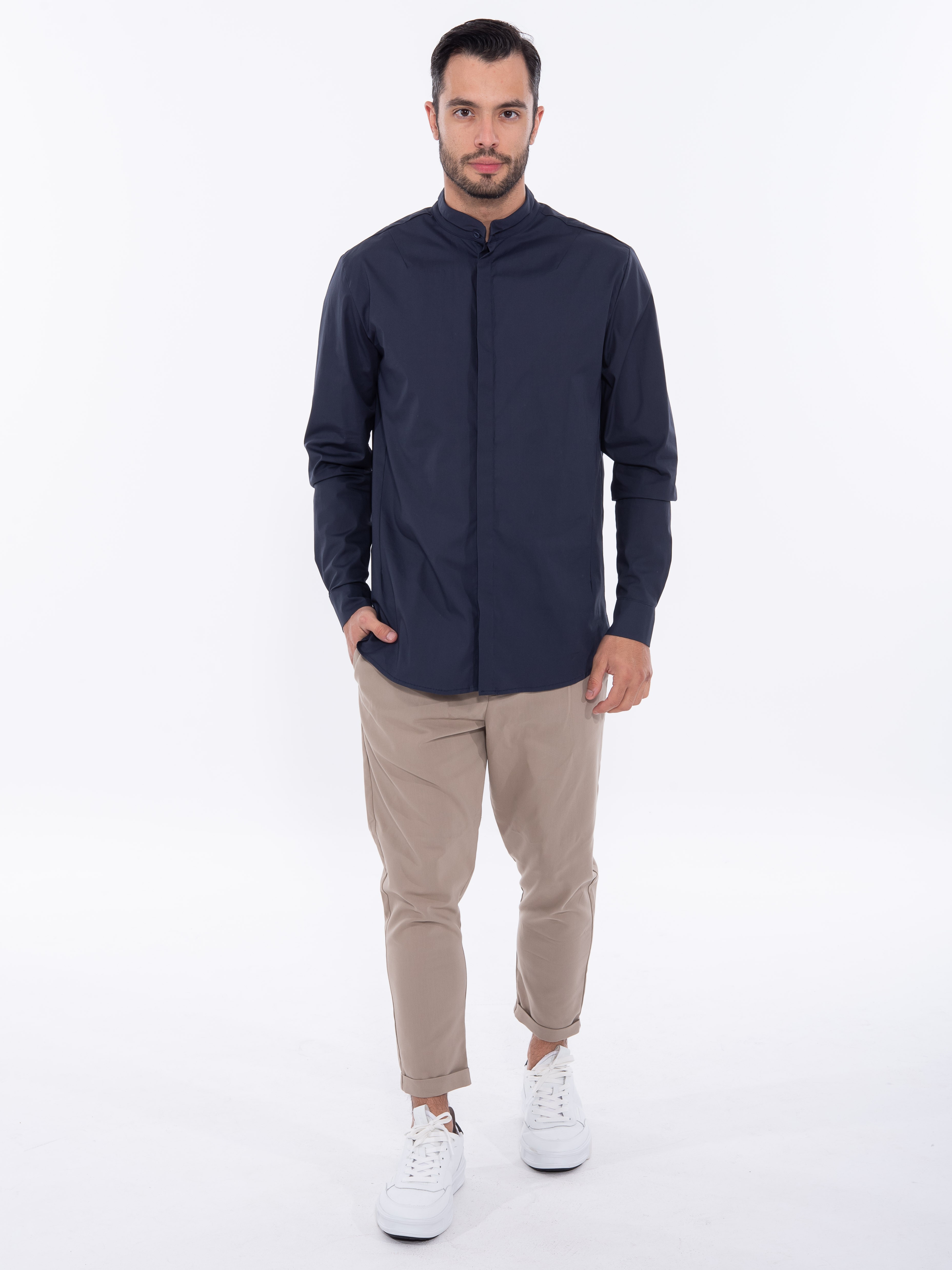 Χαρακτηριστικά: Πουκάμισο mao σε regular fit γραμμή με διπλό γιακά. 97% cotton 3% elastane