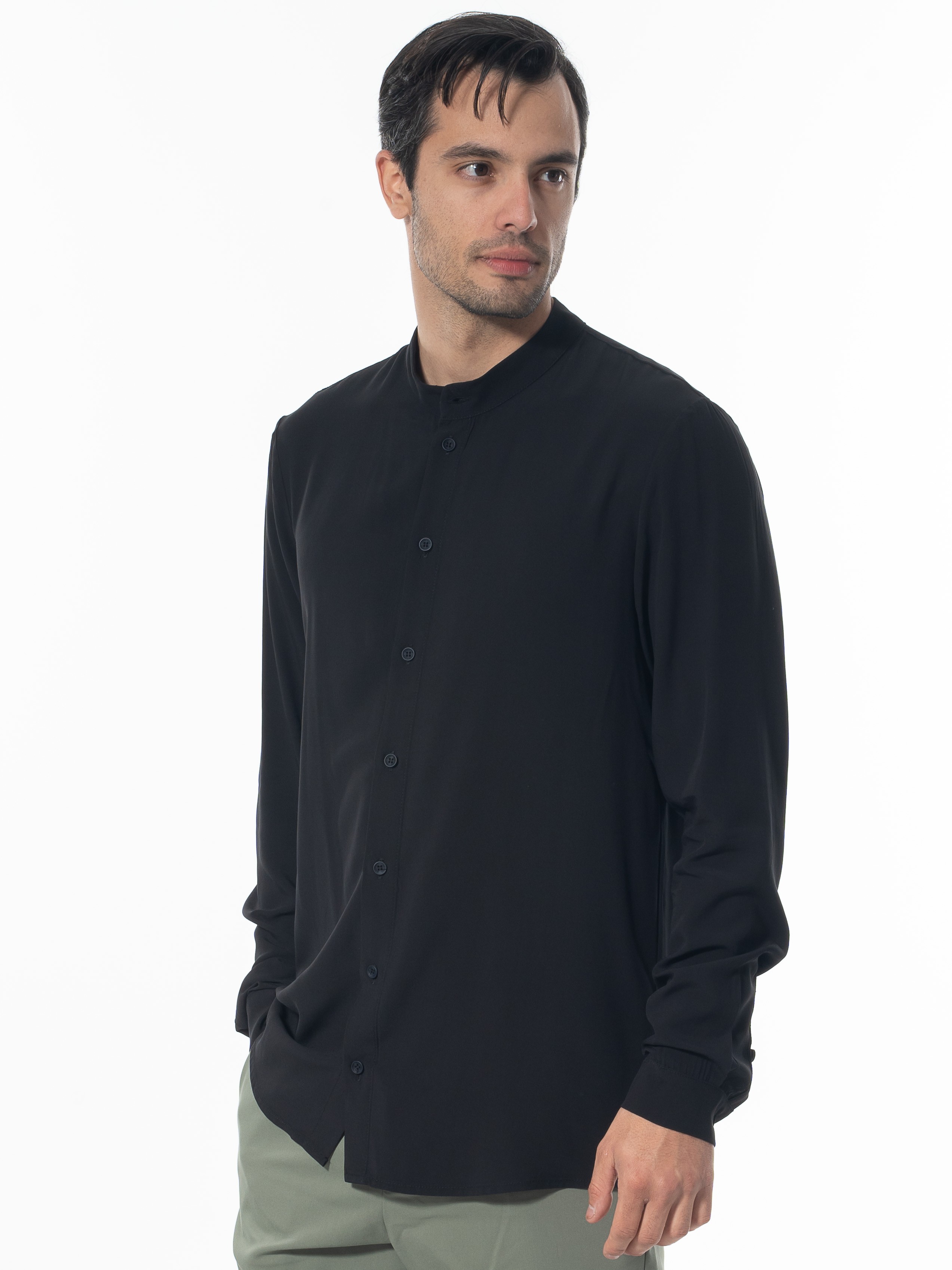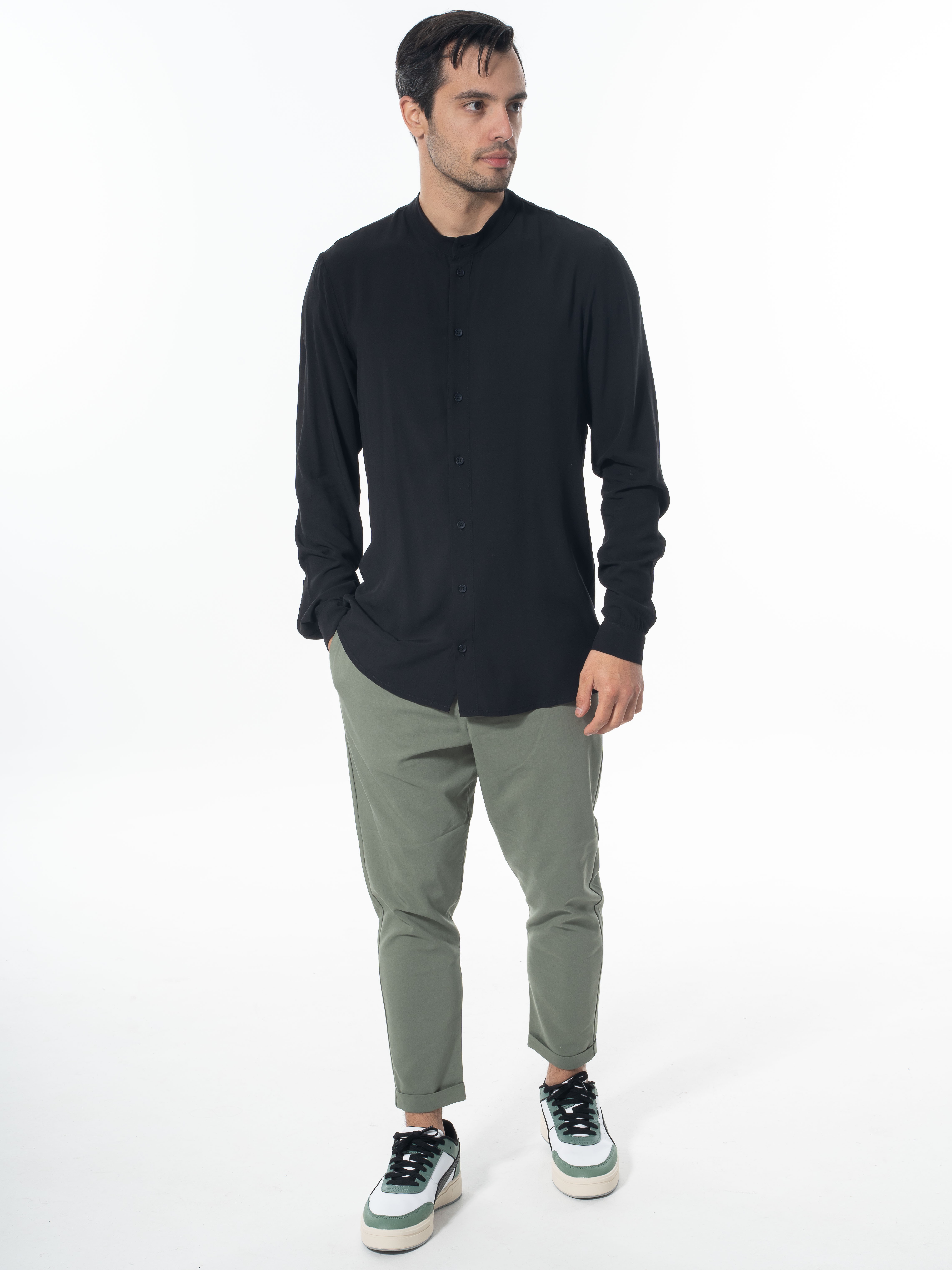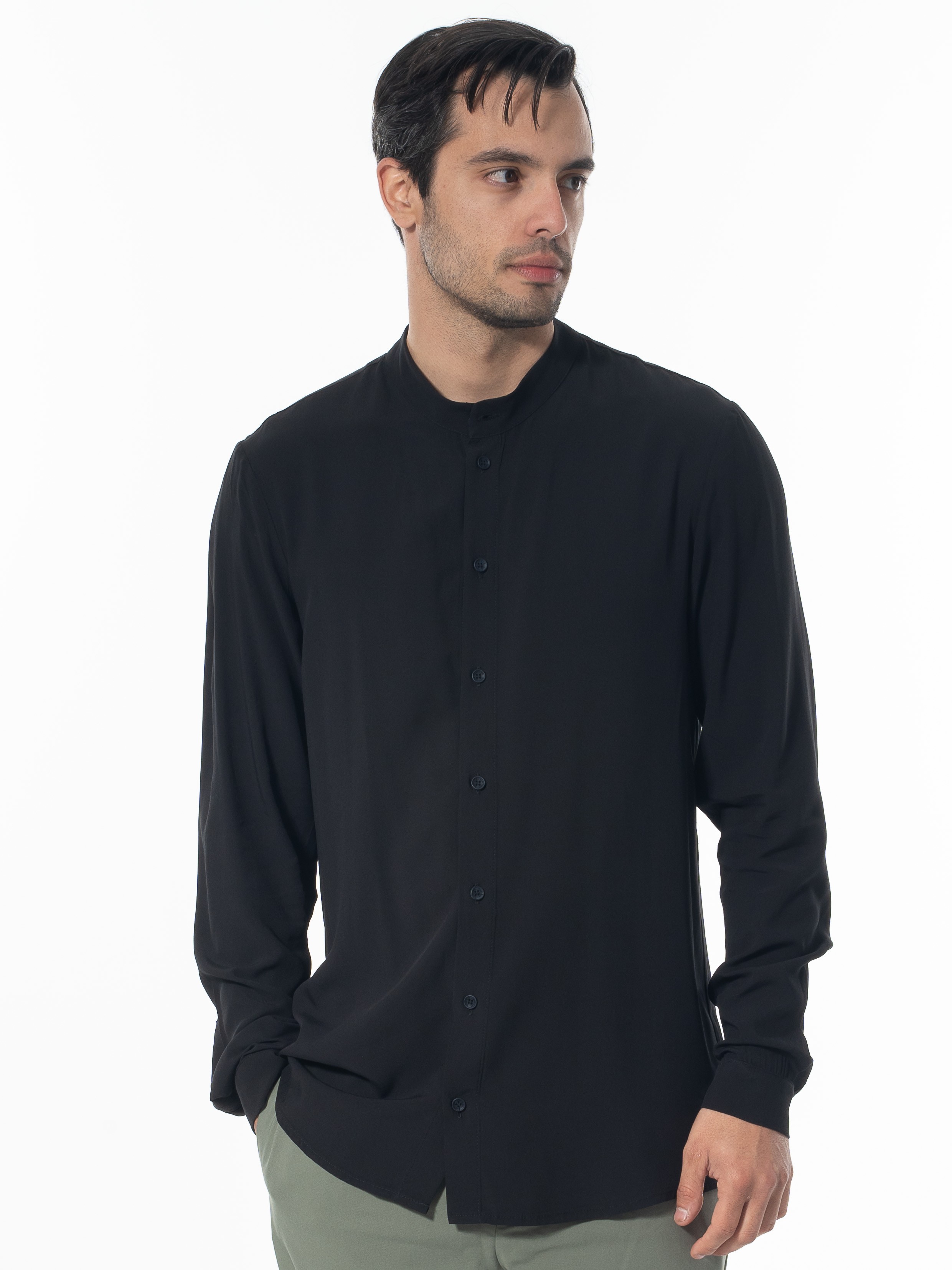NINETEEN Πουκάμισο mao K24-1048 Μαύρο