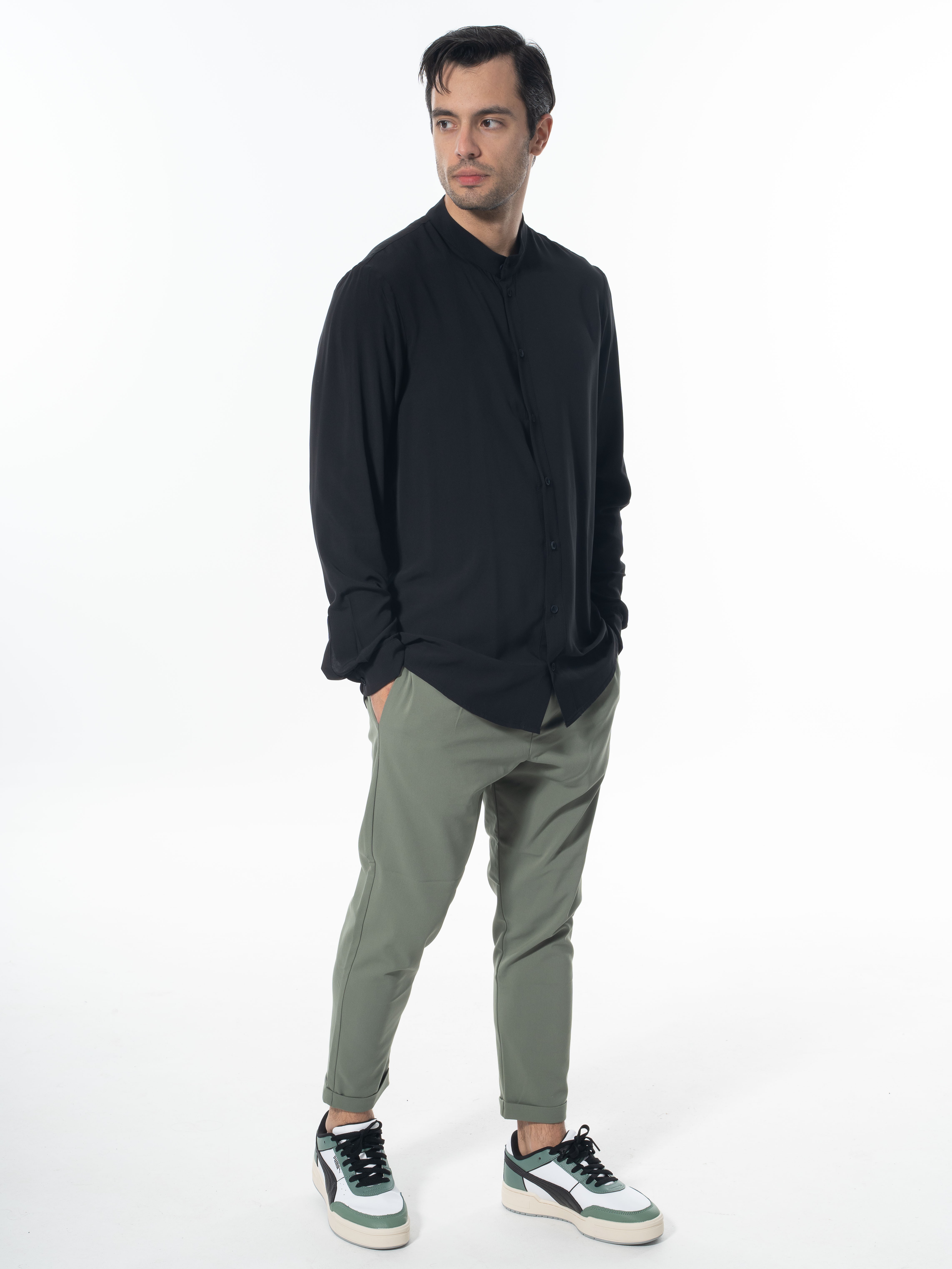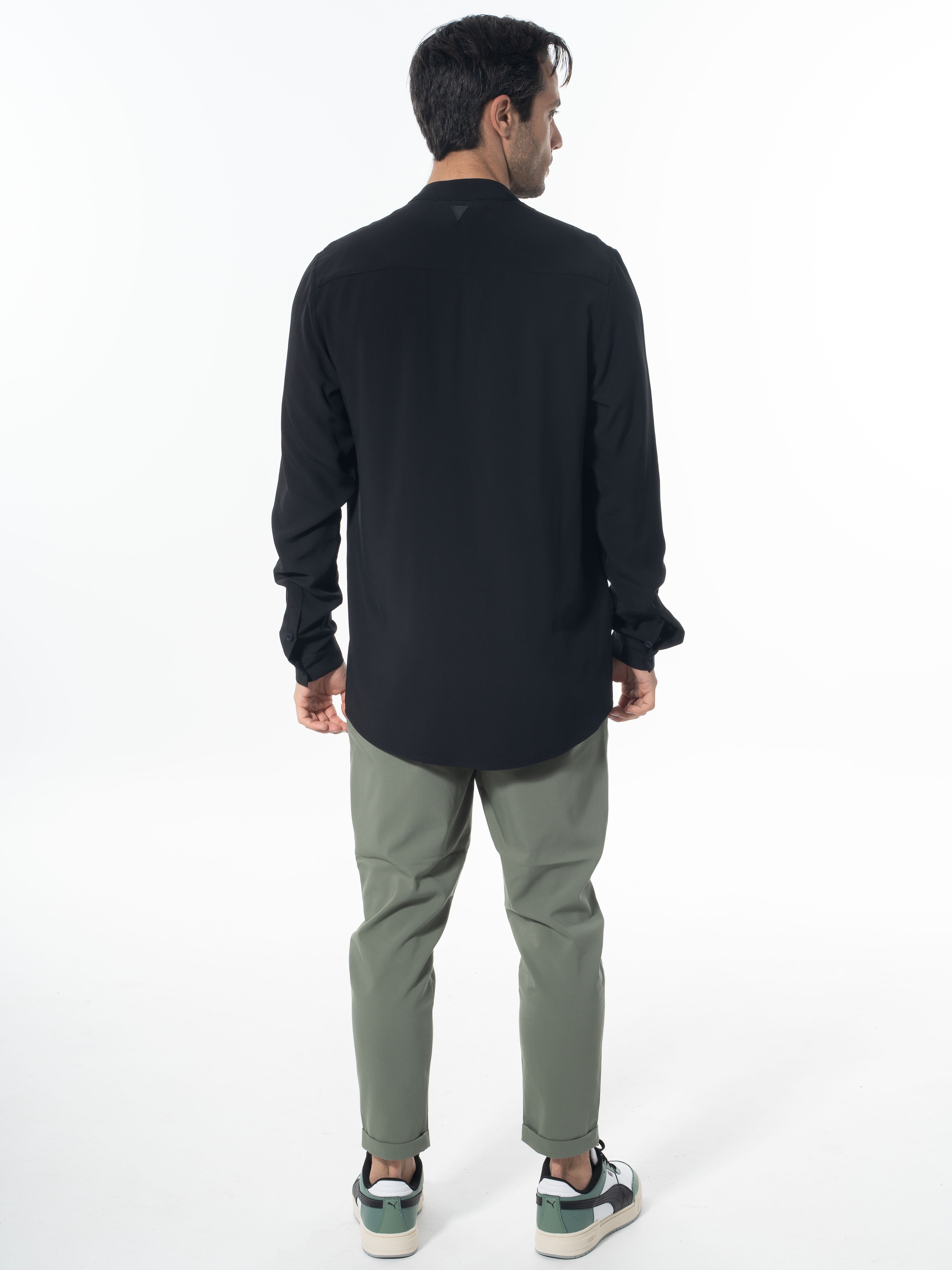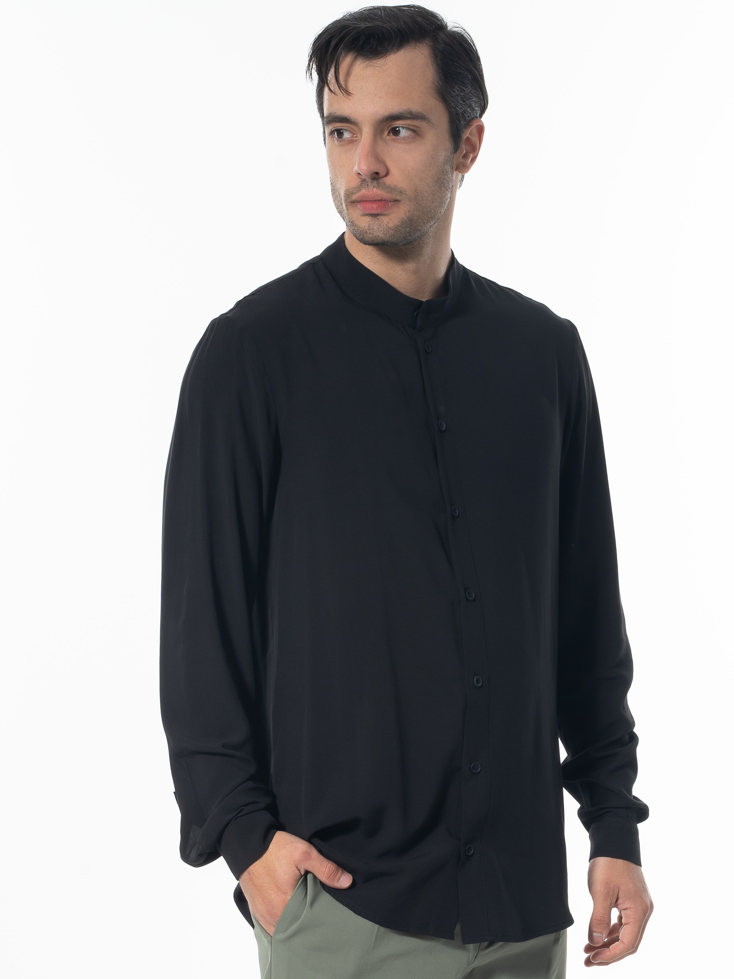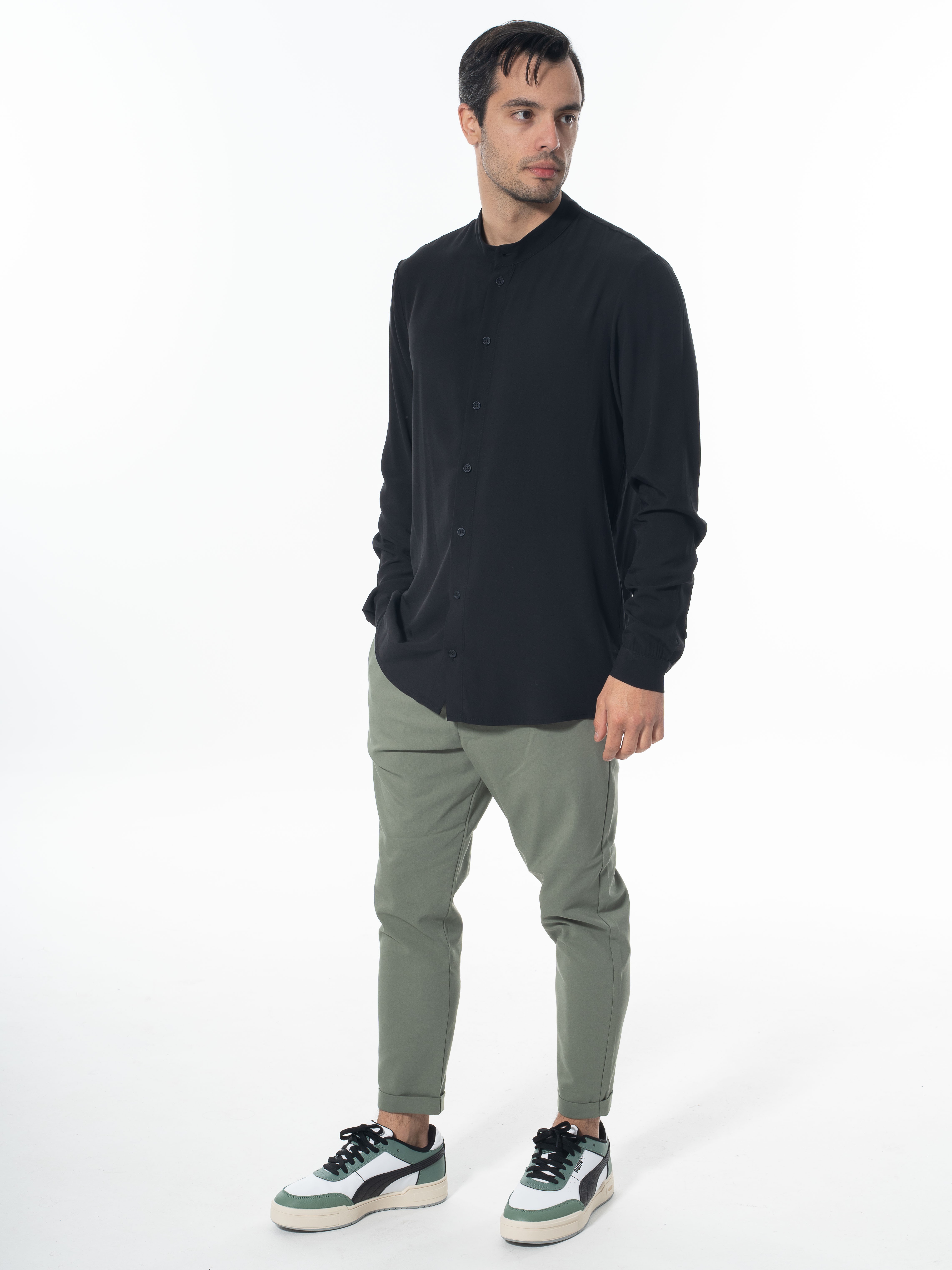NINETEEN Πουκάμισο mao K24-1048 Μαύρο