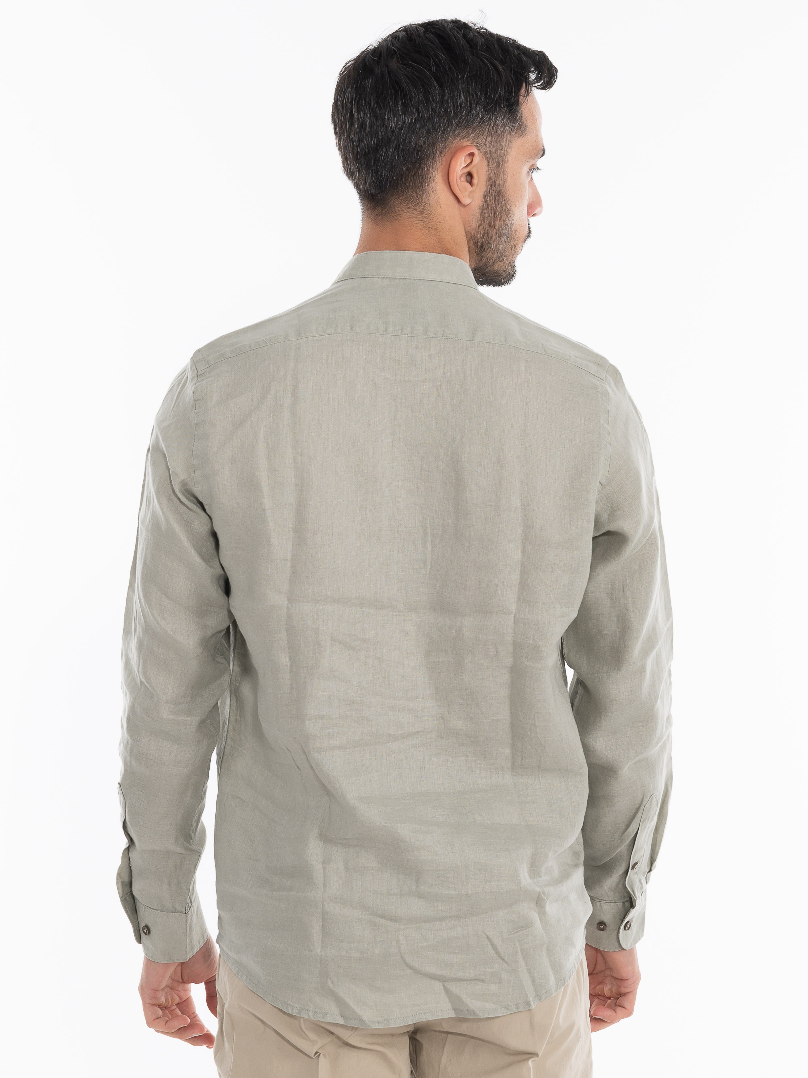 OVER-D Πουκάμισο λινό mao OE1S2S4C48 Λαδί