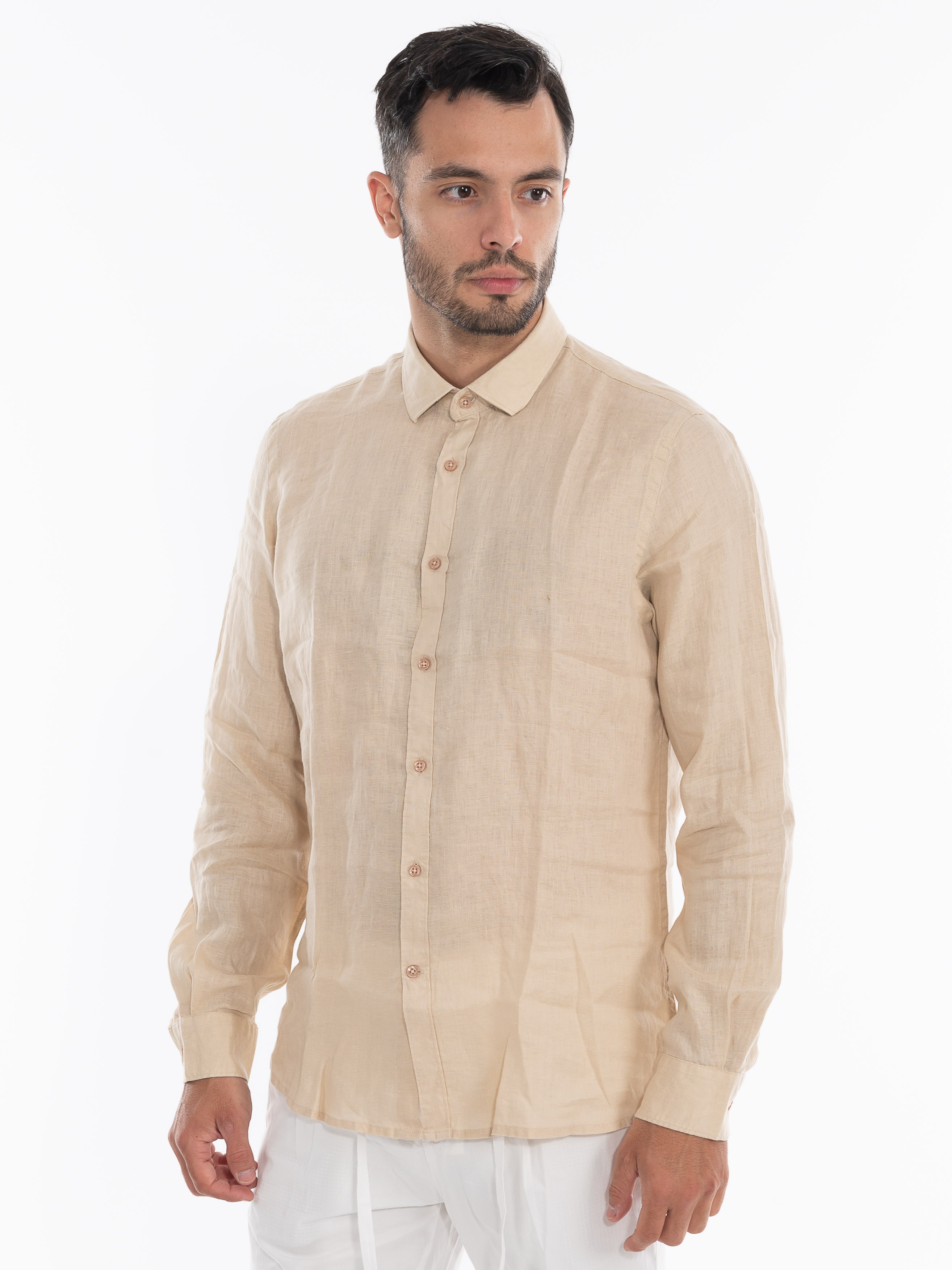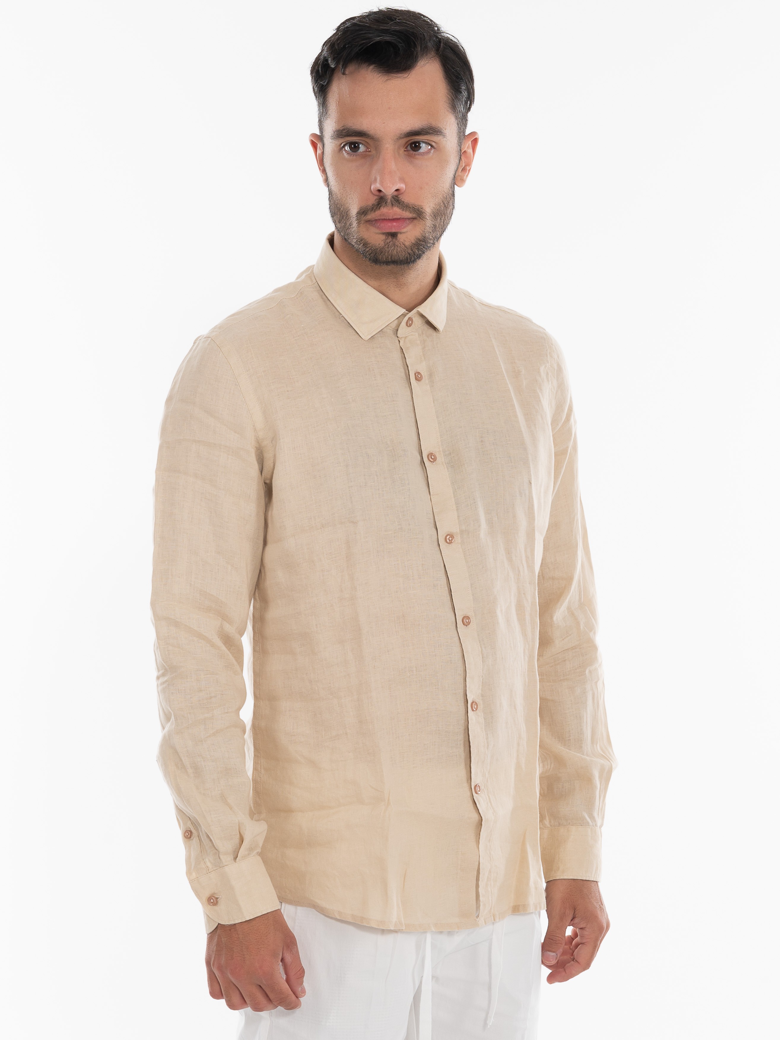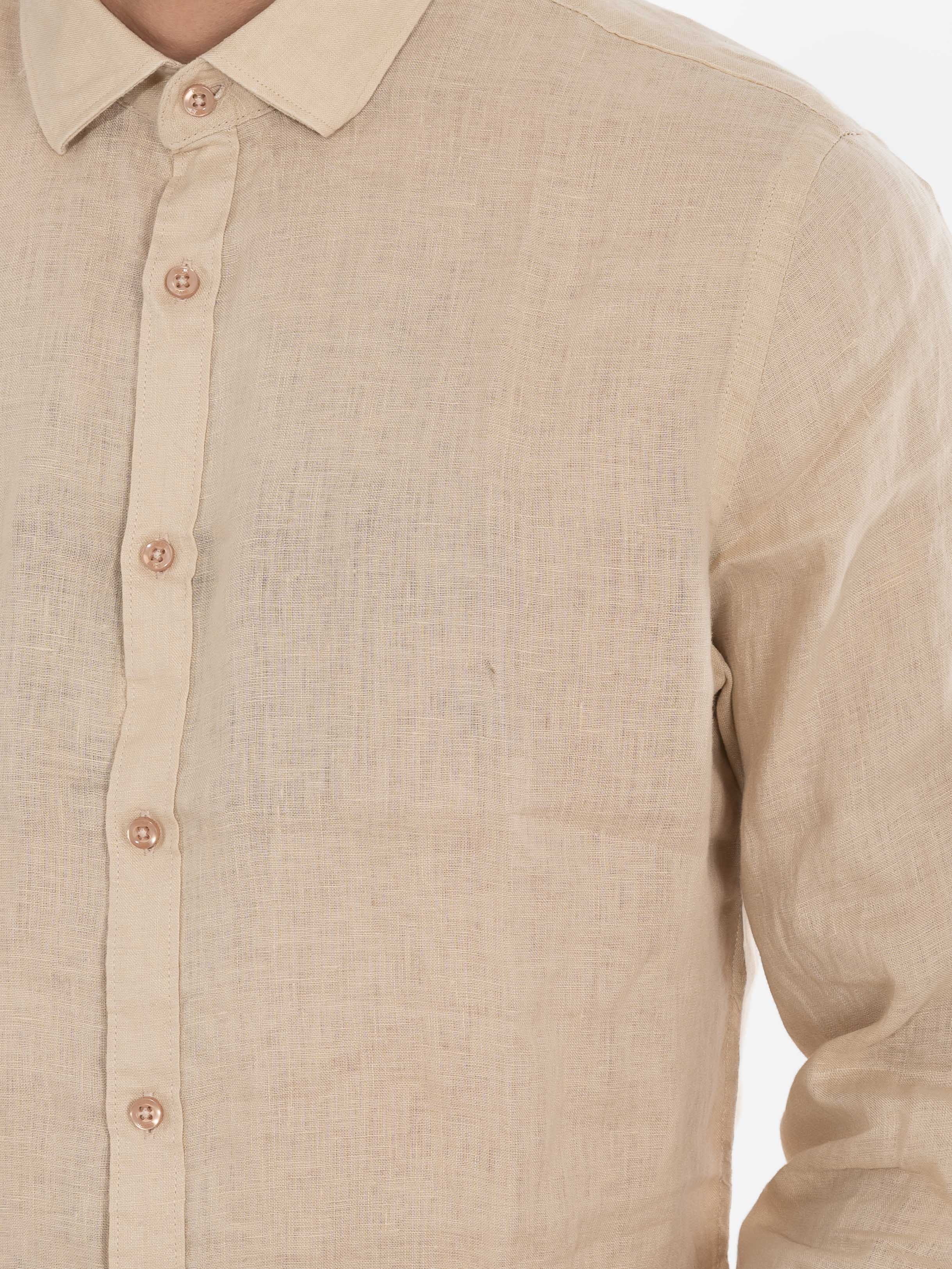 OVER-D Πουκάμισο λινό OE1S2S4C49 Μπεζ