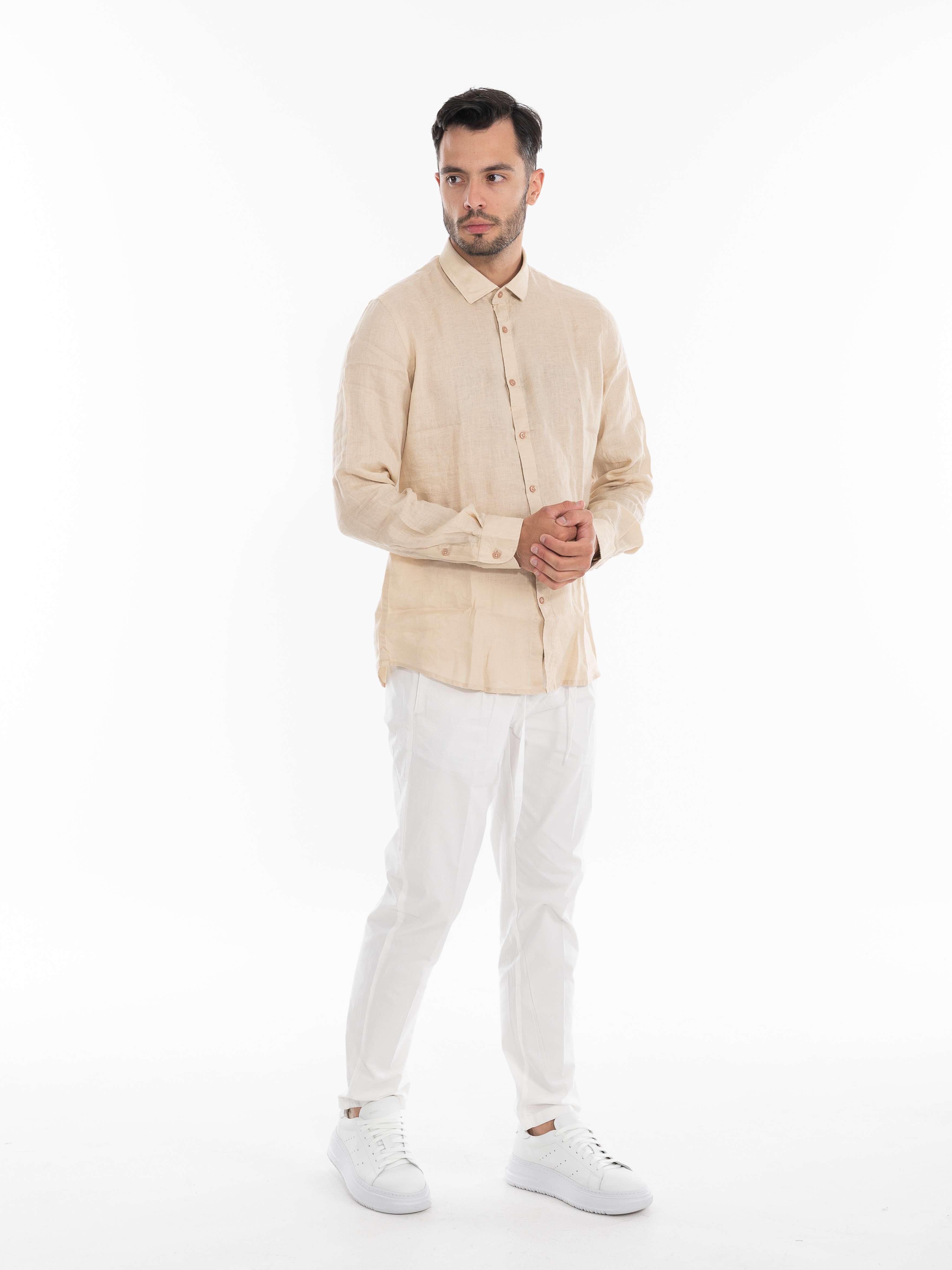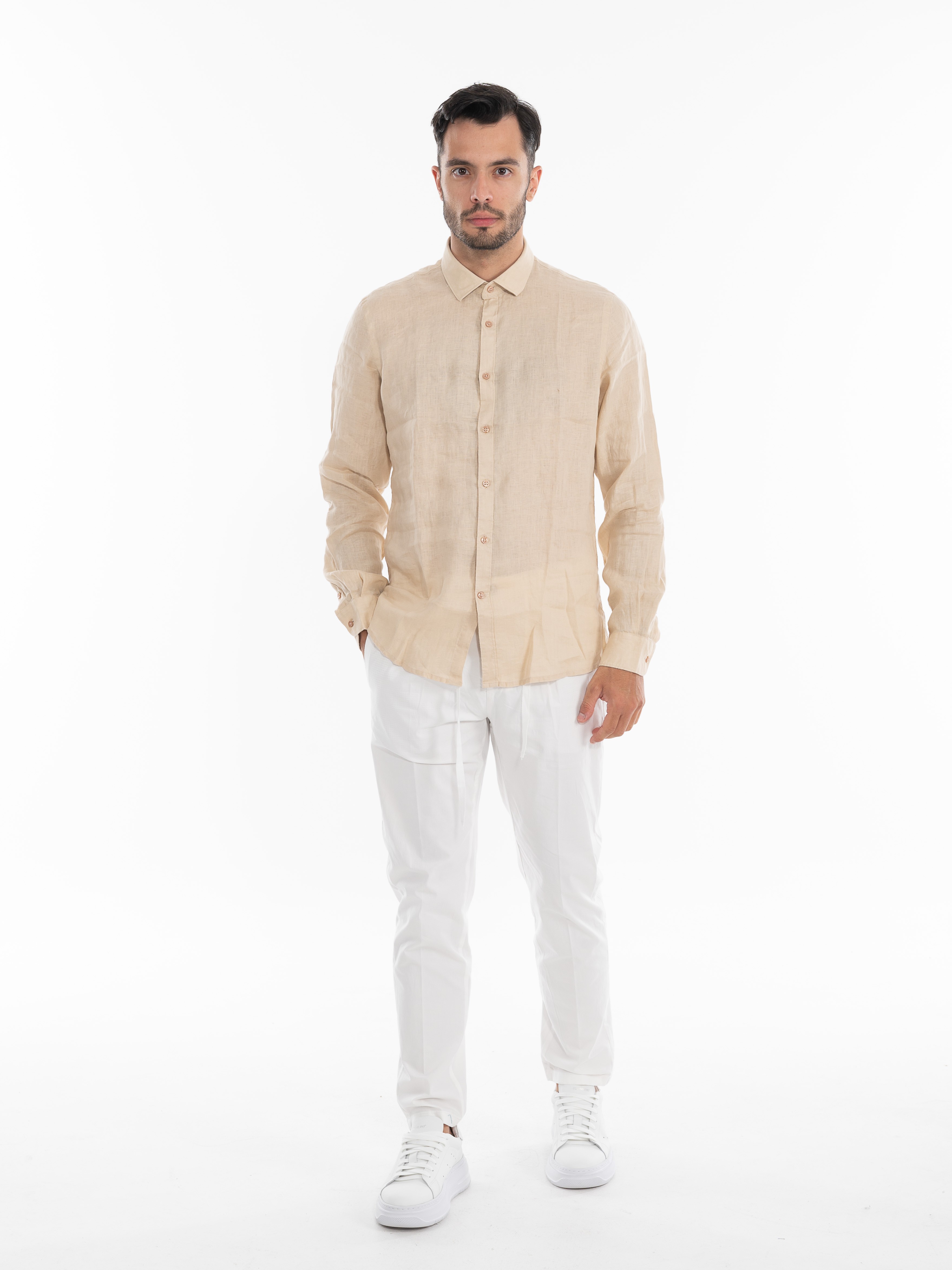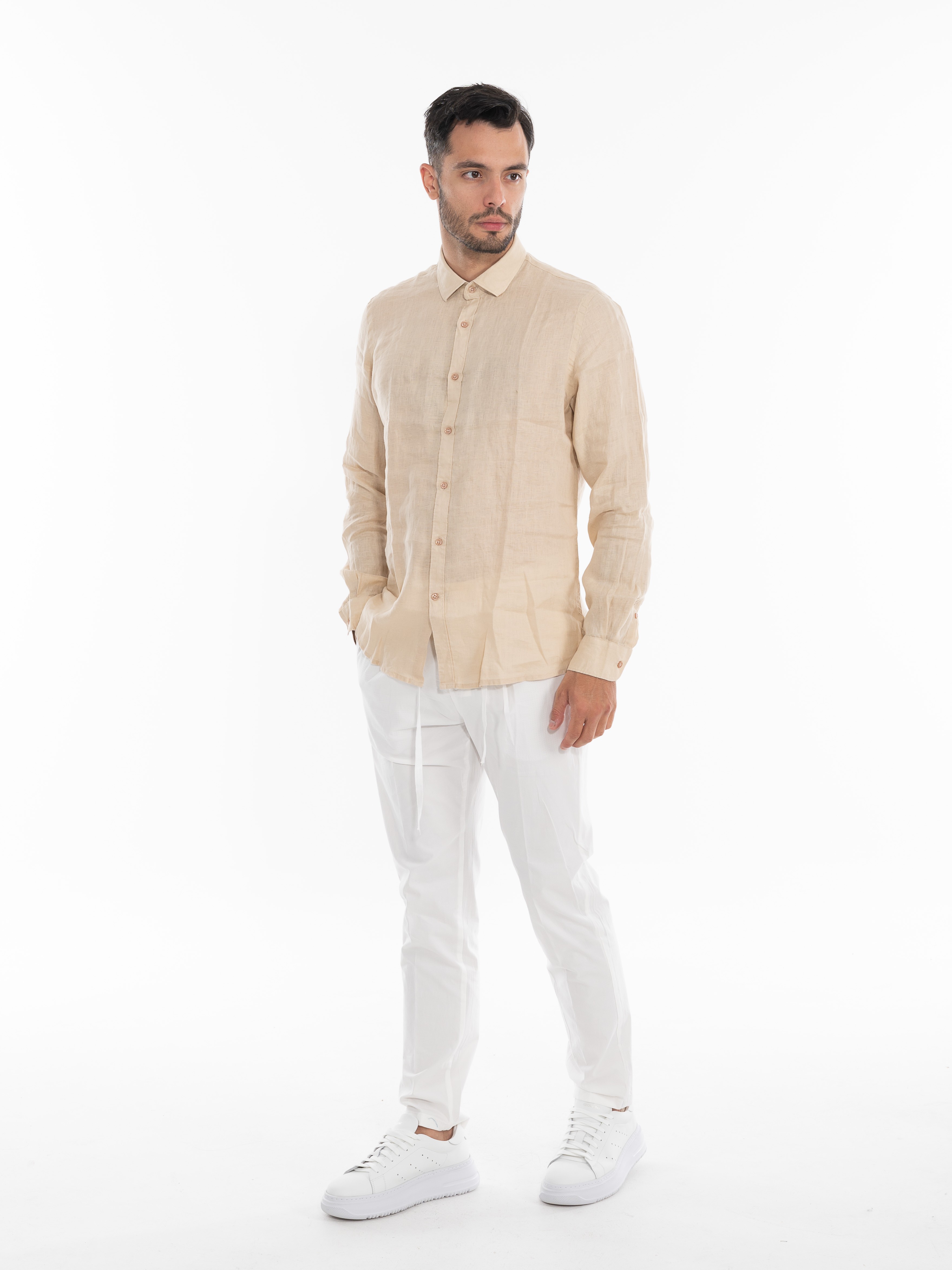 OVER-D Πουκάμισο λινό OE1S2S4C49 Μπεζ