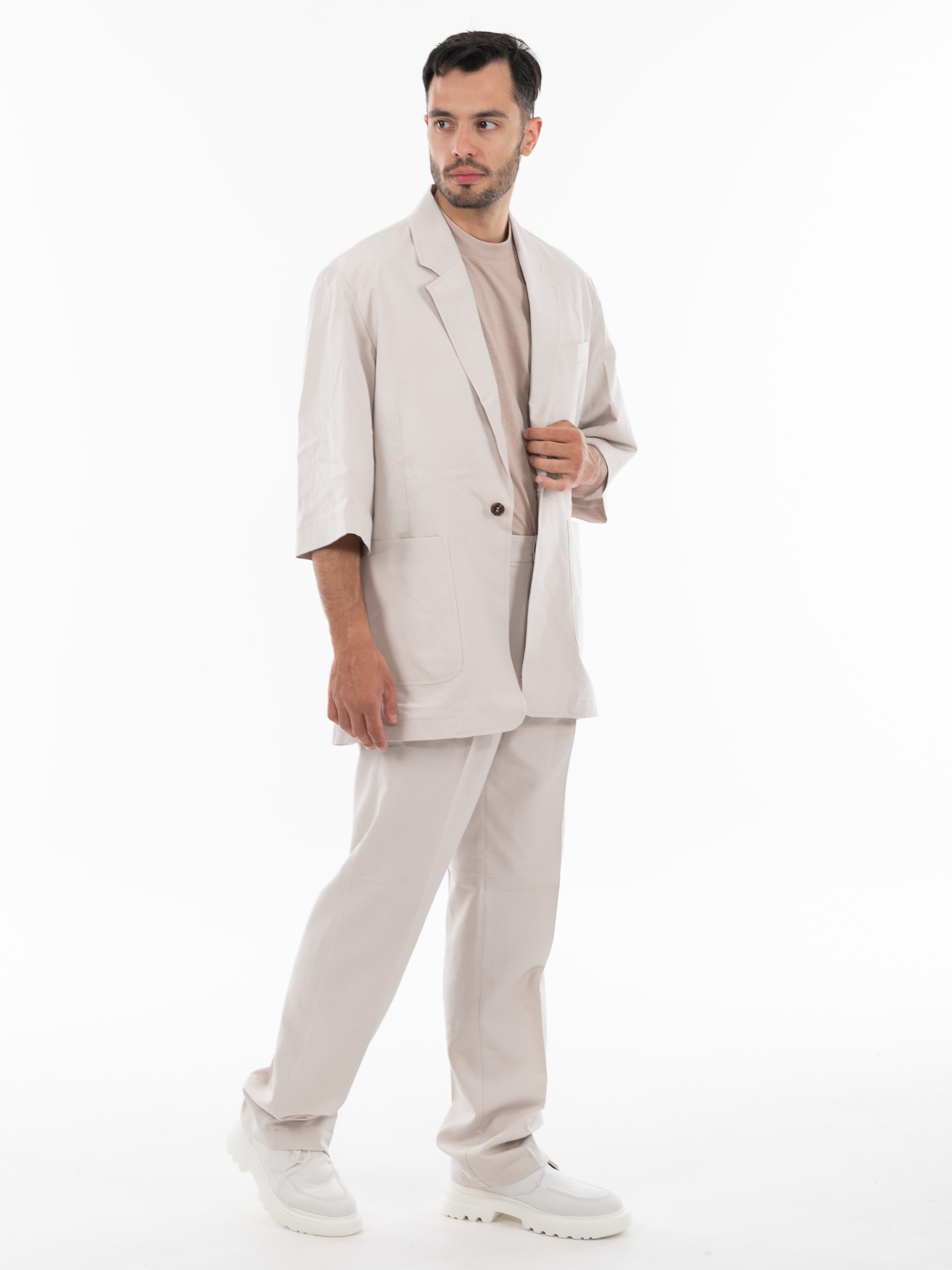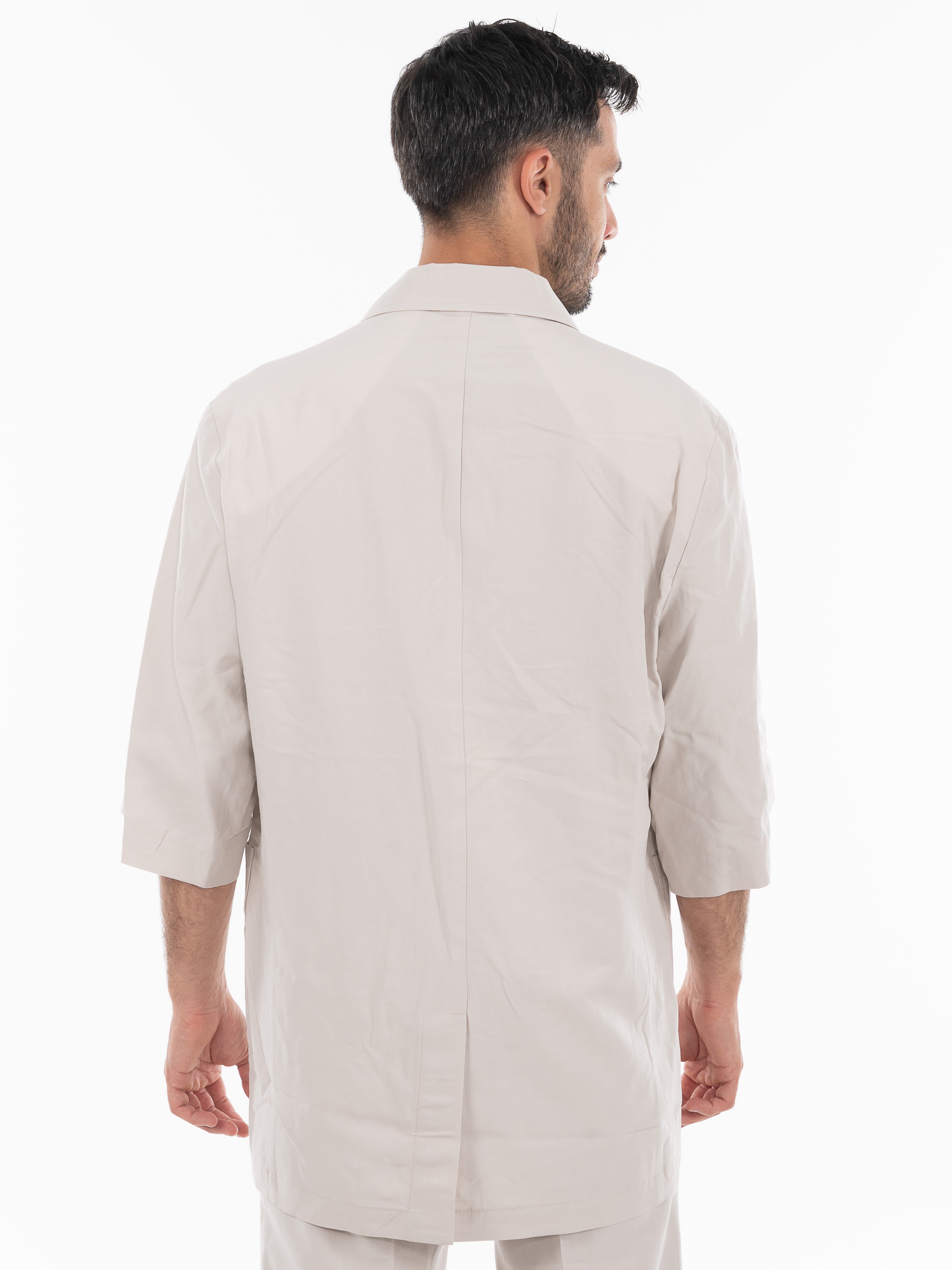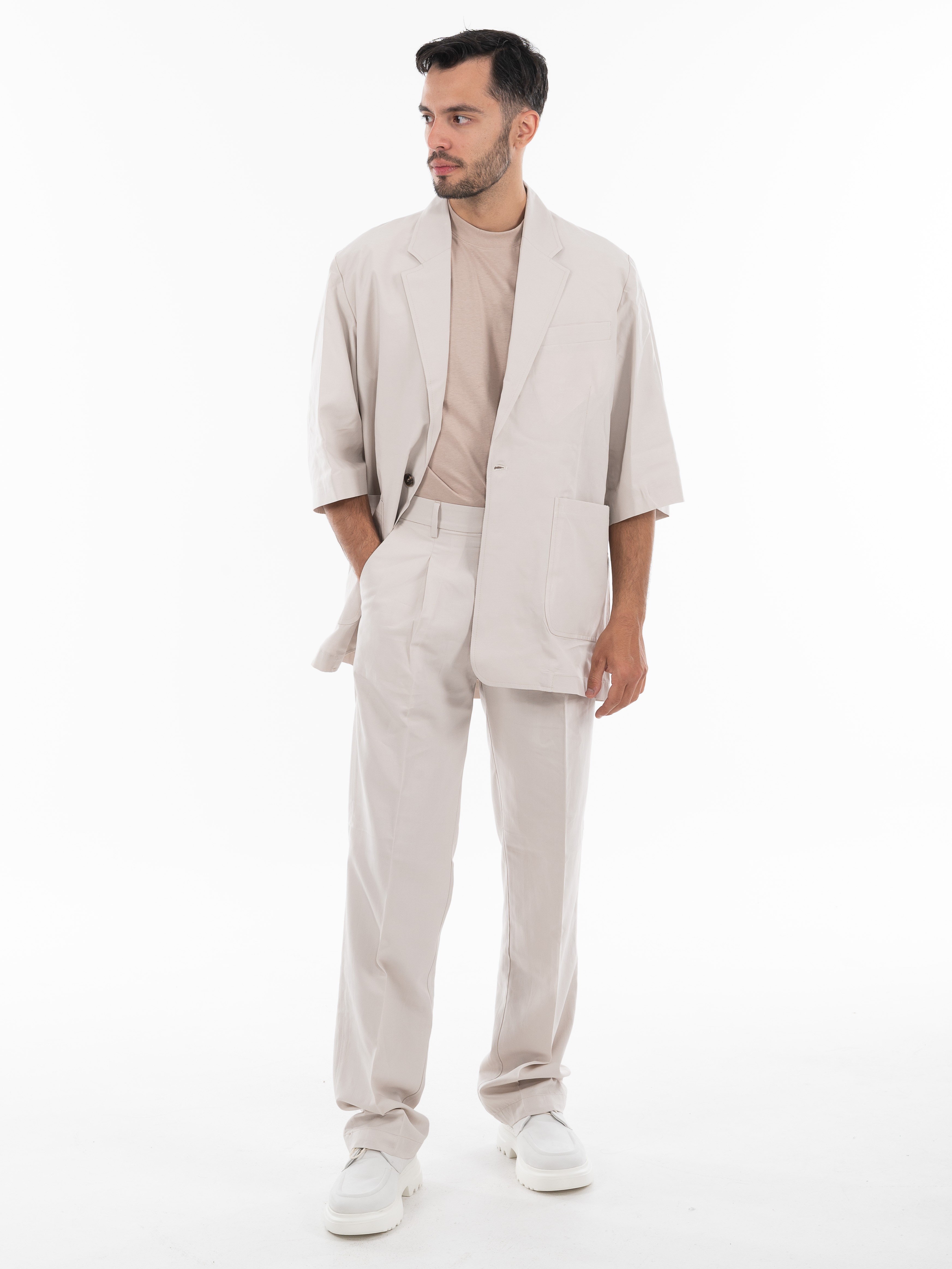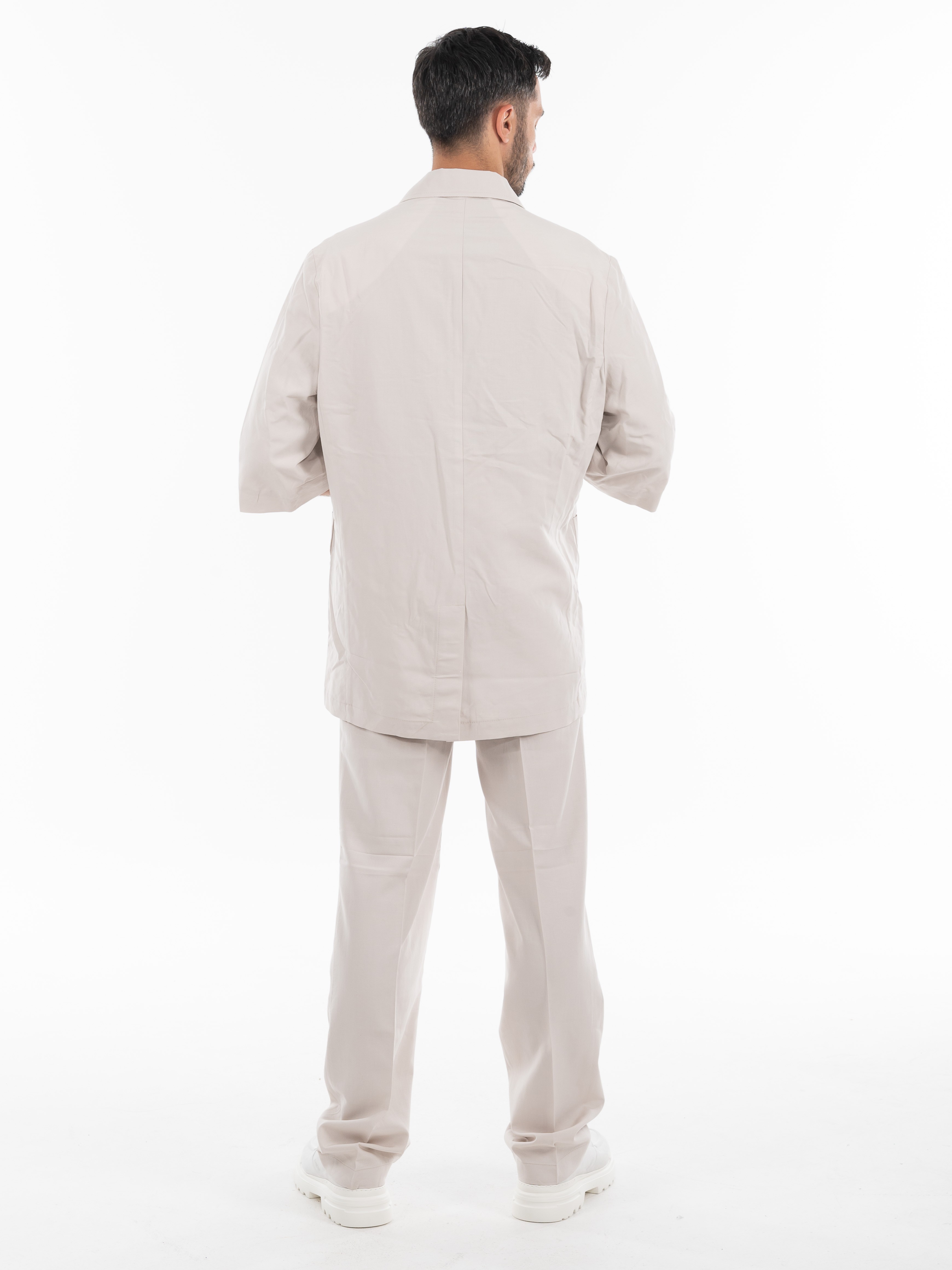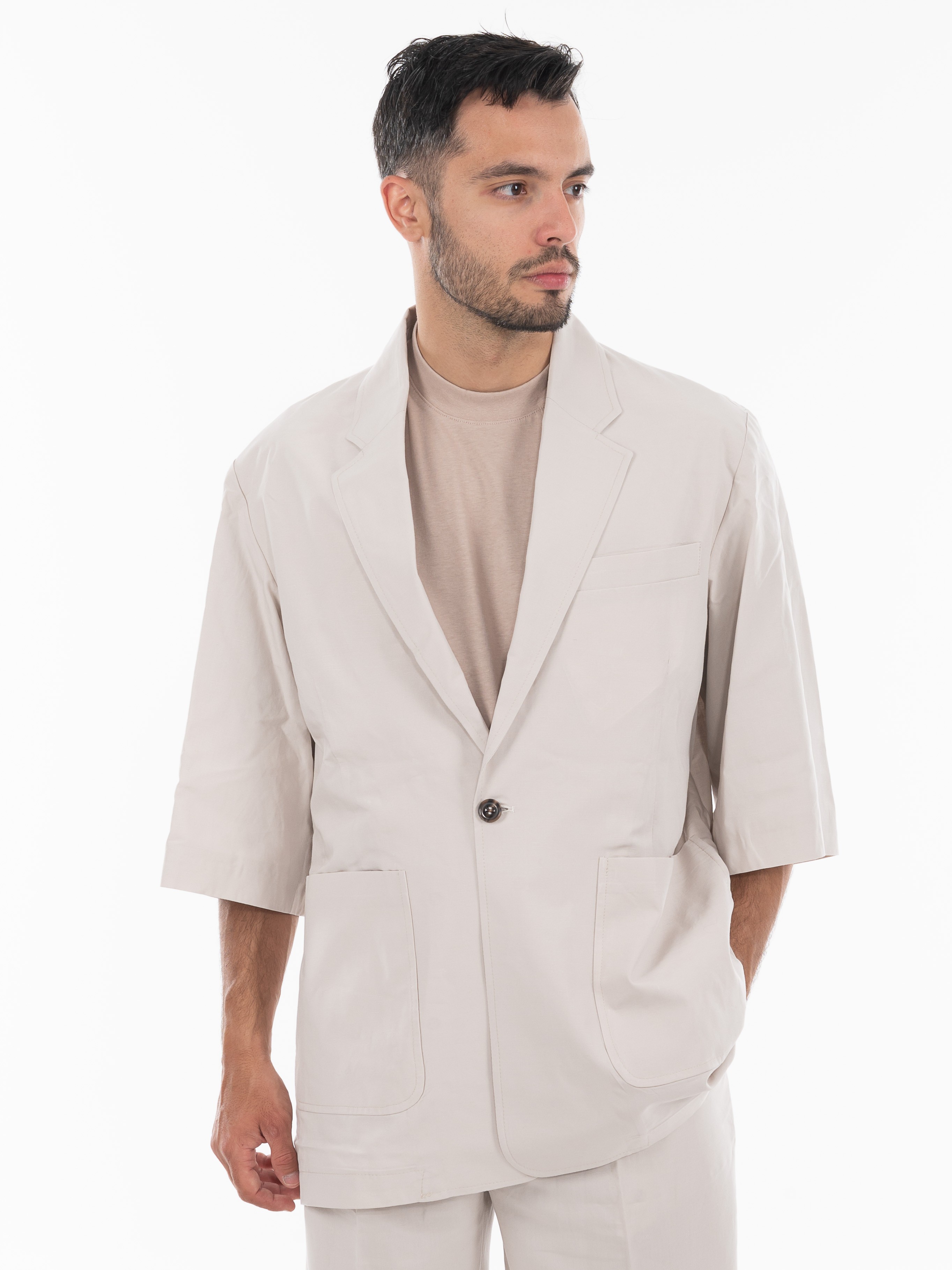 Χαρακτηριστικά: >: Σακάκι κοντομάνικο σε oversized fit γραμμή με δύο κουμπιά. 80% viscose 20% linen
