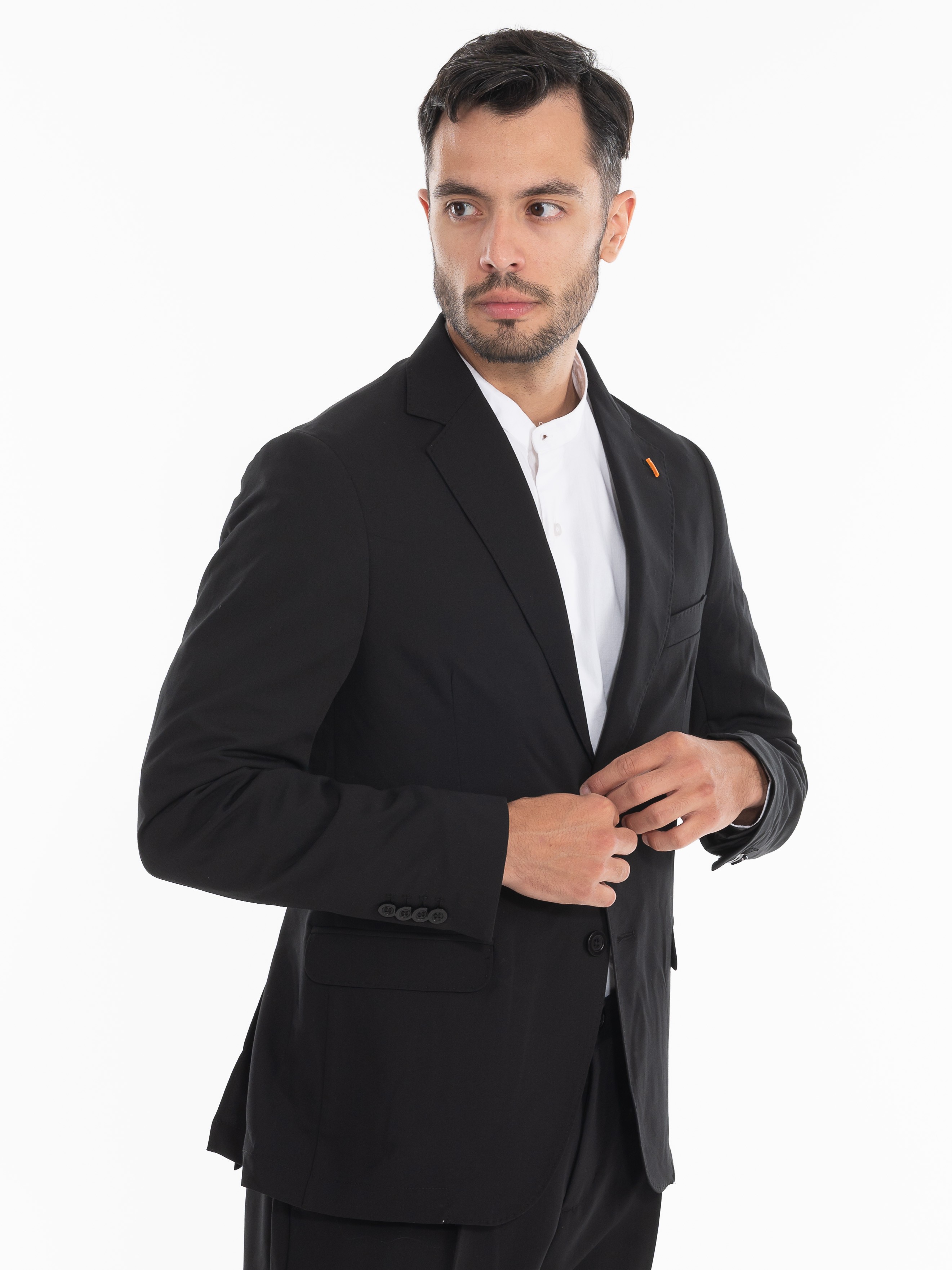 Χαρακτηριστικά: >: Σακάκι σε slim fit γραμμή με δύο κουμπιά και με τσέπες καπάκια. 69% polyester 25% viscose 6% elastane