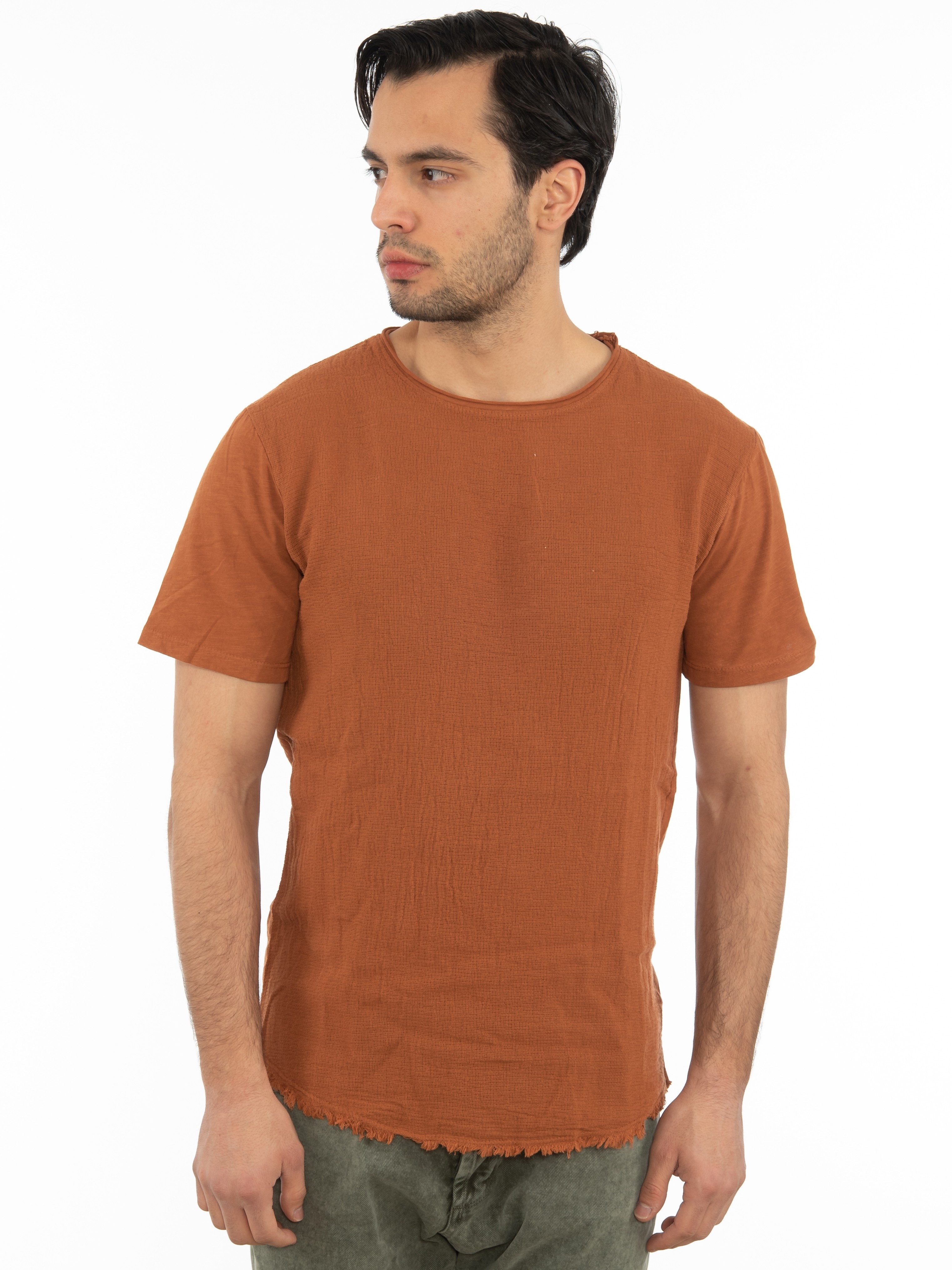 Χαρακτηριστικά: T-shirt σε regular fit γραμμή με φθορές στο τελείωμα. 95% cotton 5% elastane