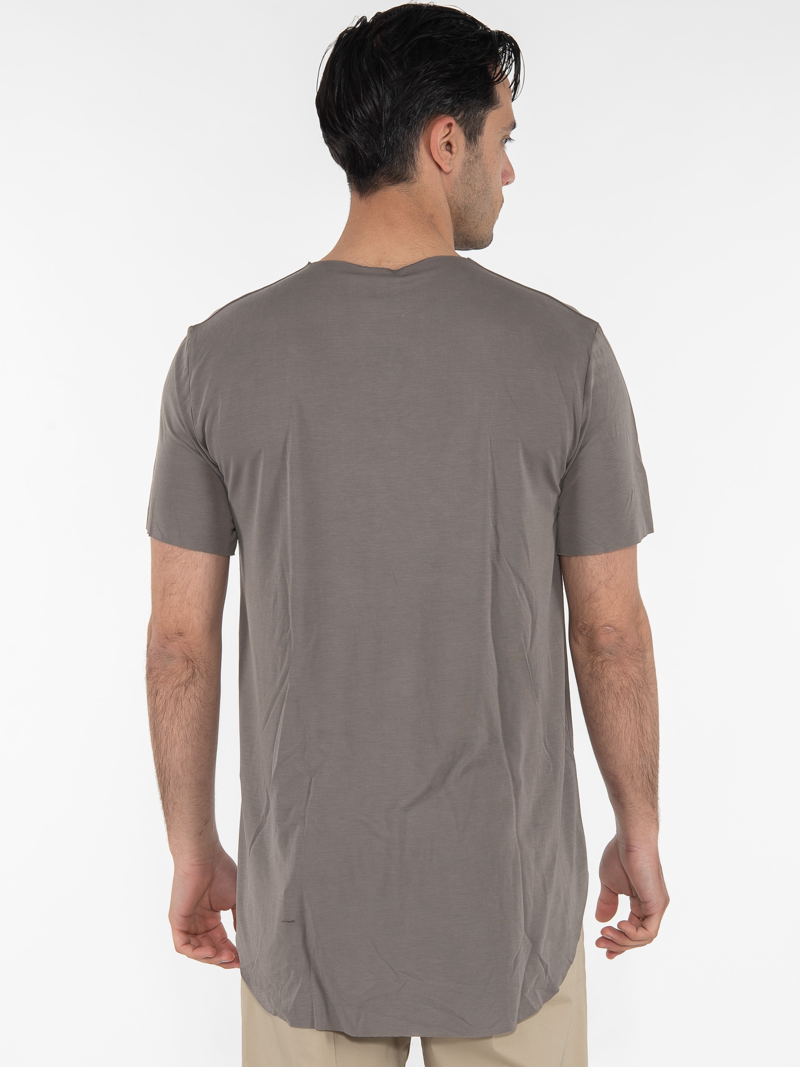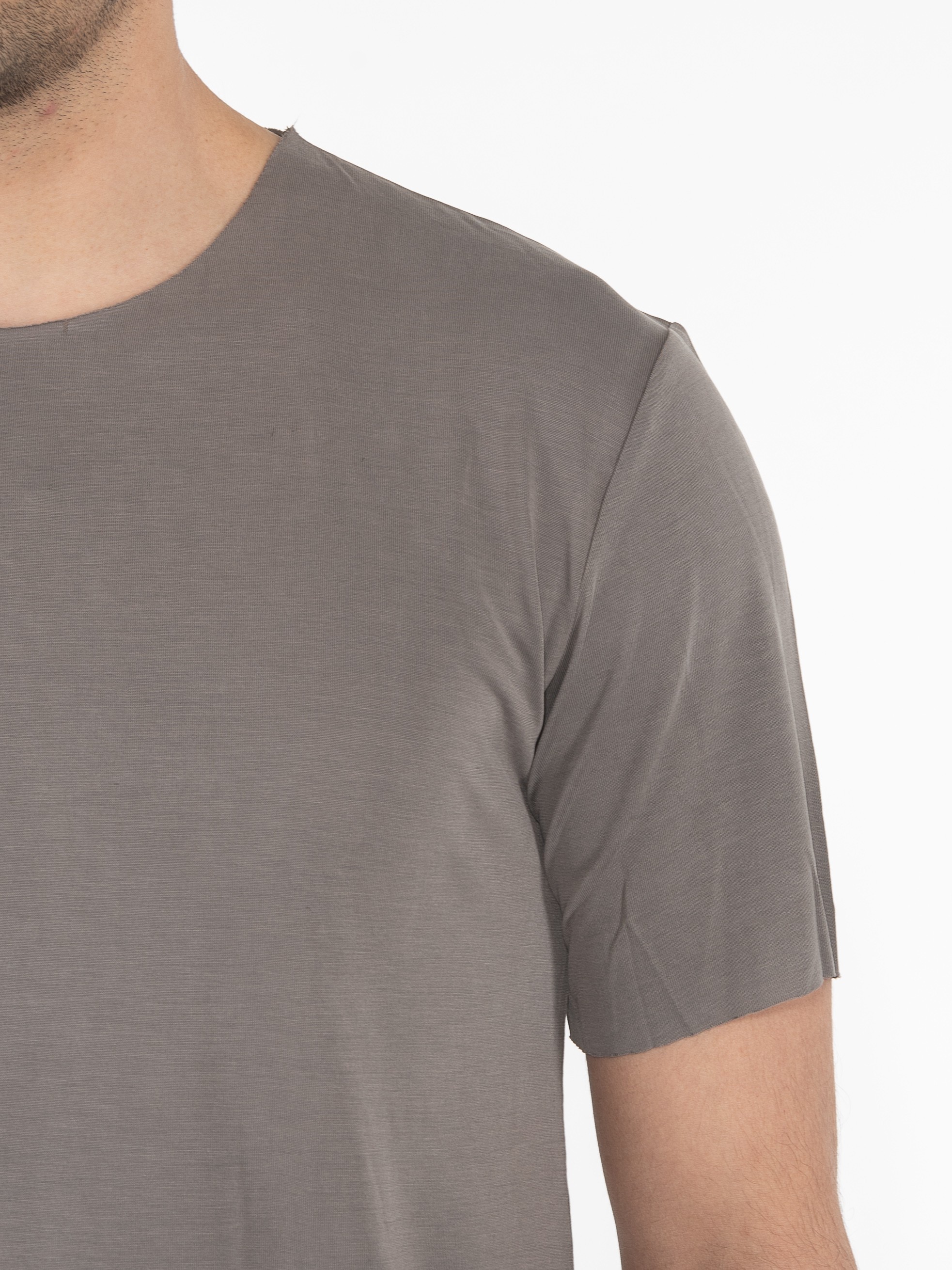 Χαρακτηριστικά: T-shirt ασύμετρο σε regular fit γραμμή κομμένο με λέιζερ στο λαιμό, στα μανίκια και στο τελείωμα. 67% modal 33% polyester