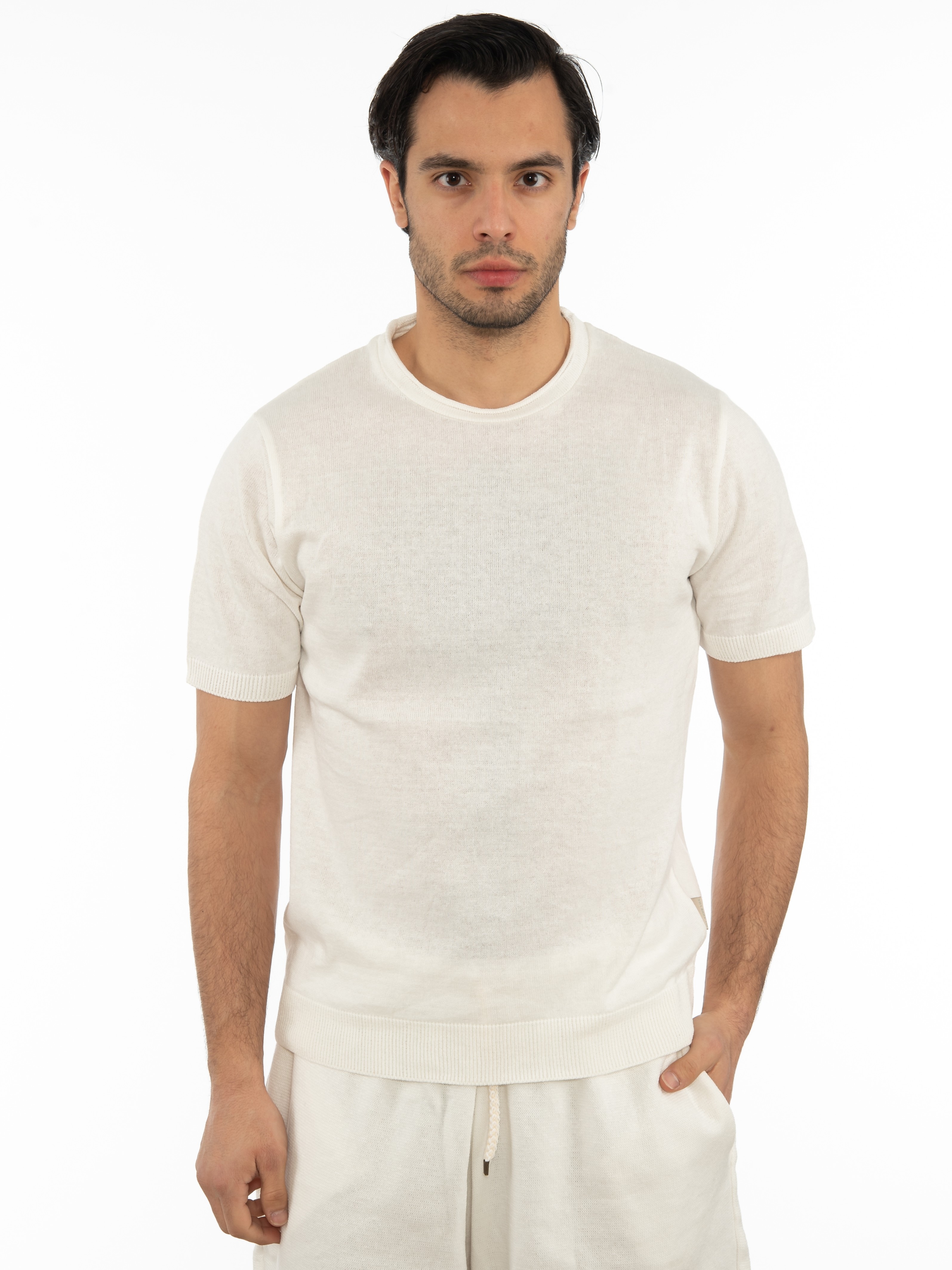 Χαρακτηριστικά: T-shirt νημάτινο σε regular fit γραμμή με λάστιχο στο μανίκι και στο τελείωμα. 50% cotton 50% acrylic