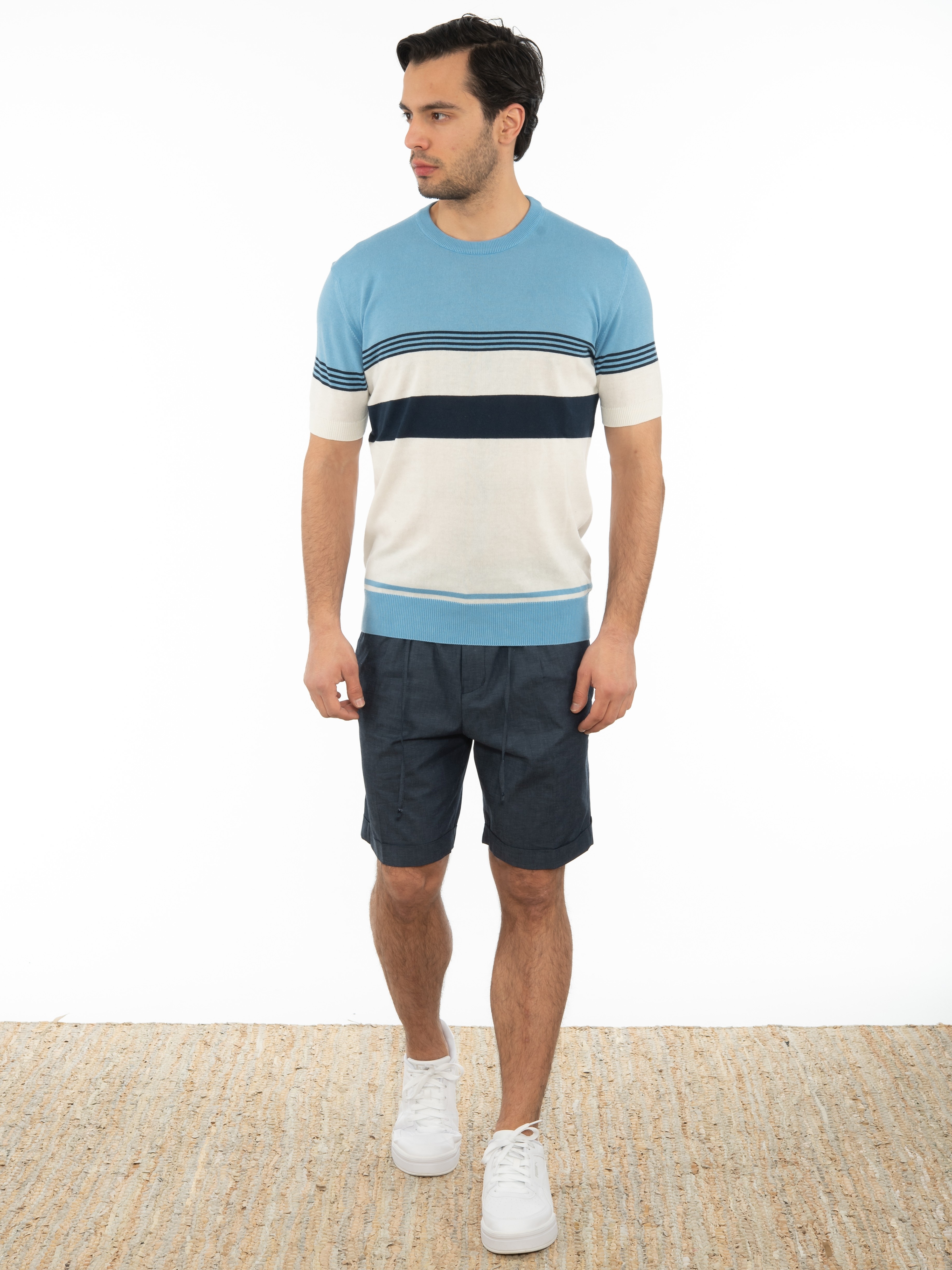 OVER-D T-shirt νημάτινο OE1S2S2M13 Σιέλ - Λευκό