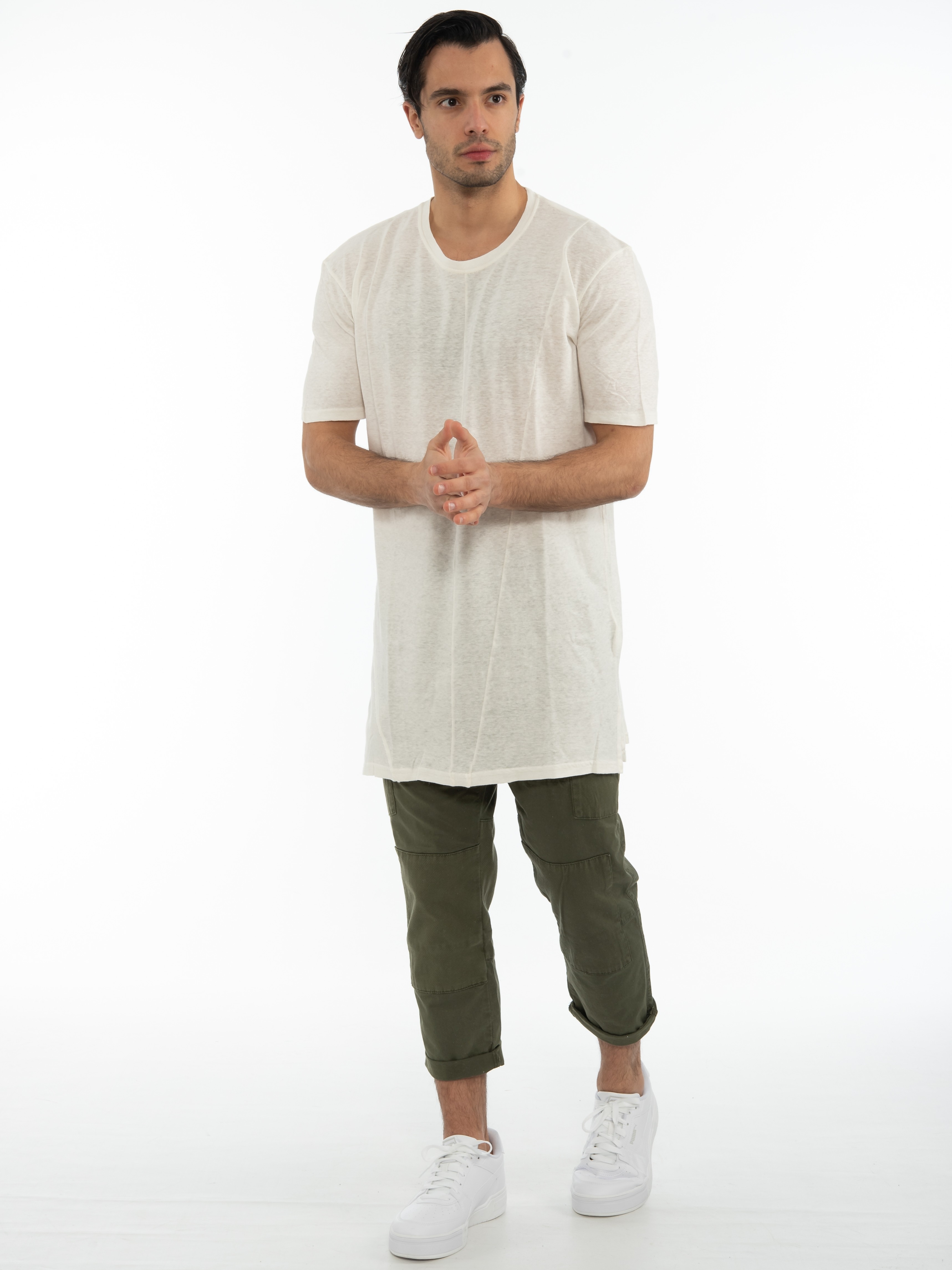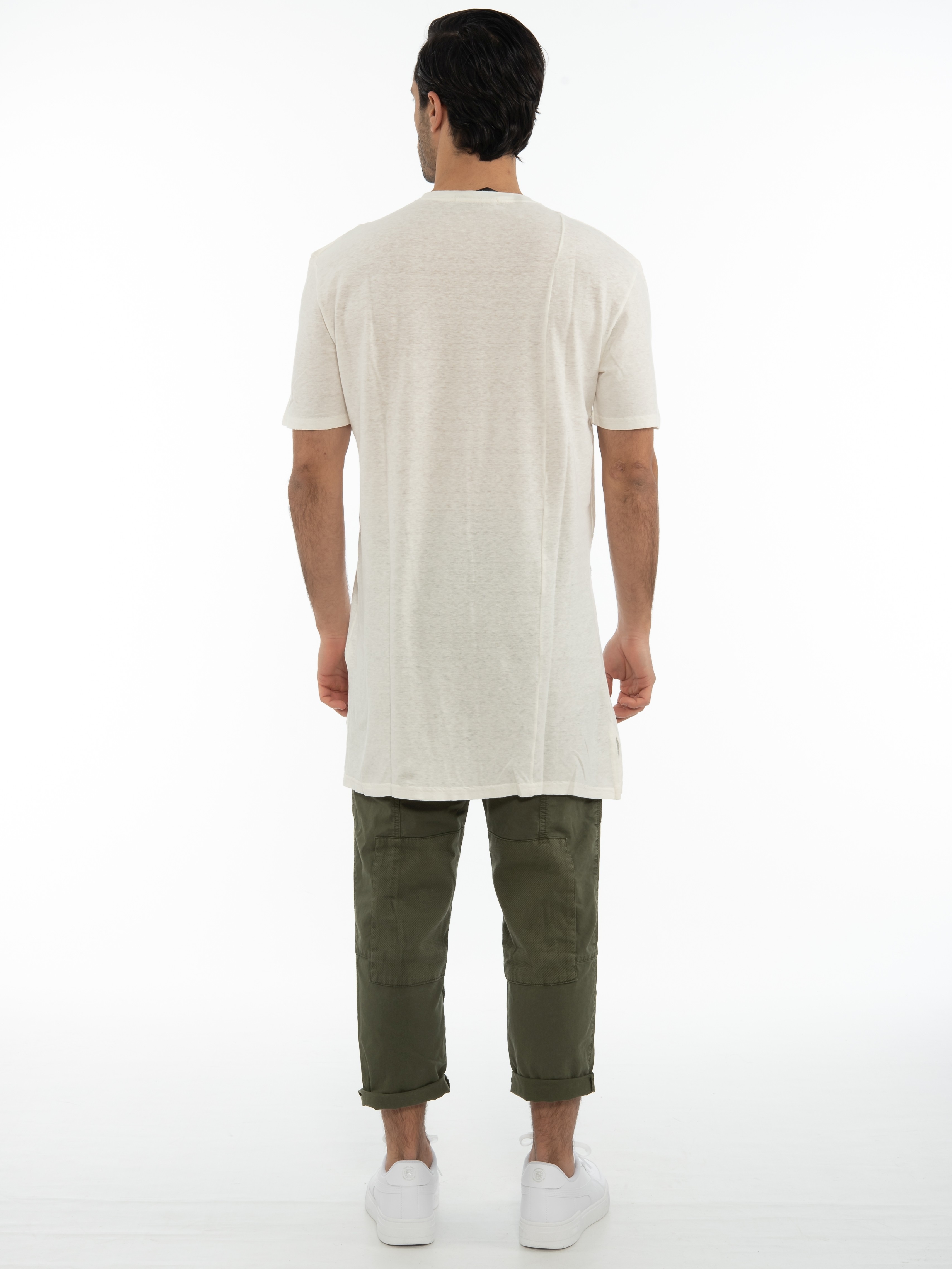 Χαρακτηριστικά: T-shirt σε slim fit γραμμή με εξώραφα και σκίσιμο στο πλάι. 45% cotton 55% linen