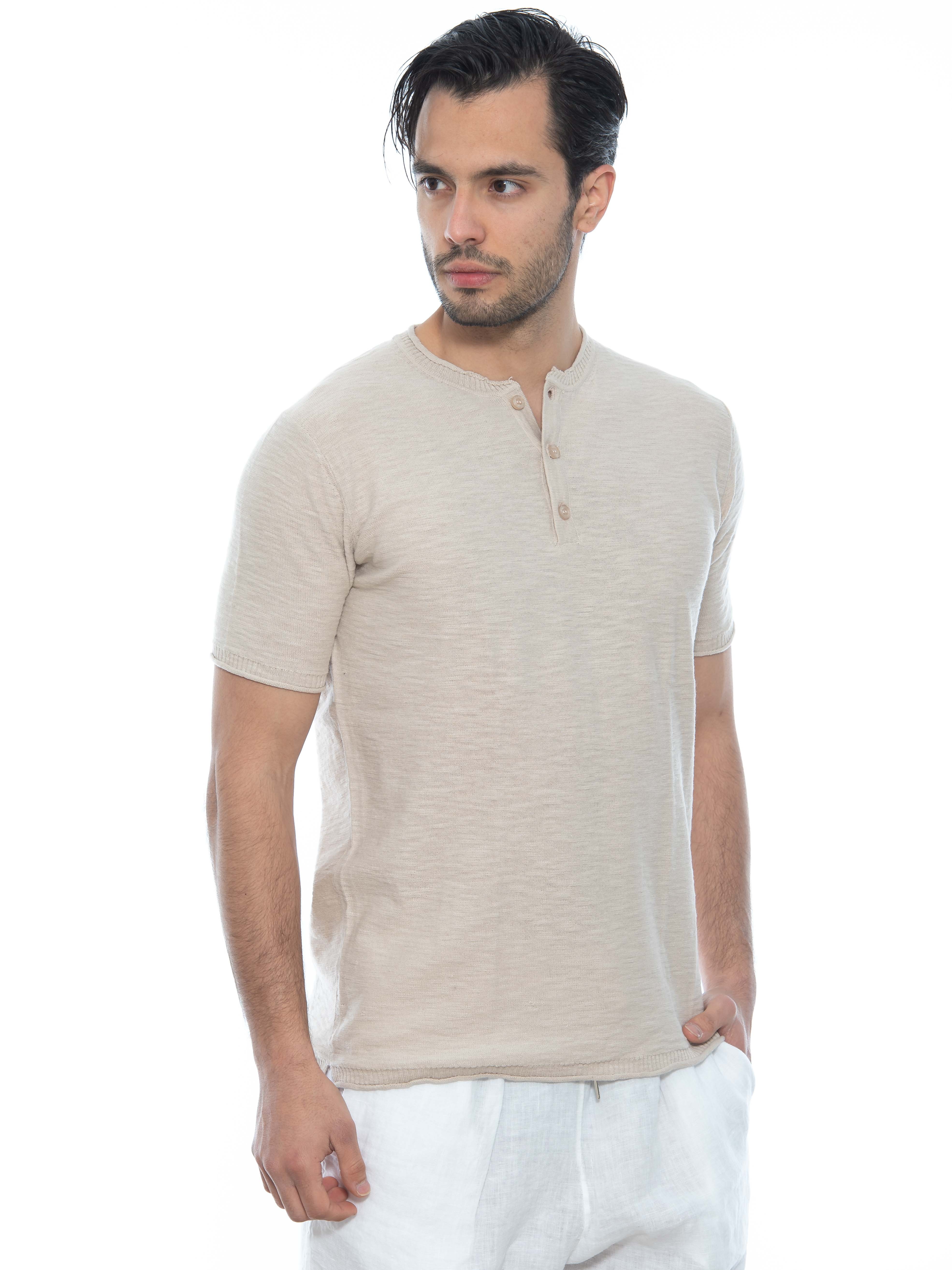 Χαρακτηριστικά: T-shirt νημάτινο σε slim fit γραμμή κομμένο με λέιζερ στο τελείωμα, με κουμπιά. 100% cotton