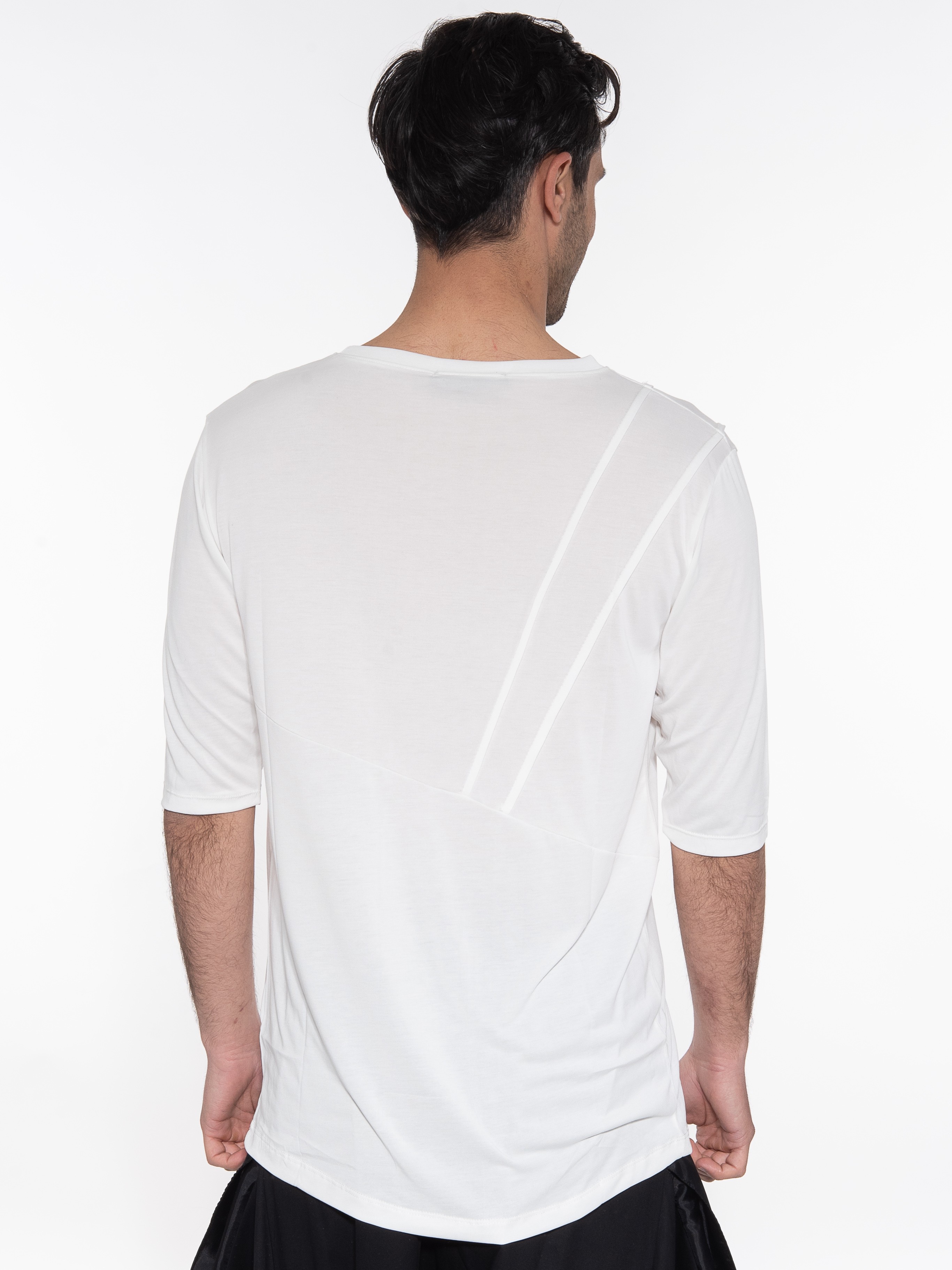 Χαρακτηριστικά: T-shirt σε regular fit γραμμή με εξωτερικές ραφές. 74% modal 26% polyester