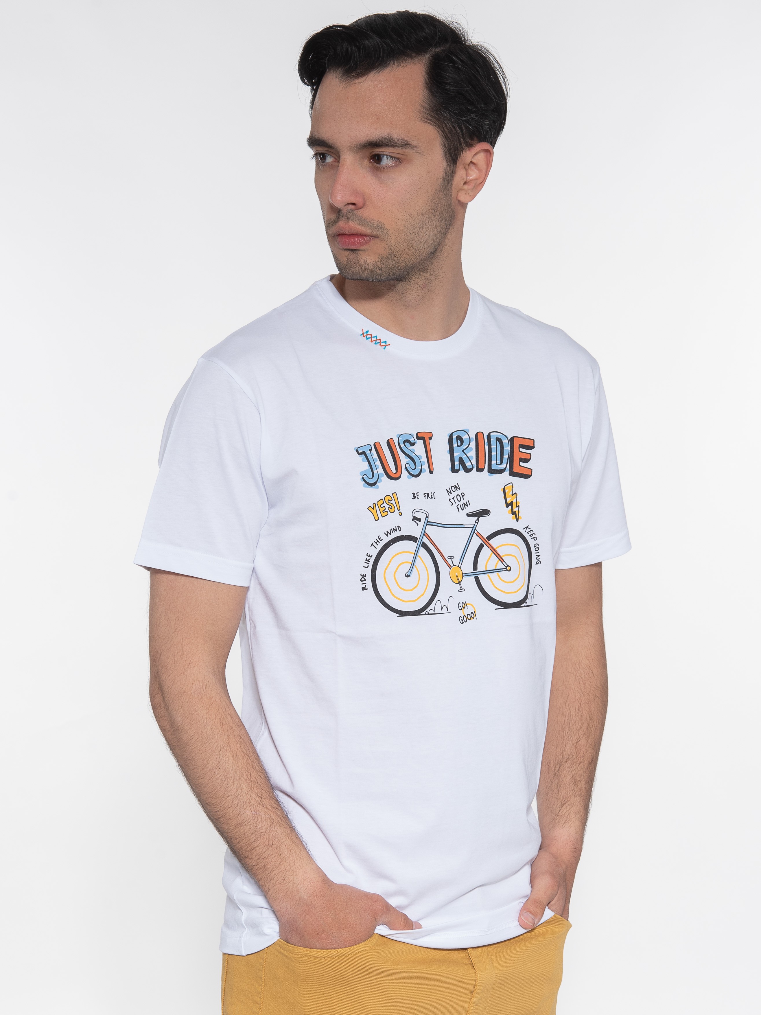 Χαρακτηριστικά: T-shirt σε slim fit γραμμή με ραφή στο λαιμό και στάμπα στο στήθος.100% cotton