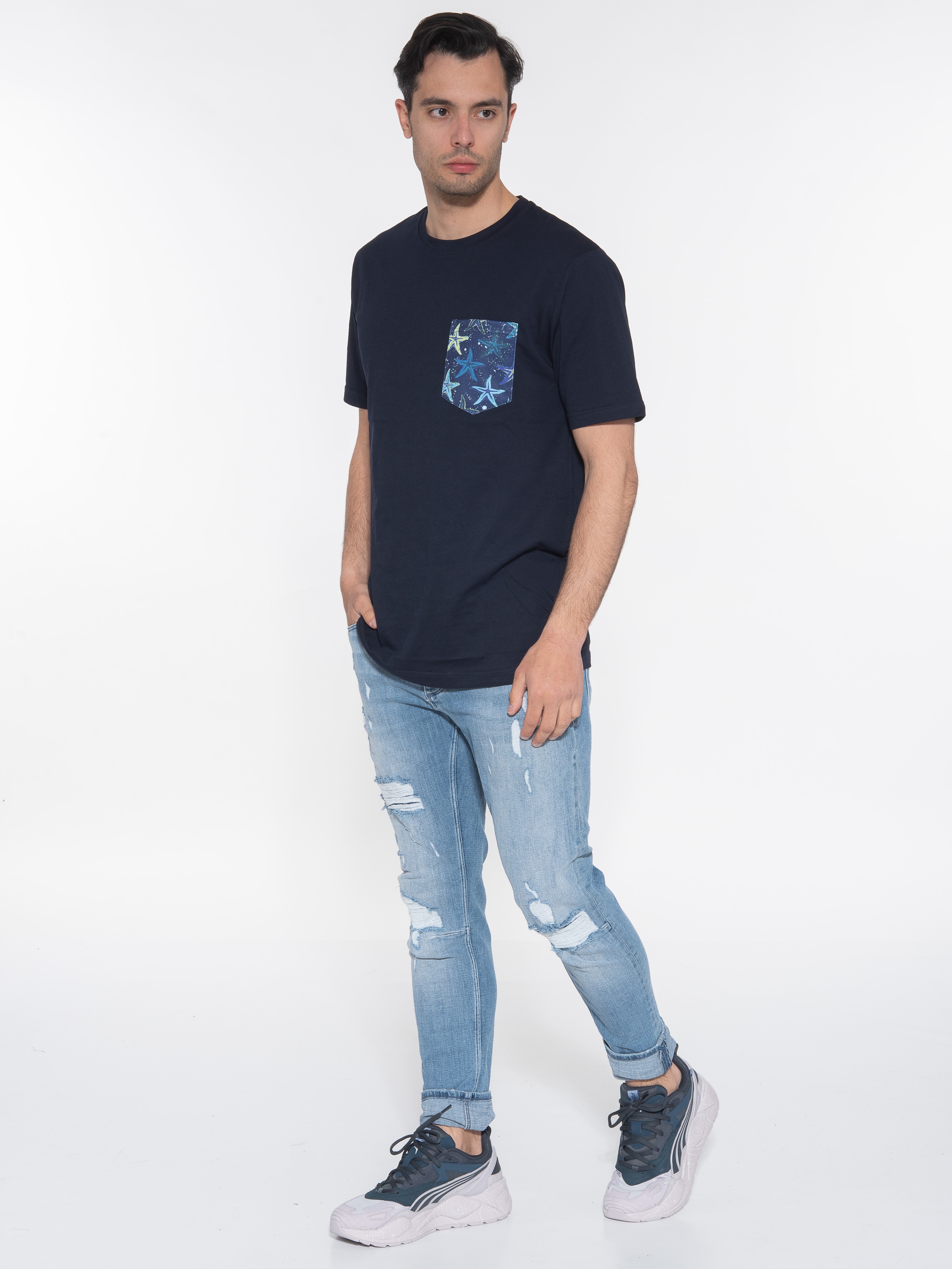 Χαρακτηριστικά: T-shirt σε slim fit γραμμή με εμπριμέ τσεπάκι στο στήθος.100% cotton