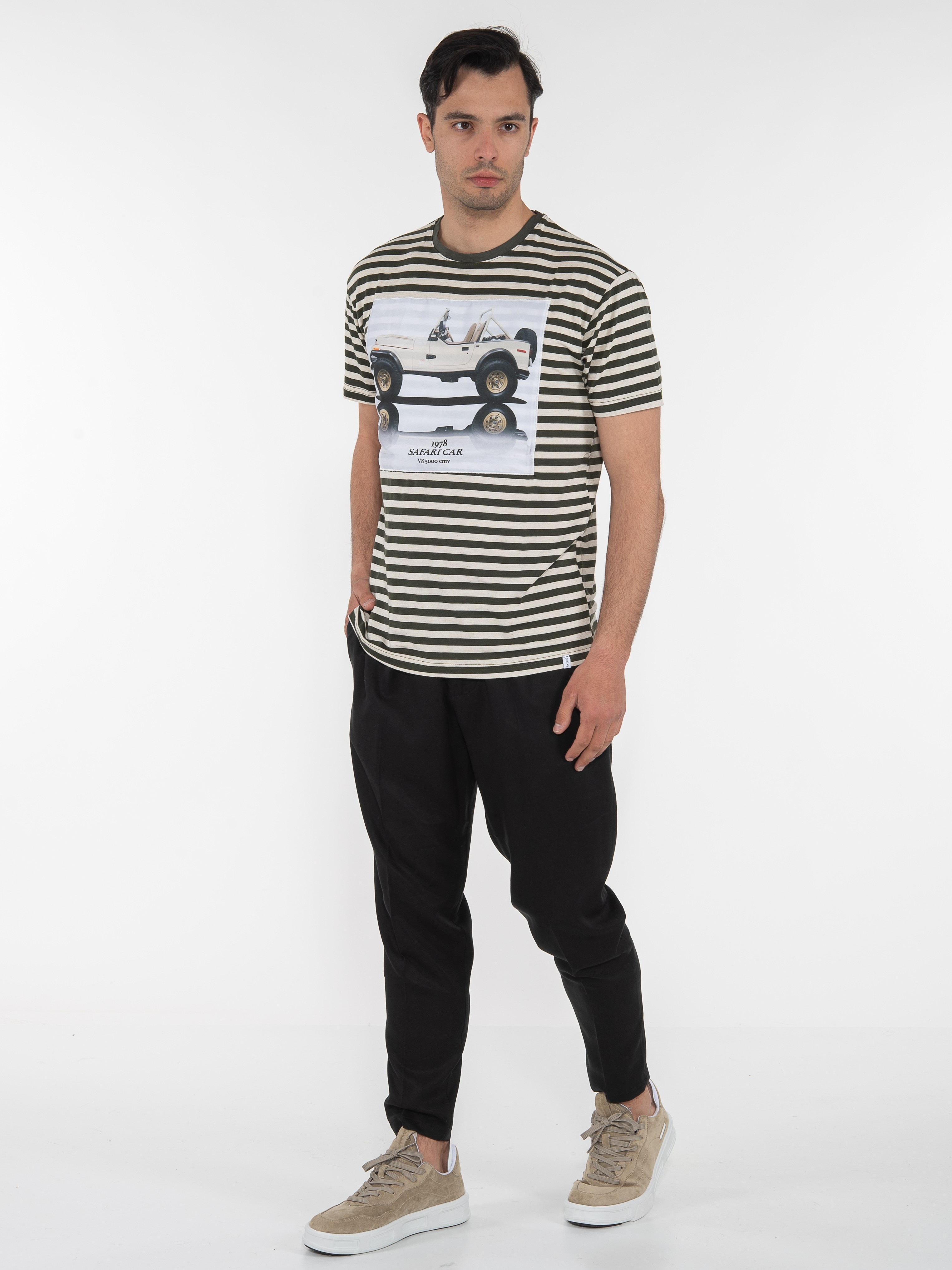 Χαρακτηριστικά: T-shirt μαρινέρα σε slim fit γραμμή με διαφορετικό ύφασμα στάμπα στο στήθος.96% viscose 4% spandex
