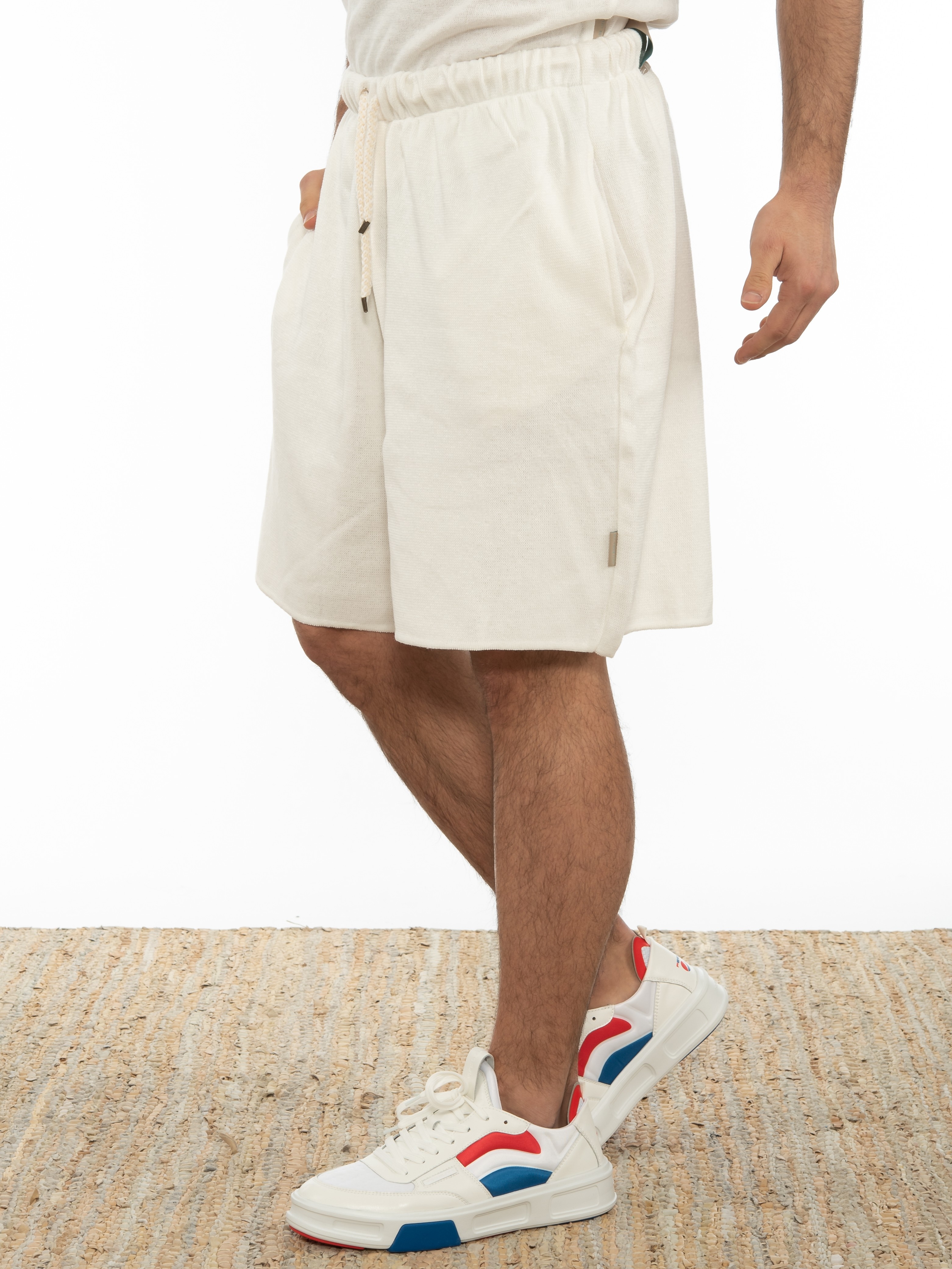 Χαρακτηριστικά: Βερμούδα νημάτινη σε regular fit γραμμή με λάστιχο και ενσωματωμένη ζώνη - κορδόνι στη μέση. 50% cotton 50% acrylic
