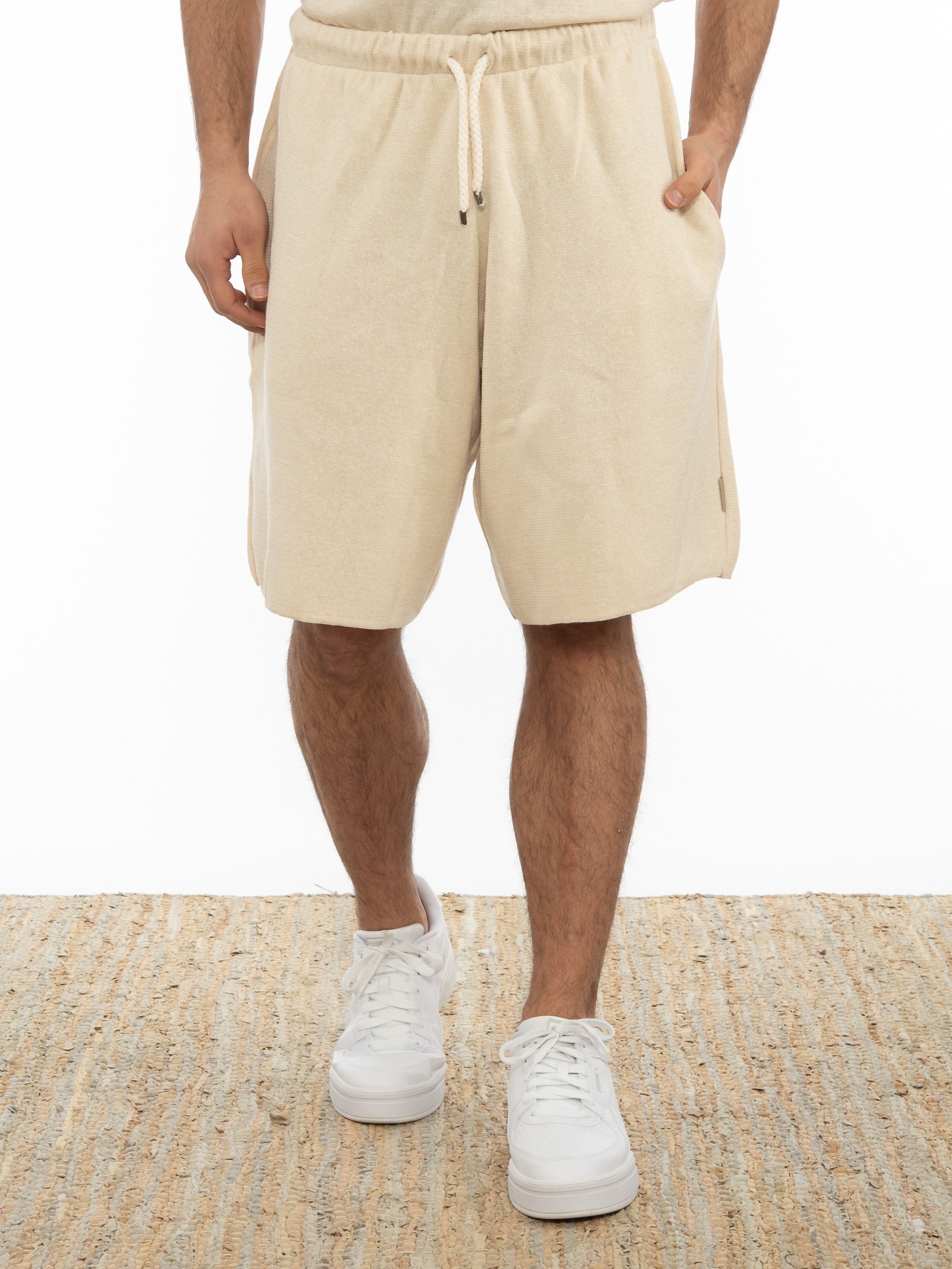 Χαρακτηριστικά: Βερμούδα νημάτινη σε regular fit γραμμή με λάστιχο και ενσωματωμένη ζώνη - κορδόνι στη μέση. 50% cotton 50% acrylic