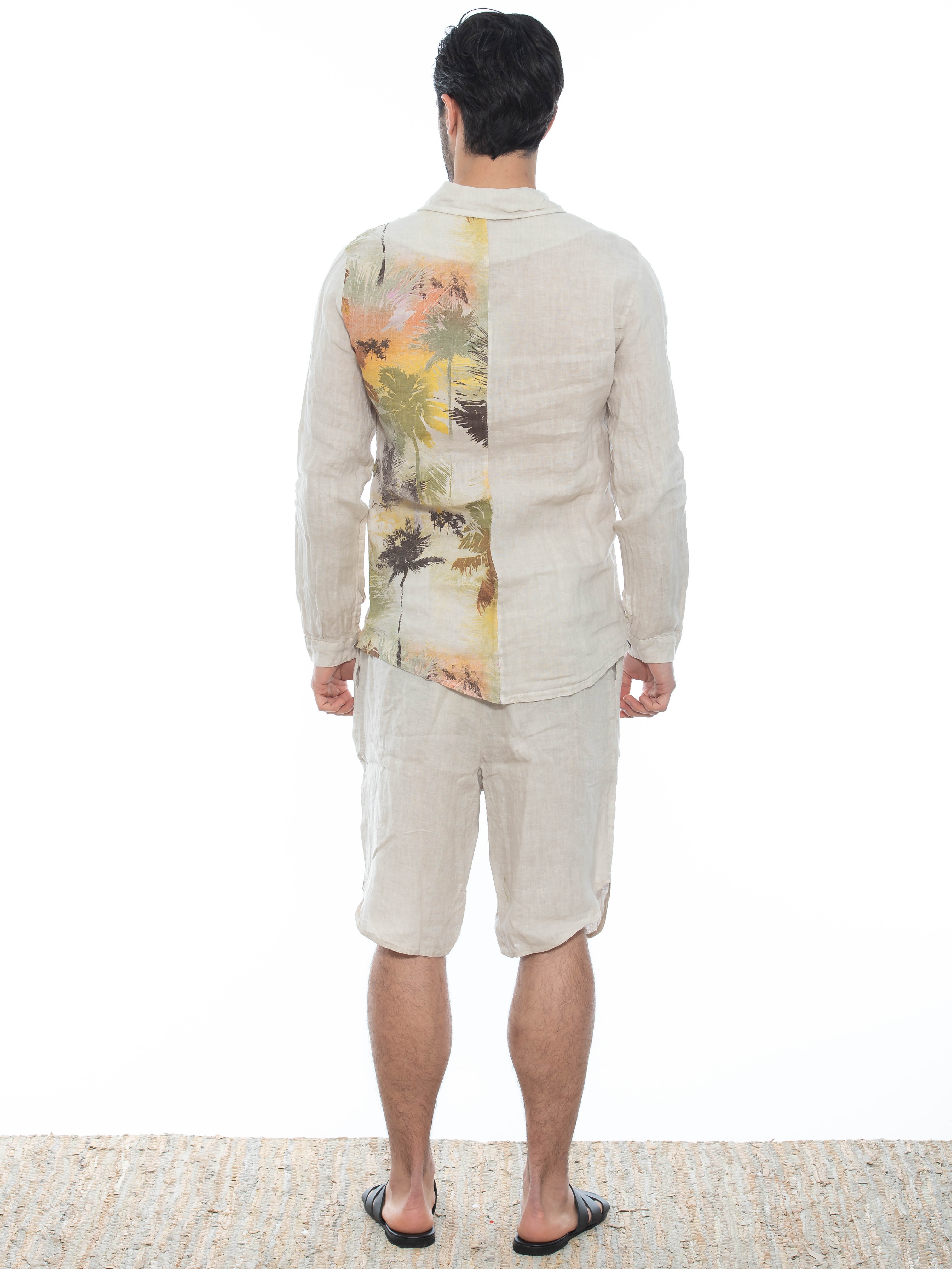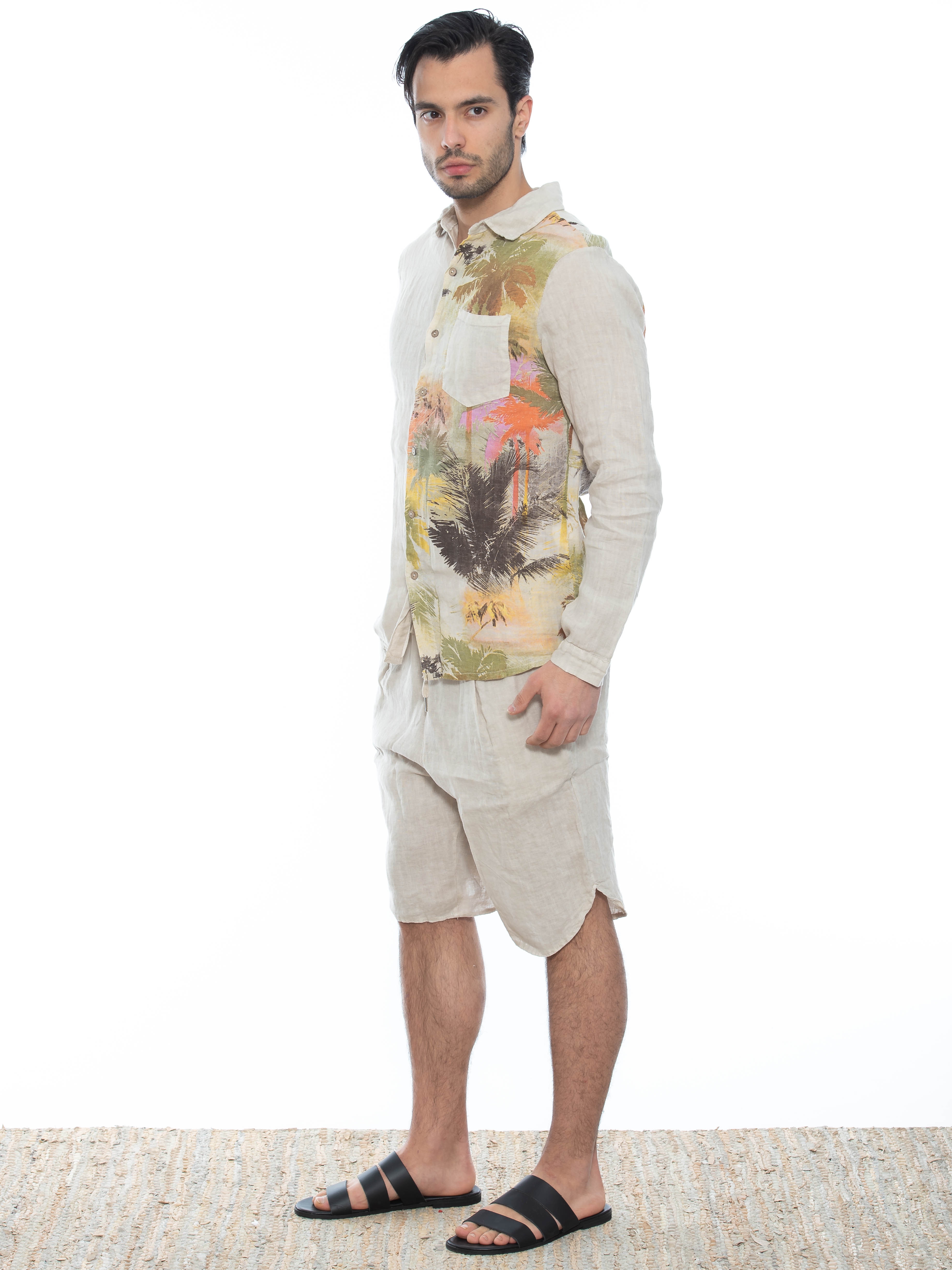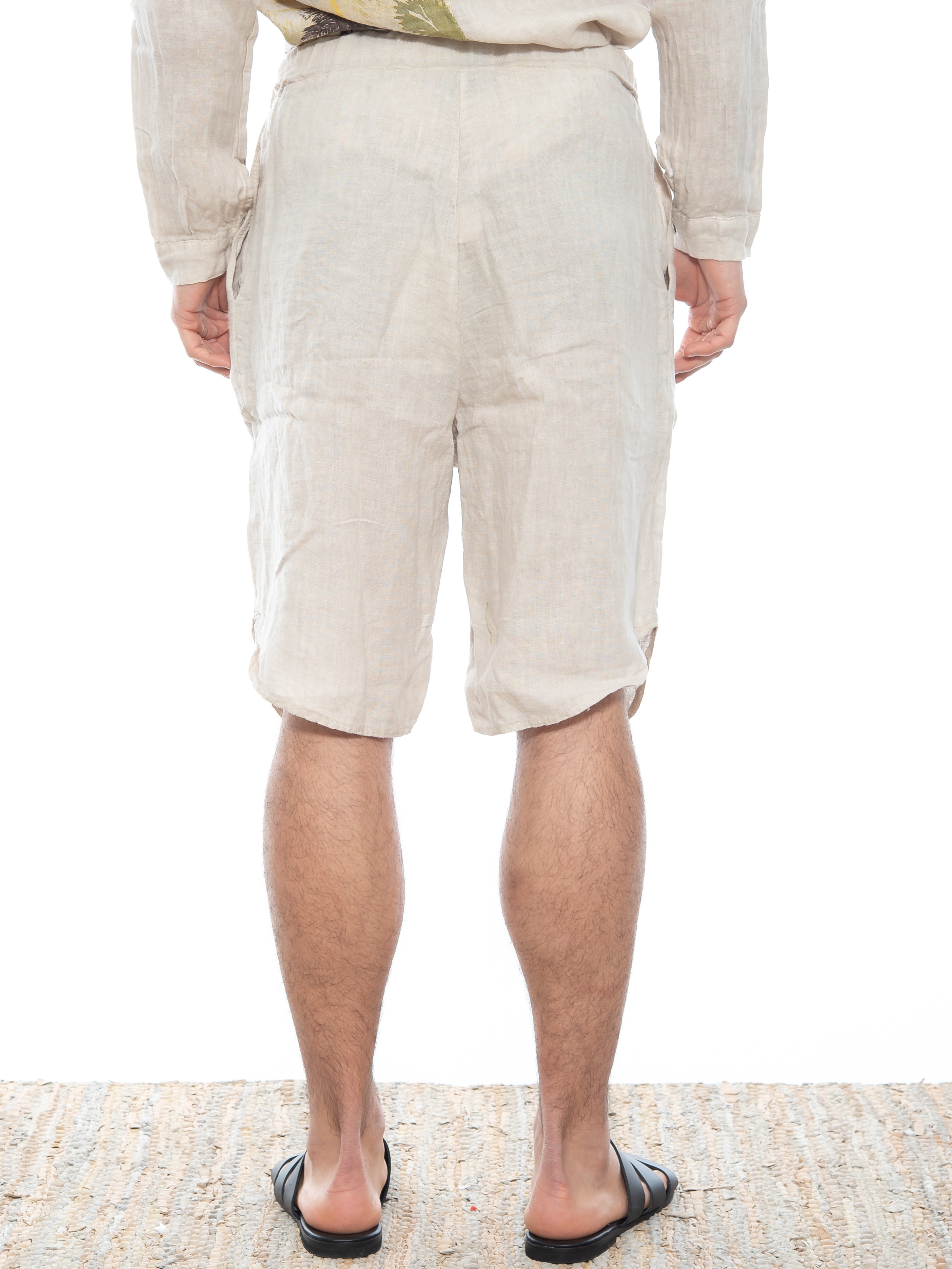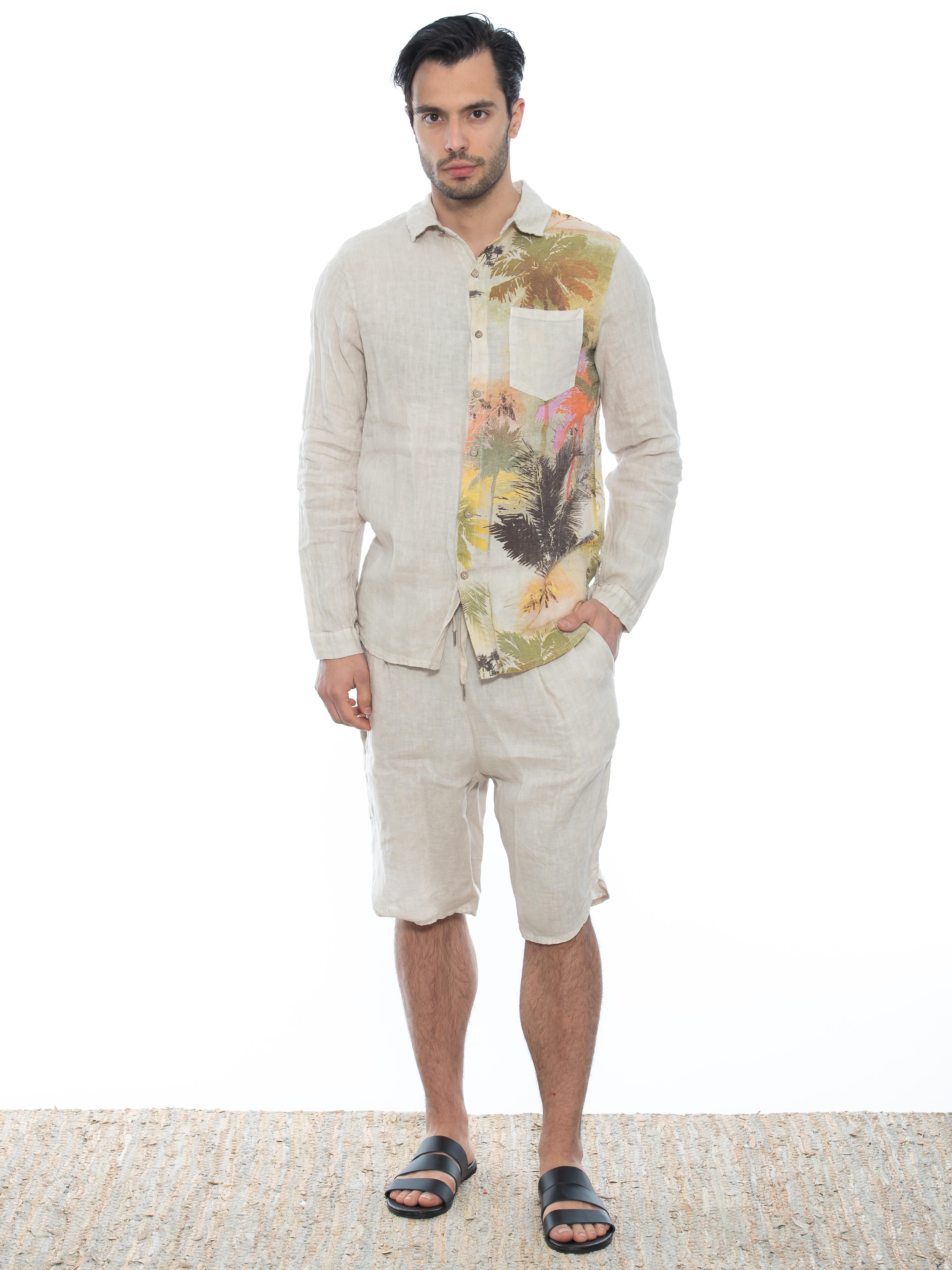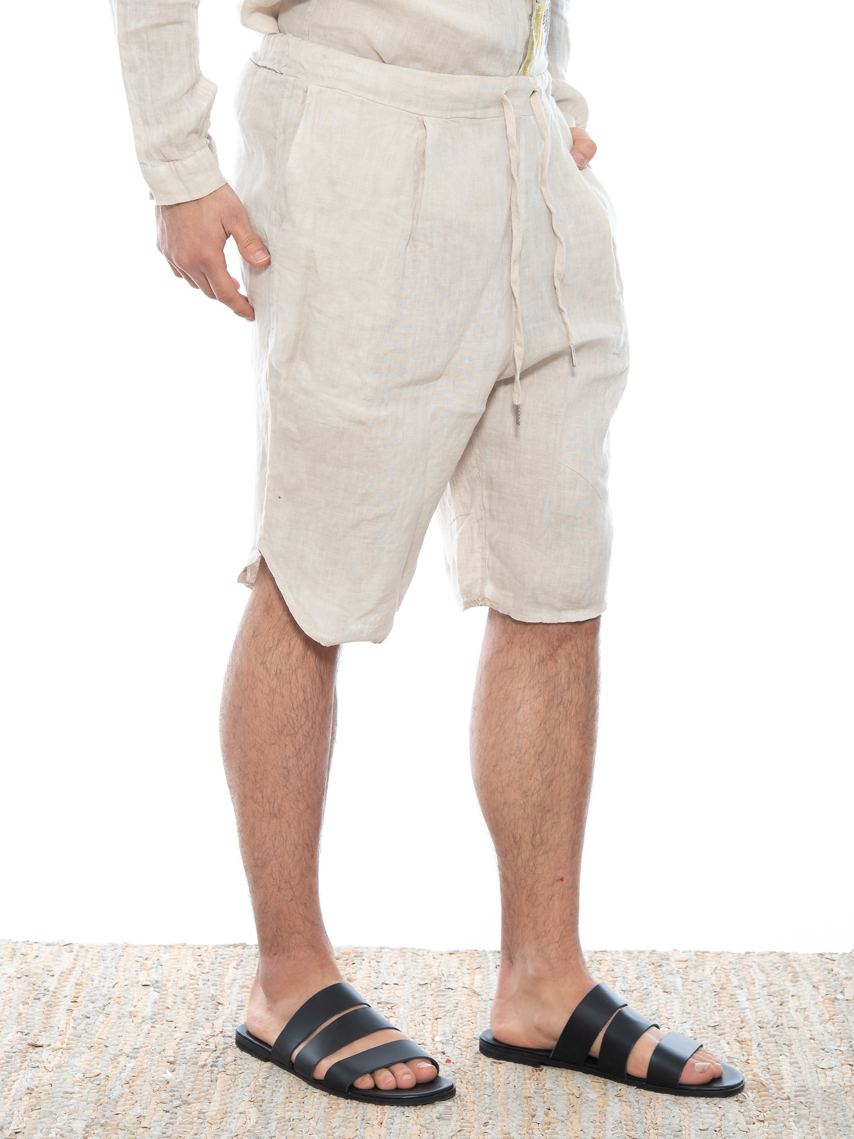 Χαρακτηριστικά: Chino Βερμούδα σε regular fit γραμμή με κουφόπιετα, με οβάλ τελείωμα και με λάστιχο και ενσωματωμένη ζώνη - κορδόνι στη μέση. 100% linen