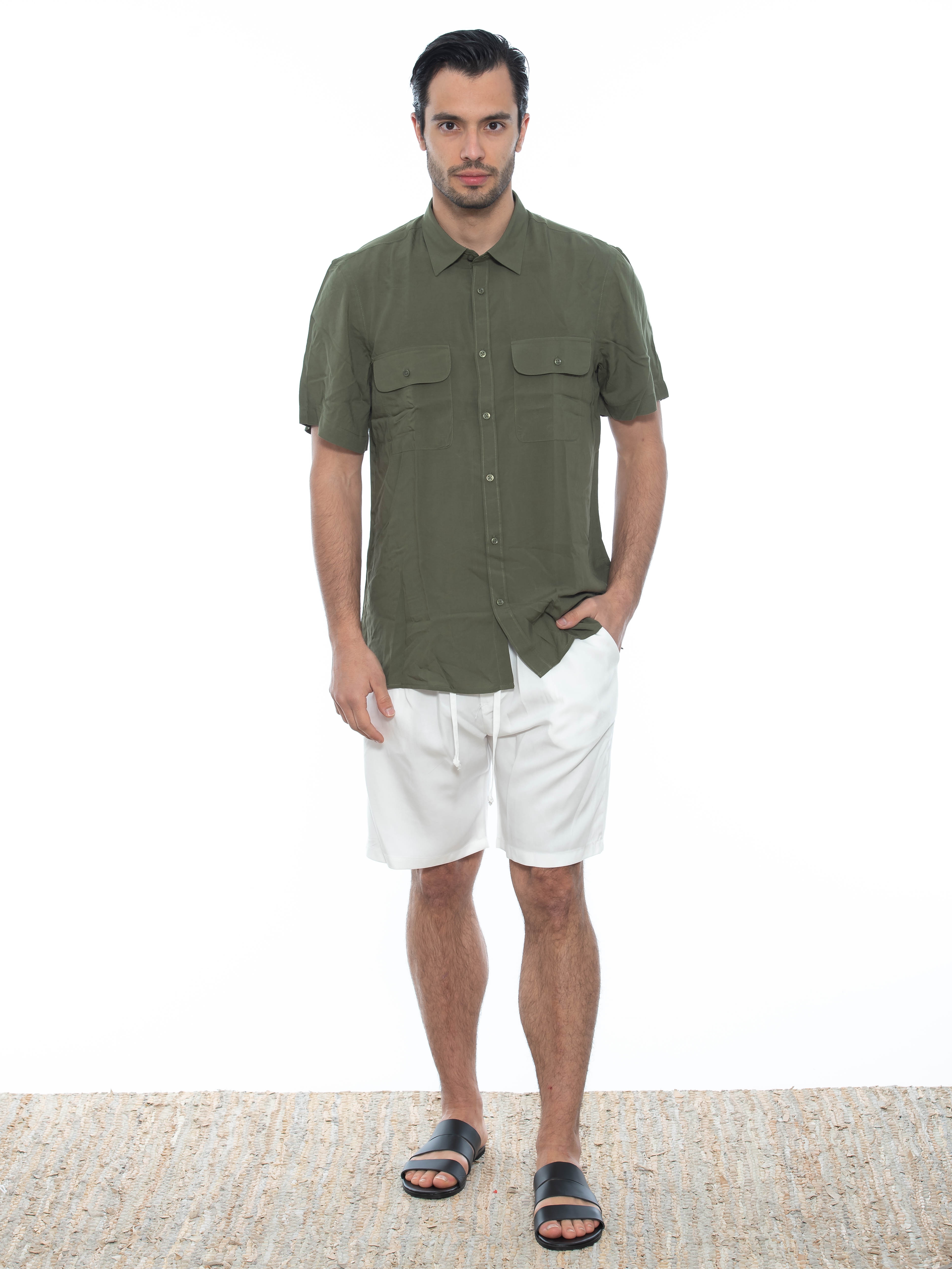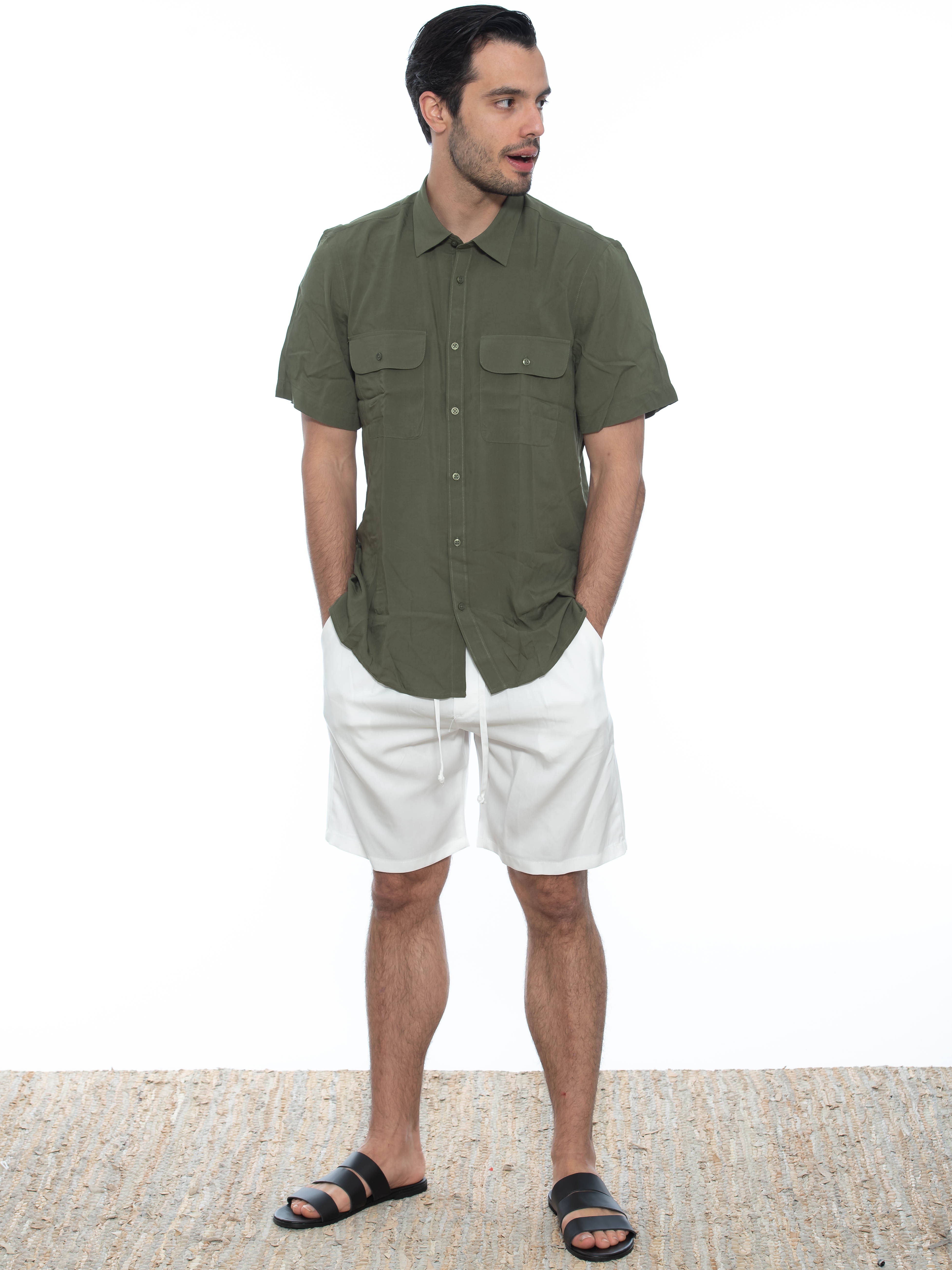 Χαρακτηριστικά: Chino Βερμούδα σε slim fit γραμμή με πιέτα και με λάστιχο και κορδόνι στη μέση. 100% tencel
