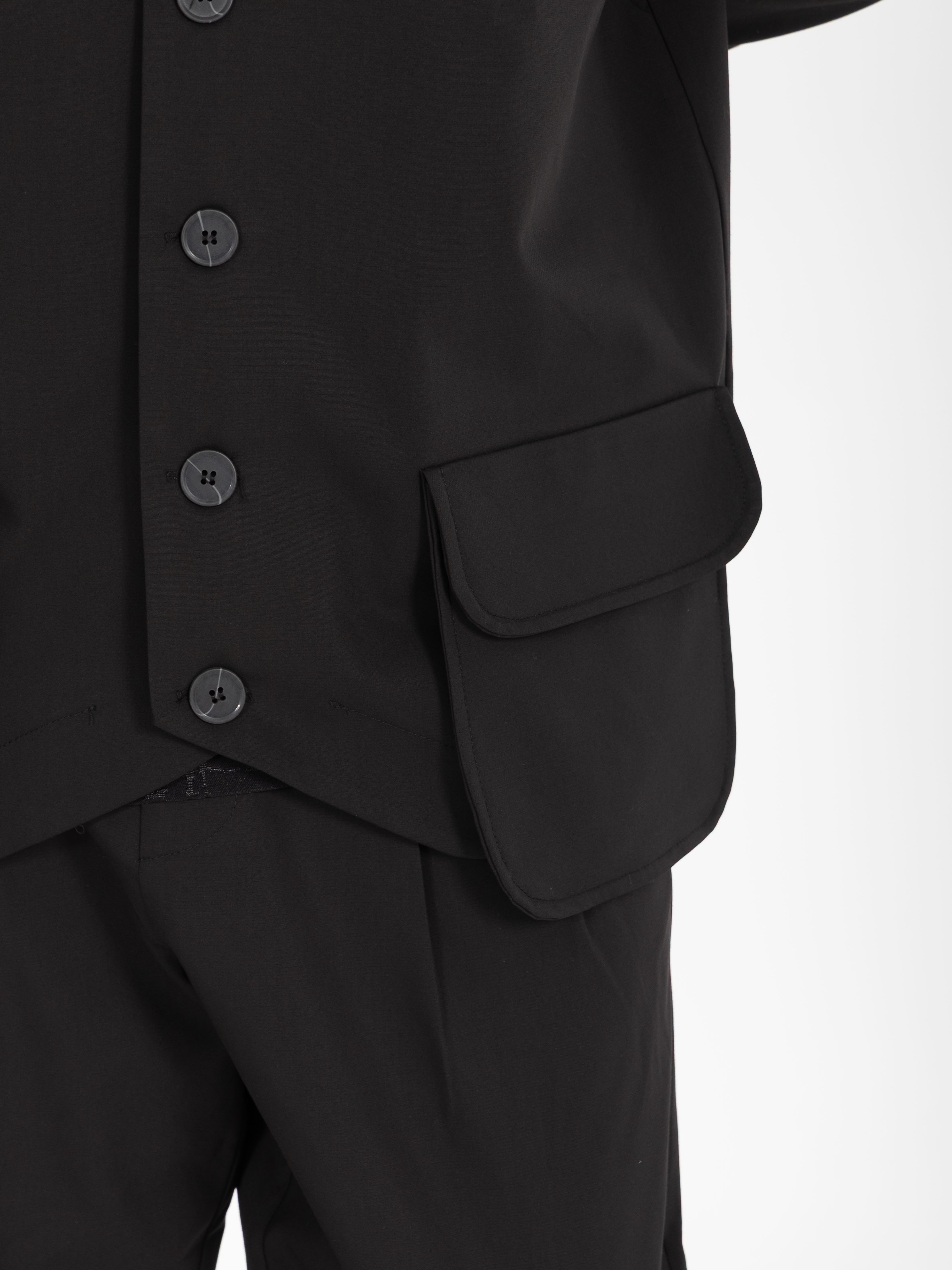 Features: Mao jacket in regular fit with buttons and pockets at the hem. 62% cot 33% pol 5% spandex