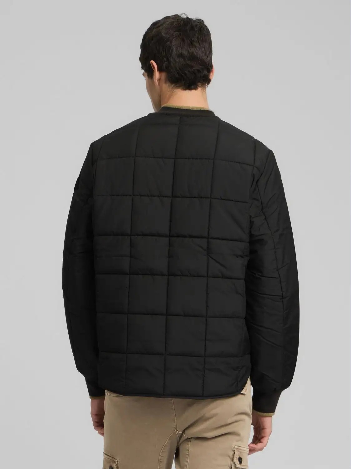 Relaxed-fit padded and lined jacket featuring chequered quilting, made from recycled ripstop poly, a more sustainable material for an environmentally-friendly choice. This style features two large front pockets with flap and button, an original rounded hem that creates side slits and a refined rib knit with a contrasting trim on the bomber-style collar and cuffs. The unmistakable Replay diamond completes the design on the sleeve. Two-way zip fastening.