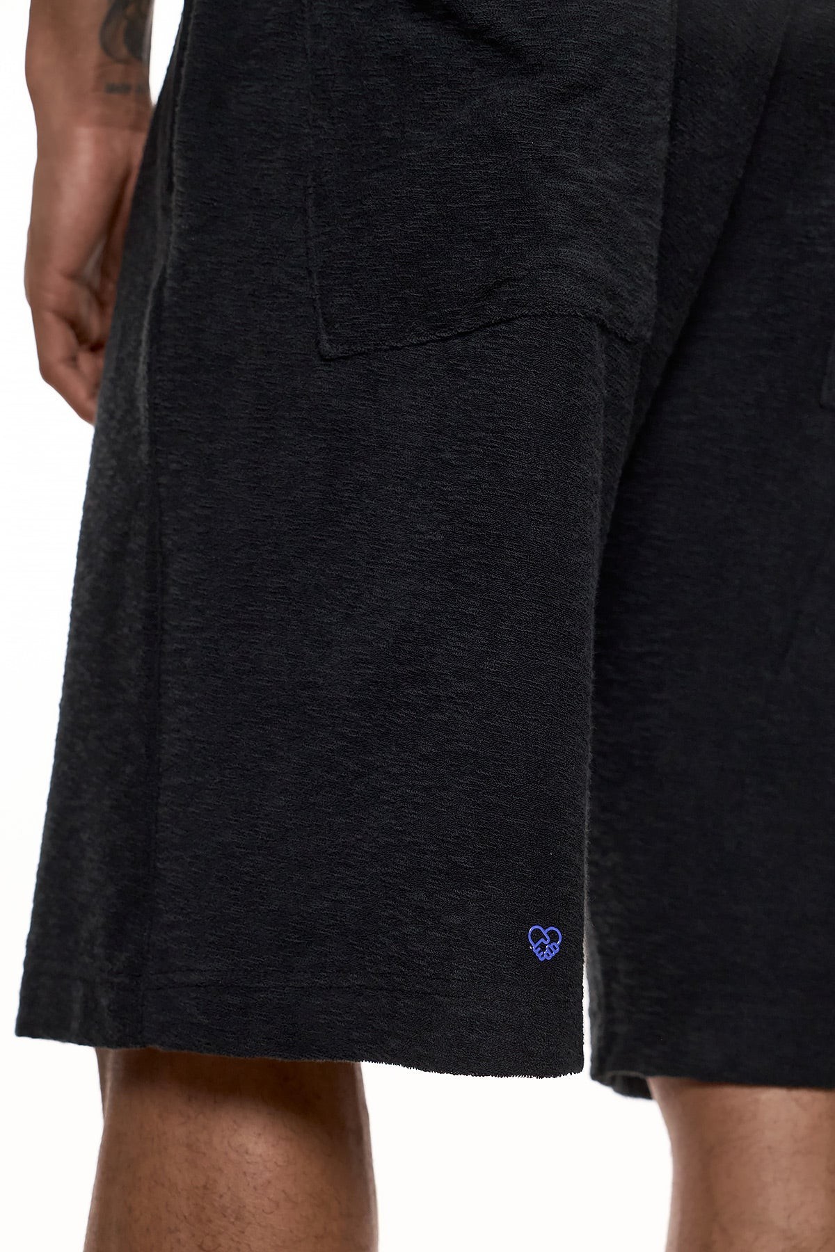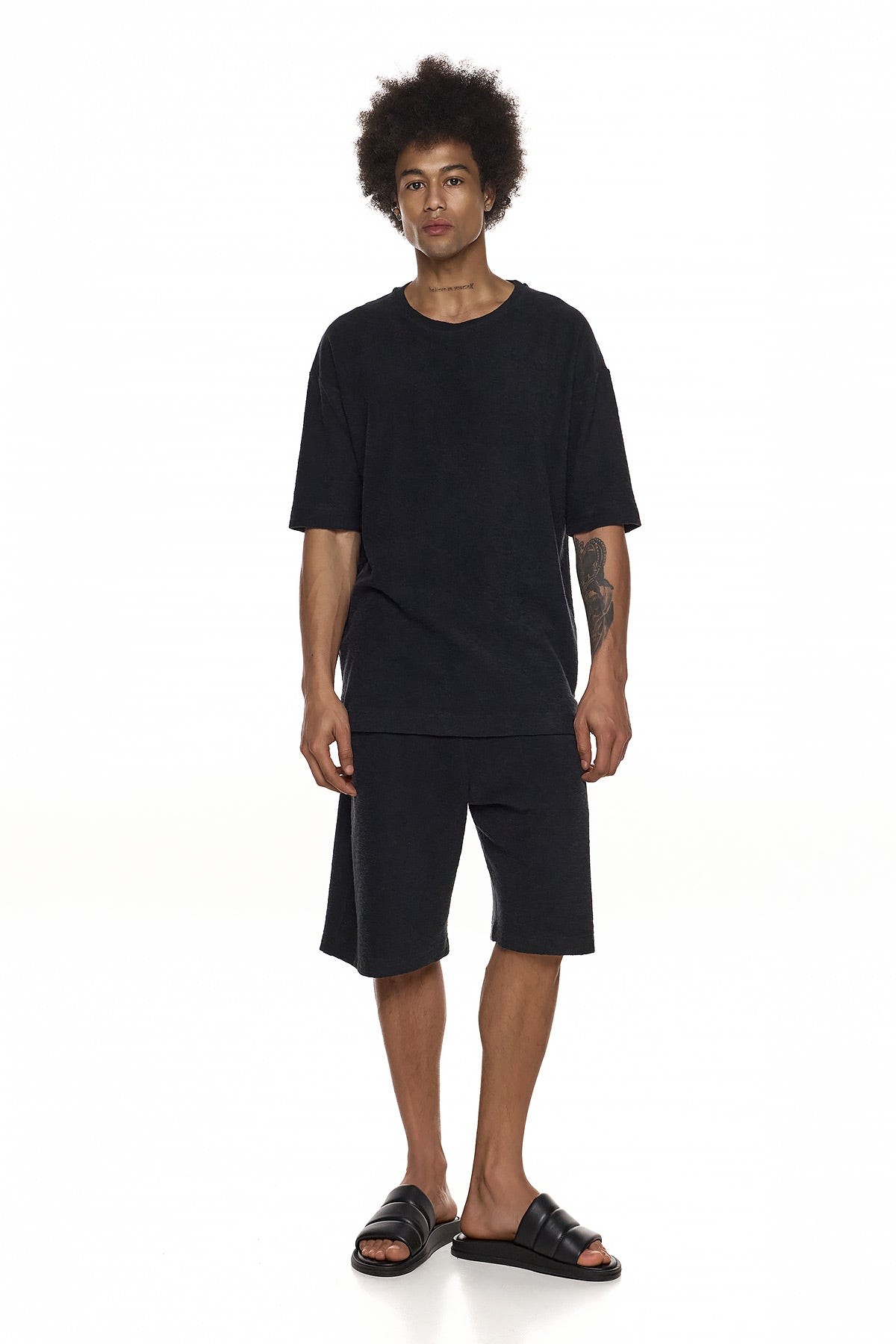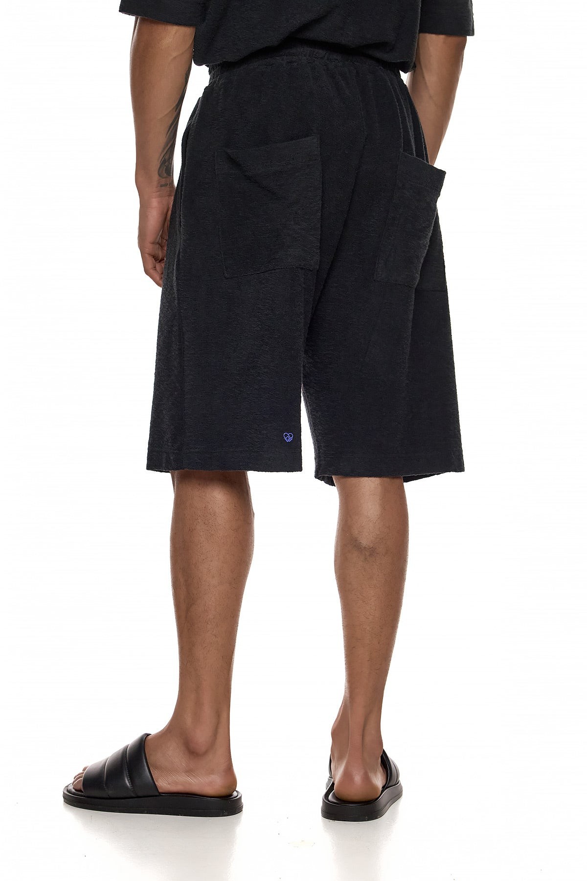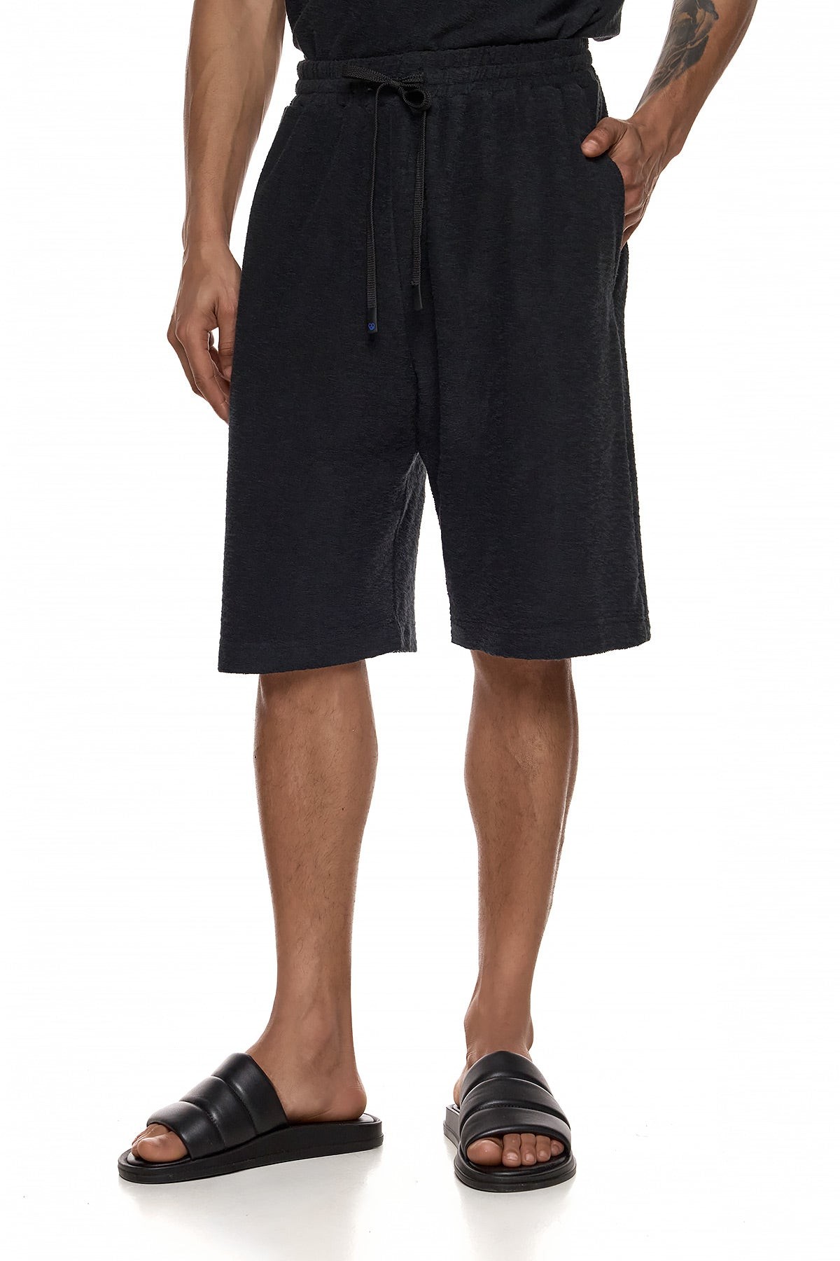 Features: Regular fit terry Bermuda with elastic waist. 100% cotton