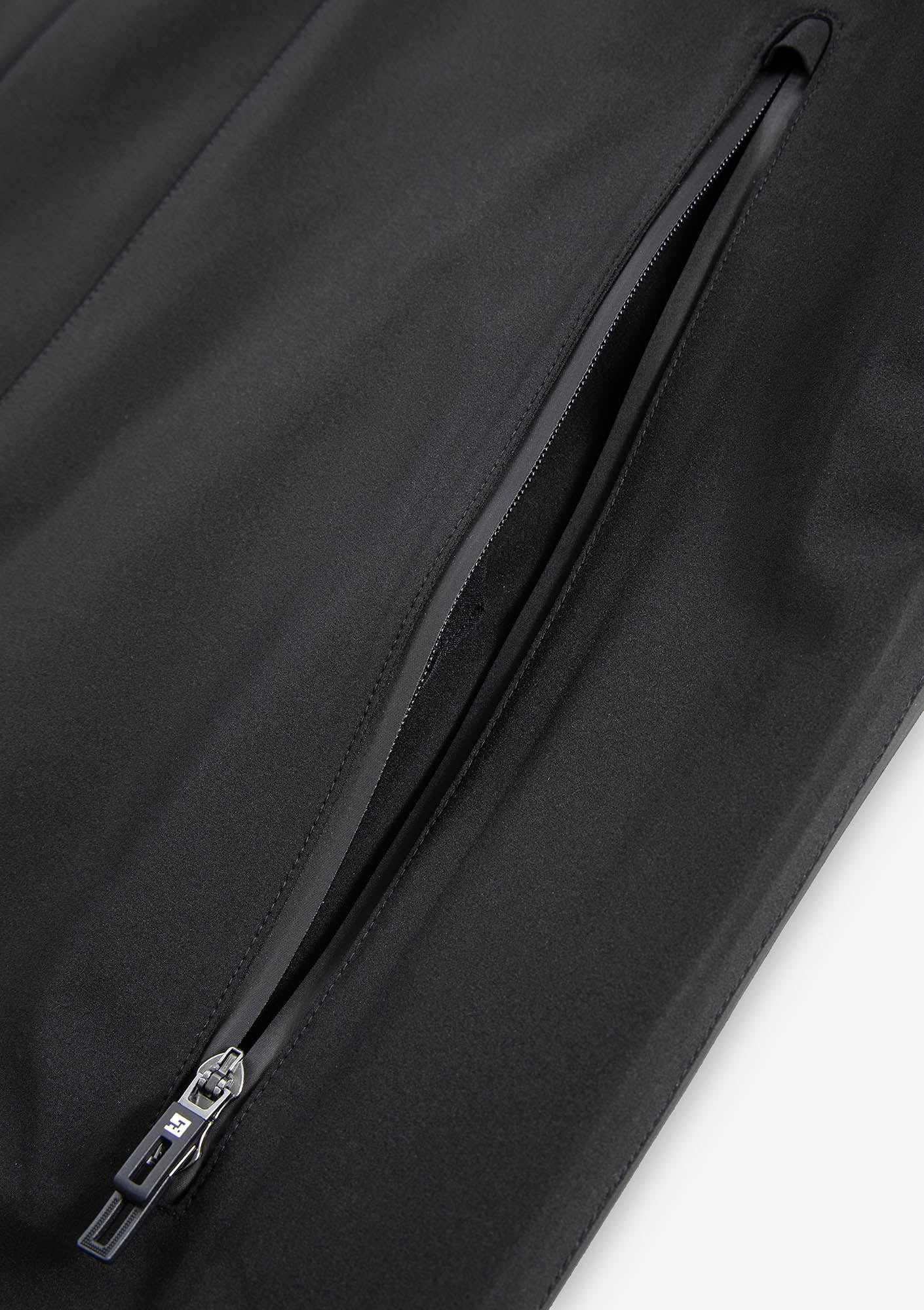 Durable stretch nylon with a matte finish is tear-resistant and adapts to movement. A three-layer construction with a TPU membrane and PFC-free water-repellent finish provides protection from wind and moisture. 85 % nylon, 15 % spandex.