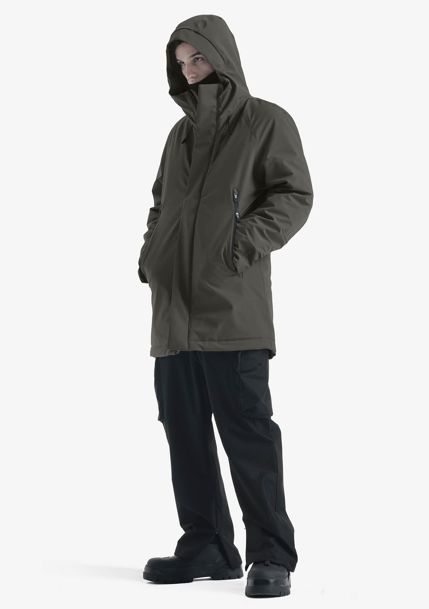 <p>PLANCK 3-in-1 parka is designed as a modular system: the outer shell protects from wind and moisture, while the inner layer provides warmth and comfort. Ventilation, an adjustable hood, and functional pockets are combined in a balanced form — ready to adapt to shifts in pace and climate.</p> <p></p> <p>- Removable inner jacket that can be worn separately</p> <p>- Deep hood with depth adjustment using a zipper, back drawcord, and structured visor</p> <p>- Front two-way waterproof zipper closure with windproof placket on magnets and snap buttons</p> <p>- Zippered hand pockets with additional compartments for small items</p> <p>- Sleeve pocket for keys, cards, and earphones</p> <p>- Side ventilation zippers</p> <p>- Adjustable cuffs</p> <p></p> <p>Durable stretch nylon with a matte finish is tear-resistant and adapts to movement. A three-layer construction with a TPU membrane and PFC-free water-repellent finish provides protection from wind and moisture. 85 % nylon, 15 % spandex.</p> <p> </p> <p>- Waterproofness 12 200 mm H₂O </p> <p>- Breathability 14 500 g/m² / 24 h </p> <p>- Fully taped seams with waterproofness 5 000 mm H₂O</p> <p></p> <p> The inner jacket fabric is made from 100 % recycled polyester with a WR finish and cire down-proof treatment. It prevents feather leakage, feels soft to the touch, and adds extra protection against moisture.</p> <p>The lining is made from 100 % recycled polyester with a smooth texture for easy layering and comfort in motion.</p> <p>Machine wash in 40°C water on normal cycle. Tumble dry normal medium. Do not bleach. Do not use fabric softener. Iron at low setting. Do not dry-clean.</p>Price €479.90 -